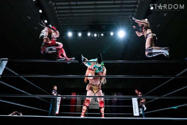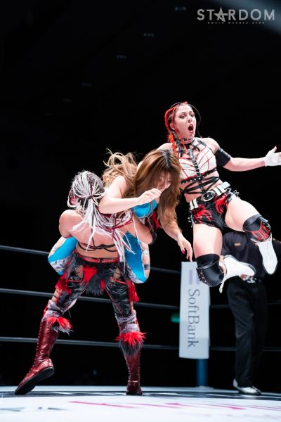 レディとさくらが先発に名乗りを挙げて試合開始。腕の取り合いからレディがヘッドロック。さくらがロープに振ろうとするがレディはグラウンドでヘッドロック。立ち上がるとさくらがヘッドロックに切り返す。レディがロープに振ると見せかけ天咲と合体の河津落とし。レディはさくらにジャイアントスイング11回転。替わった天咲が背中にドロップキック、フェースロック。さくらが向かっていくと天咲の突進にミドルキック。向後がさくらにドロップキック。レディが乱入するが向後は2人に串刺しドロップキックを見舞う。向後は天咲に619を決めるが2カウント。向後がコーナーに突進すると天咲がかわし串刺しエルボー、ドロップキック。レディが向後にビッグブーツ、向後がカウンターでドロップキック、レディがビッグブーツ。さくらがレディに三角絞め。天咲が向後をかいくぐりカットに入る。レディと天咲のクローズラインをかわしさくらがレディにダブルニースタンプ。ハイキックを決めるがレディが返す。向後とさくらがキックの競演。しかし天咲のカットが間に合う。さくらがレディに突進すると天咲がDDTで援護しレディがニードロップ。さくらが返すとレディはチョークスラム狙い。さくらが切り返し丸め込みの連続。天咲がカットすると向後にDDTも決めて分断。レディがカウンターのビッグブーツからさくらにネックブリーカードロップ。決まったと思われたがさくらの肩が上がる。レディがチョークスラムを決めると3カウントが入った。