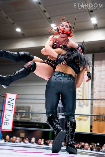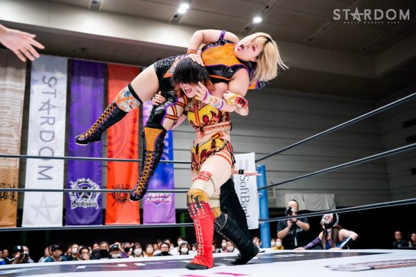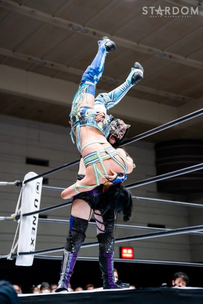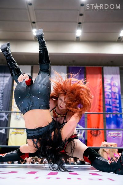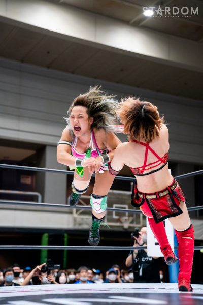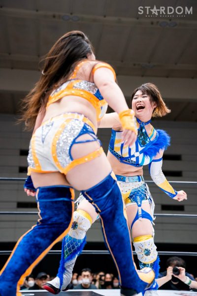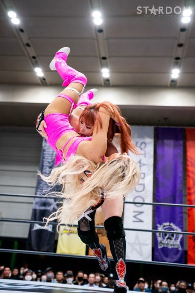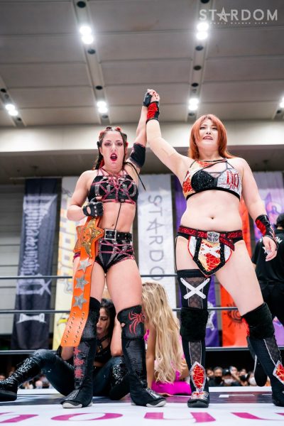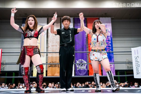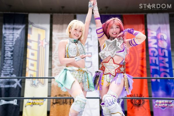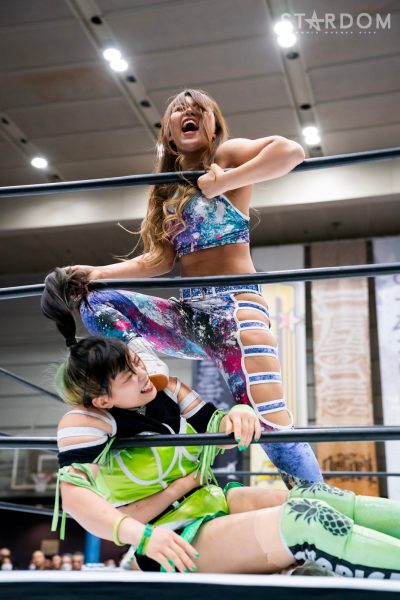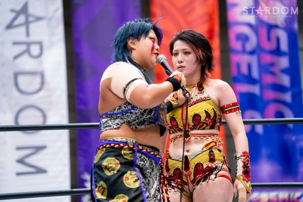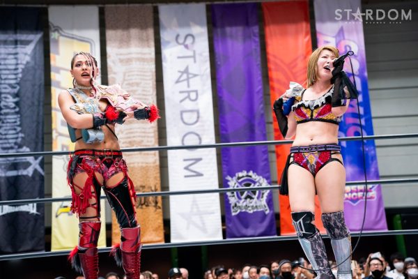 鈴季「おい、おい貴婦人、オマエ負けたくせにマイクを持つなんて図々しすぎるんだよ!この鈴季すずと、そちらにいる星来芽依のタッグは、絶好調そのものなんだよ。だから、この2人で、いや、この2人ならスターダムのベルトを総なめできる力はあると思いますので、ひとりでも総取りしてやるよ、オマエらも持ってるだろ、オマエらも十分に気をつけろよ!」
