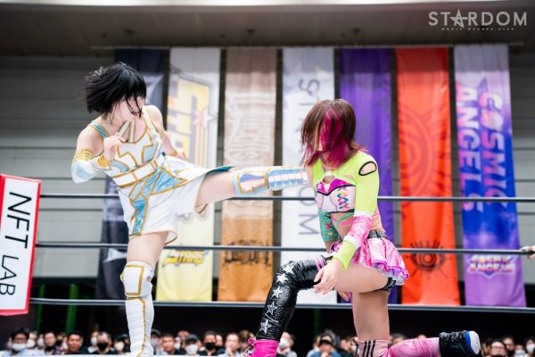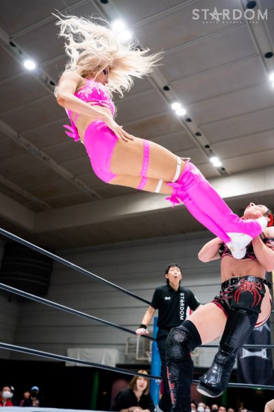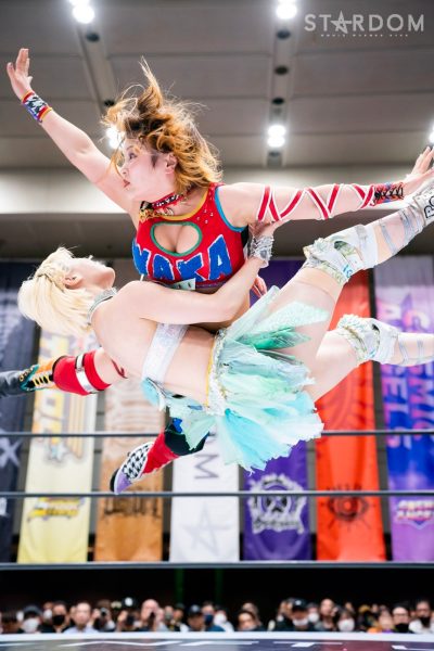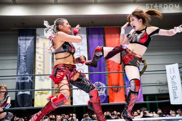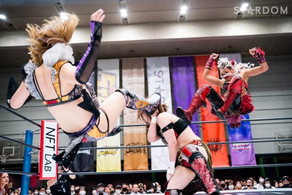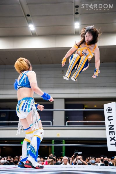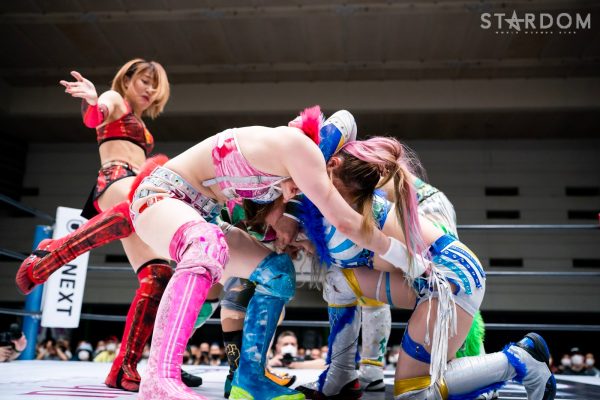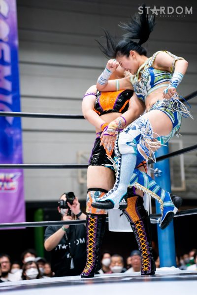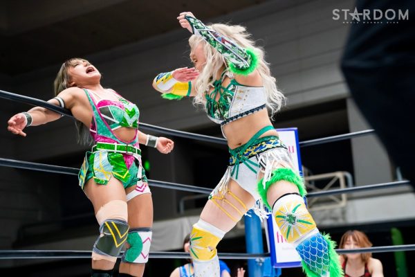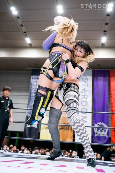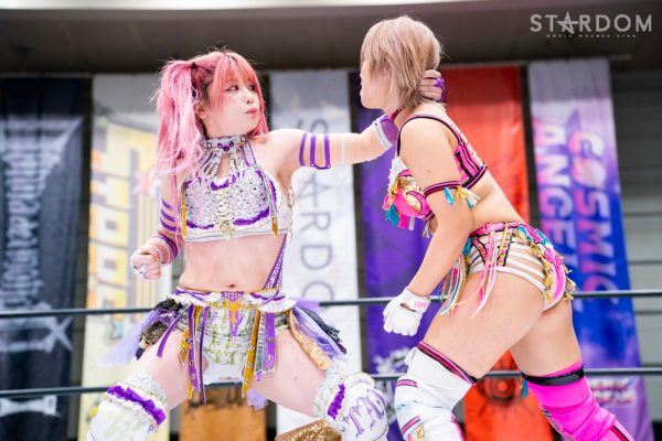 コズミックエンジェルズの中野たむ&なつぽい組とクラブビーナスの白川未奈&月山和香組がタッグで激突。5・27大田区で2冠を懸けて対戦した中野と白川。試合は中野が勝利し史上2人目の赤白同時保持者となった。対照的に無冠となってしまった白川だが、中野と対するのは大田区でのタイトルマッチ以後は6・7米原以来2度目。中野の目は白いベルト初防衛戦のMIRAI、白川のそれはゴッデス・オブ・スターダム王者のMIRAI&壮麗亜美組に向けられているものの、今回もまた激しい感情バトルが予想されるが…。