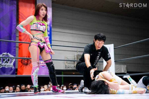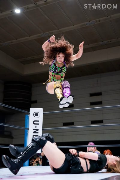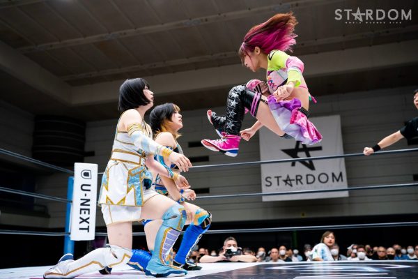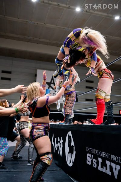 岩谷麻優&コグマ&飯田沙耶組のSTARSと朱里&MIRAI&壮麗亜美組のゴッズアイが6人タッグマッチで対戦。
