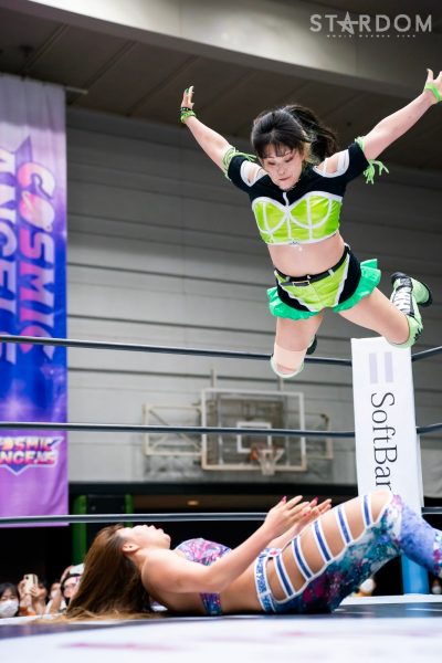 葉月と水森由菜のシングルマッチ。コズミックエンジェルズ見習いの水森にとってはシングルとはいえ、すべての試合がコズエン入りに向けての査定試合と考えた方がいい。STARSの実力者・葉月を前にしてどんな闘いぶりを披露するか?