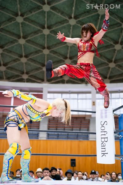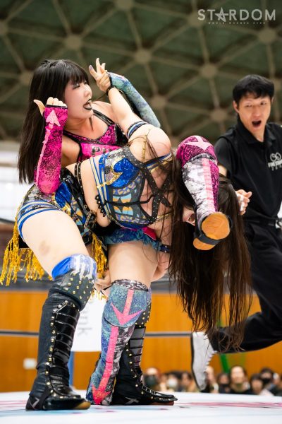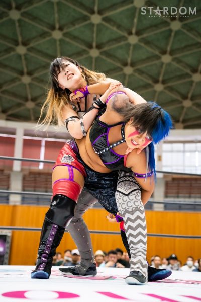 MIRAIとAZMの公式リーグ戦。ワンダー・オブ・スターダム王者のMIRAIは連敗スタートも3戦目でようやく初白星。この試合に勝って五分に戻したいところ。一方のAZMも黒星スタートをしいられており、早く白星を獲得したい。白いベルトの王者に勝てば一気に乗ることも考えられるだけに、両者にとって早くも正念場の闘いとなりそうだ。