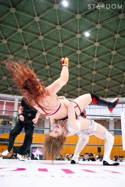 舞華と安納サオリが5★STAR GP公式戦で初対戦。舞華のパワーに安納がどんな闘いを挑むのか、予想不可能という意味でもリーグ戦屈指のカードと言っていいだろう。注目の初遭遇、その結末は?