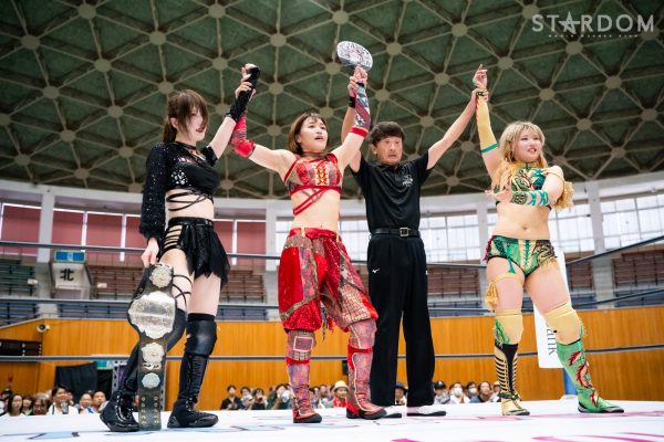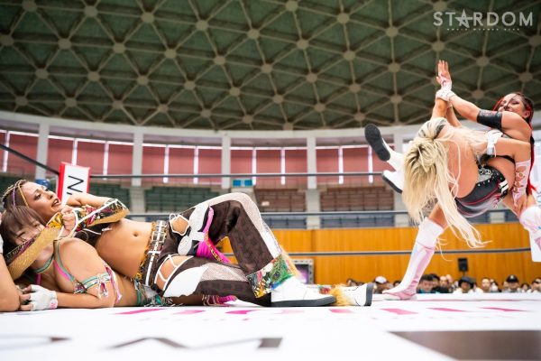 ドンナ・デル・モンドのジュリア&テクラ組、クラブビーナスの白川未奈&マライア・メイ組、星来芽依&メーガン・ベイン組が一度に対する3WAYタッグマッチ。DDMはアーティスト・オブ・スターダム王者でクラブビーナスはゴッデス・オブ・スターダム王者。ユニットにチャンピオンに対する星来とメーガンがどんなチームワークを発揮するか。8・13大阪で中野たむの保持する赤いベルトに挑むことが決まっているメーガンとジュリア、白川の遭遇が注目される。