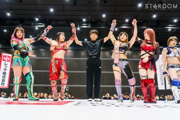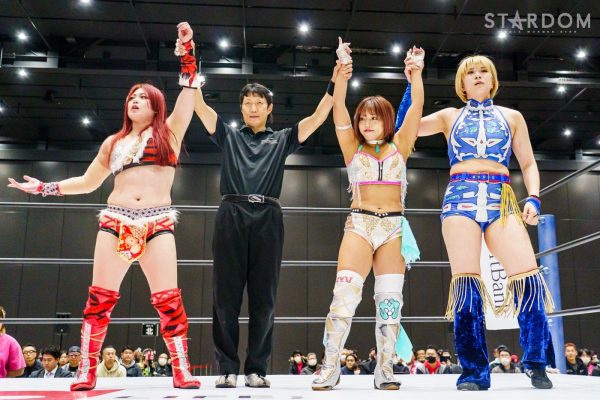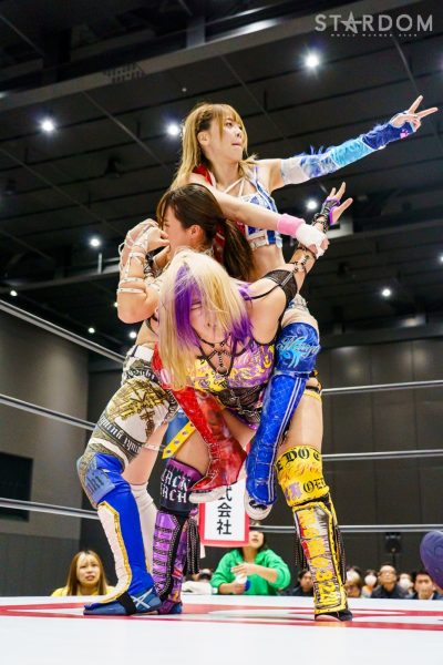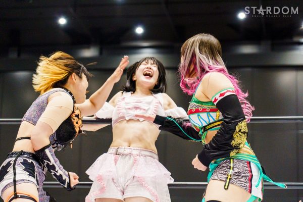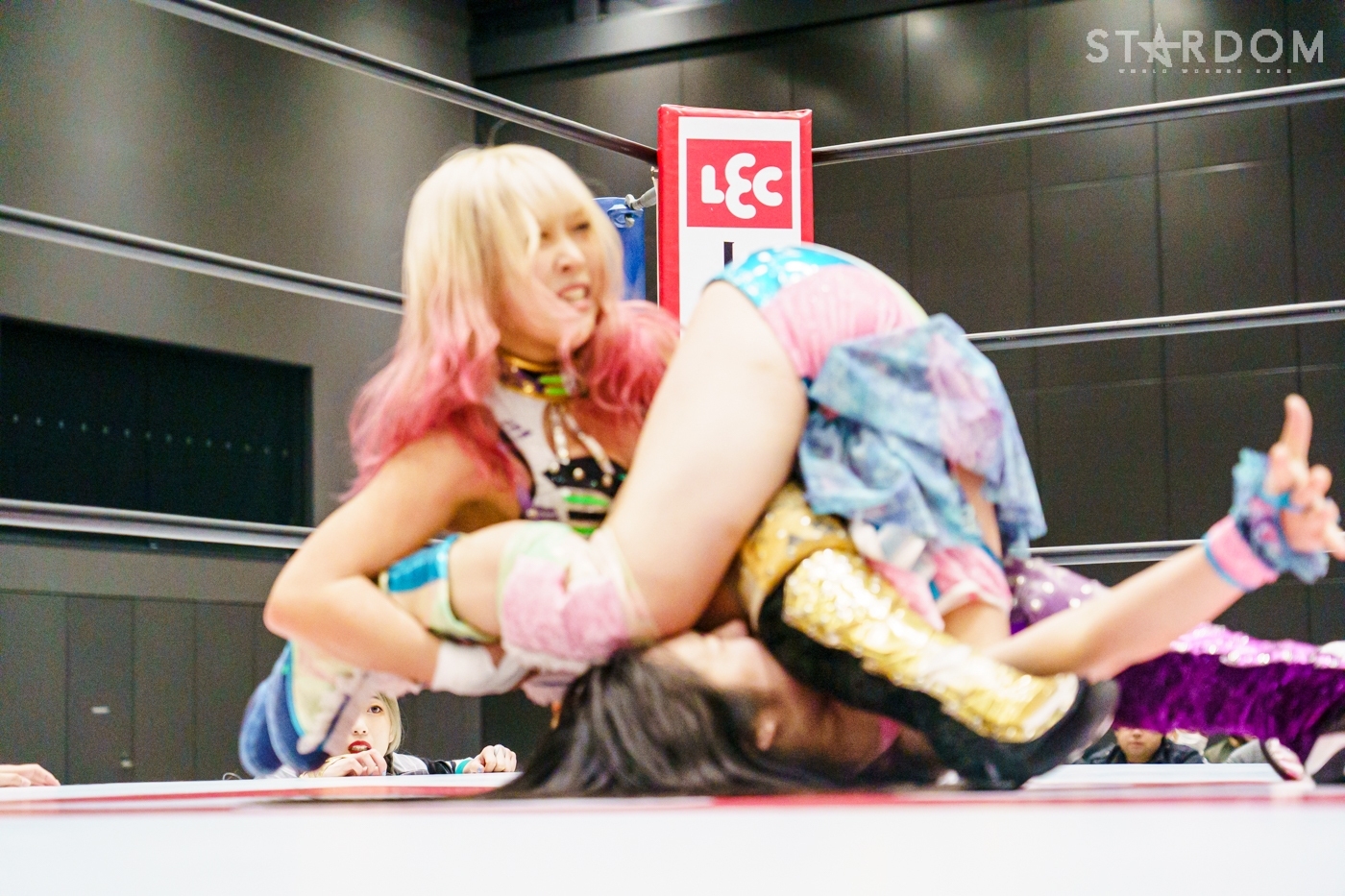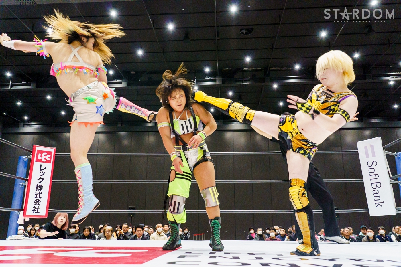 羽南と八神が先発でスタート。腕の取り合いから羽南がヘッドロックで締め上げグラウンドにもっていく。八神が抜け出しドロップキックも、羽南がこらえてドロップキックを決める。飯田が入り羽南と合体エルボー。飯田が羽南を背負ってボディープレス。星来がカットするが、飯田は星来に見せつけるように八神へキャメルクラッチ。飯田は八神の背中にダブルチョップ。羽南が八神にボディースラムの連続、背中にドロップキック。八神が返してエルボー連打、羽南が「もっとこいよ!」と受けて立つ。羽南が一発で倒してコーナーに追い込む。八神が羽南の突進をかわしドロップキック。星来が羽南にエプロンからドロップキック。もう一発狙うと飯田が妨害。羽南と飯田がロープに振るが、星来がかいくぐりドロップキック。かわされたものの、セカンドロープからのドロップキックを2人に決める。羽南が怒ってヘアーホイップ。星来が倍返しでヘアーホイップの連続。羽南がコーナーで反転しボディーアタック、バックエルボー。飯田が星来にショルダータックル、逆水平を連発。星来がかいくぐり突進するが、飯田が先を読みエルボー。星来も飯田の動きを読んでドロップキックを食らわす。八神もドロップキックで続くが2カウント。エルボーの打ち合いから八神がミドルキックの連発、飯田がカウンターでジャンピングチョップ、エルボードロップ。飯田のラリアットをかわし星来がコードブレイカー、八神と星来がハイキックの挟み撃ち。飯田が返すと八神は腕十字。しかし、羽南のカットが間に合う。八神が飯田に串刺しミドルキック、サッカーボールキック。飯田が返すと八神の突進をかわし羽南がニーアタック、バックエルボーの挟み撃ち。しかし、八神の肩が上がる。すると飯田が狙いすましてラリアット。八神がかわし腕を取りにいくが、飯田が切り返し逆エビ固め。場外で羽南が星来を止めている間に八神がギブアップ、飯田の勝利に。試合後も羽南と星来が乱闘を繰り広げた。