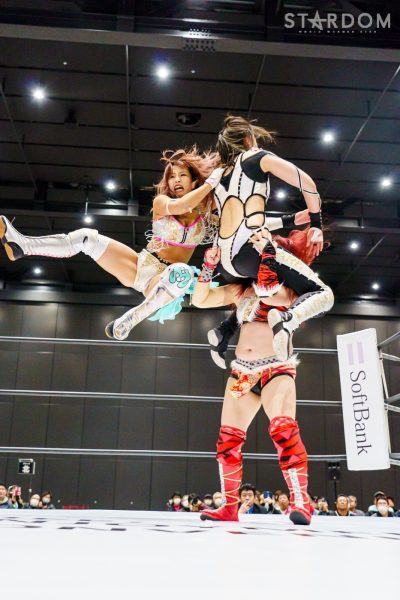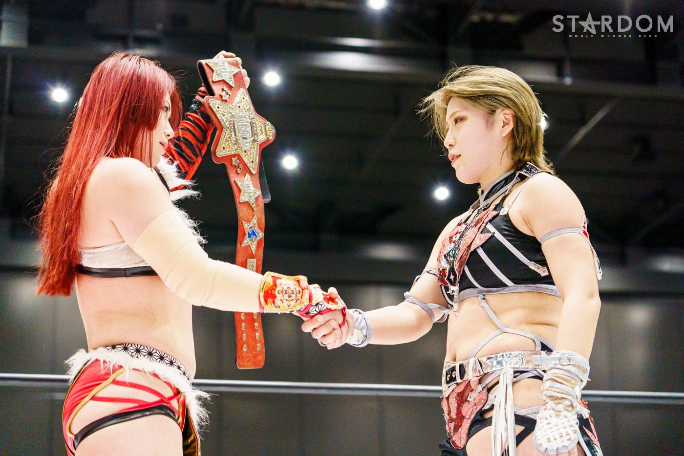 詩美「まさか立場が逆になって、こんどは私がオマエのベルトに挑戦するなんてなあ。オマエが前の団体にいて、フューチャーのベルトを懸けて試合をして、オマエになんて興味なかったよ。そしてオマエがスターダムに来て、止まらない成長で無視できない存在になって、赤いベルトもやった。オマエとは何回も闘ってきた。いまは自信を持って言える。オマエは最高のライバルだよ。その赤いベルトに挑戦、もちろん受けさせてもらいますよ」