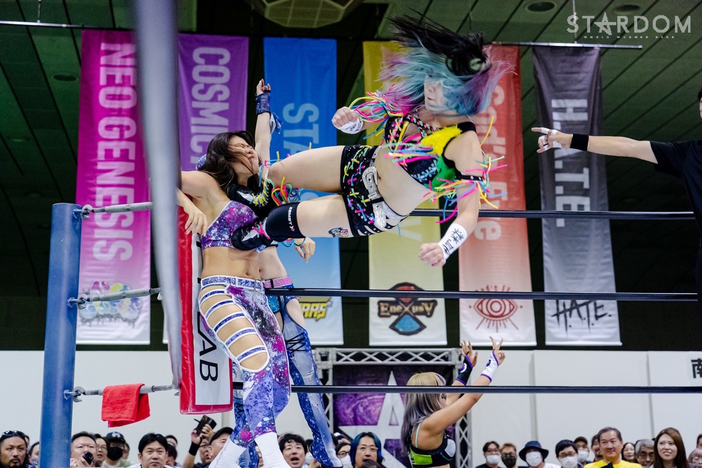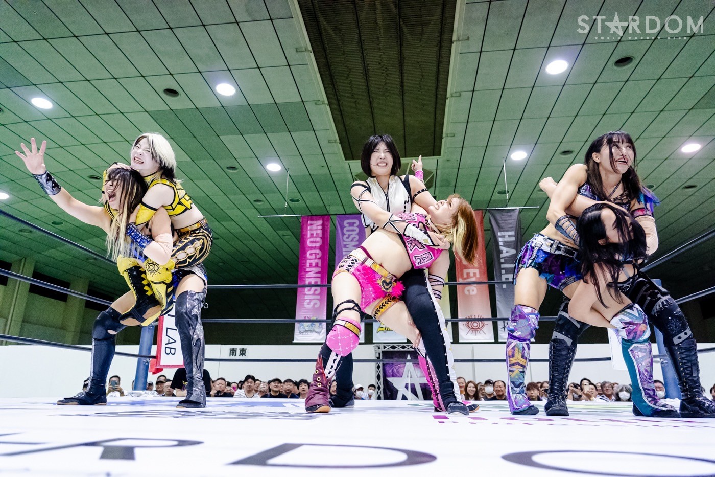 コグマとキッドが先発に名乗り。ゴング直後にコグマがクマ、キッドがトラのポーズ。キッドが「クマじゃないでしょ、トラやりなさい」と詰め寄り、ロープワークの攻防に。コグマがキッドをかわしてボディーアタックからドロップキック。コグマは葉月を引き入れロープに振ってドロップキック。キッドがかわすとネオジェネシスが葉月を攻撃。キッドは葉月にその場跳びムーンサルトプレス。葉月が返すがダウン状態。キッドが「葉月どうした」と引き起こしヘアーホイップ。やり返さない葉月に、キッドはヒザへの攻撃。星来が葉月に串刺しドロップキック10連発。AZMが葉月にサッカーボールキック連打。葉月がカウンターでコードブレイカーを決め交互にタッチ。向後はAZMにコルバタ、天咲にドロップキック。羽南が加わり、向後と連係でAZMと天咲を攻める。AZMが向後にブレーンバスター。星来が向後にラリアット、ネックブリーカー。向後が返して星来にエルボー連打。星来が足を踏みつけるが、ボディーアタックを食らう。羽南が星来にエルボースマッシュ、エルボーからボディースラム。星来が切り返しエルボーを打ち合う。羽南の突進を天咲が妨害、コグマが天咲にDDT。コグマと葉月が天咲にクローズライン狙いも、まとめてDDTを食らう。羽南のバックドロップを立ち上がった星来だがネックブリーカーを食らう。飯田が鈴季に逆水平。星来と鈴季が連係で飯田を攻め込む。鈴季は飯田にリング下から顔面蹴り狙いで疾走。飯田がかわしてスライディングラリアット。STARSが合体フェースクラッシャーを鈴季に決める。飯田が鈴季へ飯田ロケット発射。鈴季が返し10分経過。飯田が串刺しエルボー、達者でな!狙い。鈴季がこらえてAZMがミサイルキック。ネオジェネシスが飯田に次々と串刺し攻撃。鈴季が飯田に変型裏投げ。飯田が返すと、鈴季はフィニッシュを宣言しキックの連打。飯田がかわして飯田橋もカットされる。STARSがドロップキックでネオジェネシスを分断。飯田がラリアット、鈴季がかわしてテキーラショット。3カウントが入り鈴木が飯田を破った。