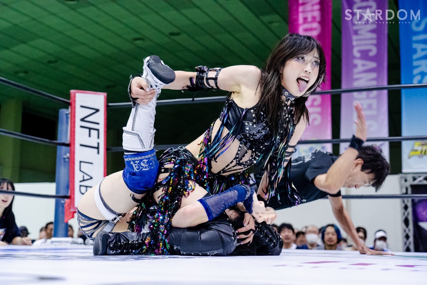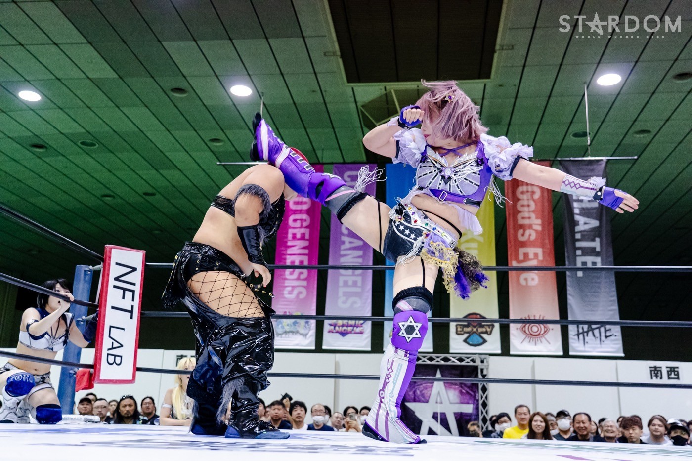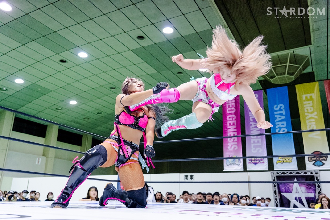 ネオジェネシスのスターライト・キッド&星来芽依&AZM&鈴季すず&天咲光由組とSTARSの葉月&コグマ&羽南&飯田沙耶&向後桃組が10人タッグマッチで全面対決。ハイスパートな激しい攻防は必至だ。