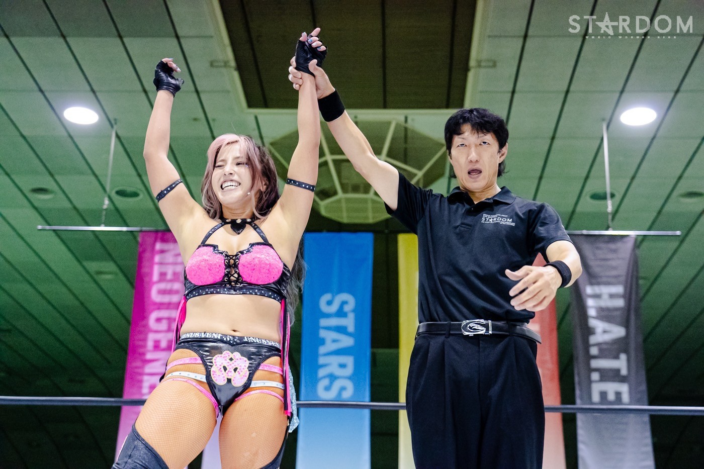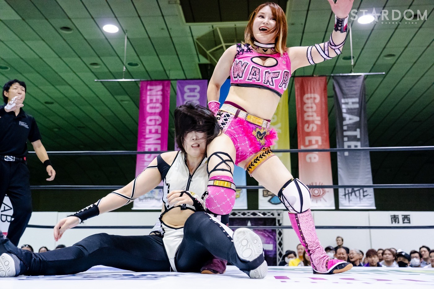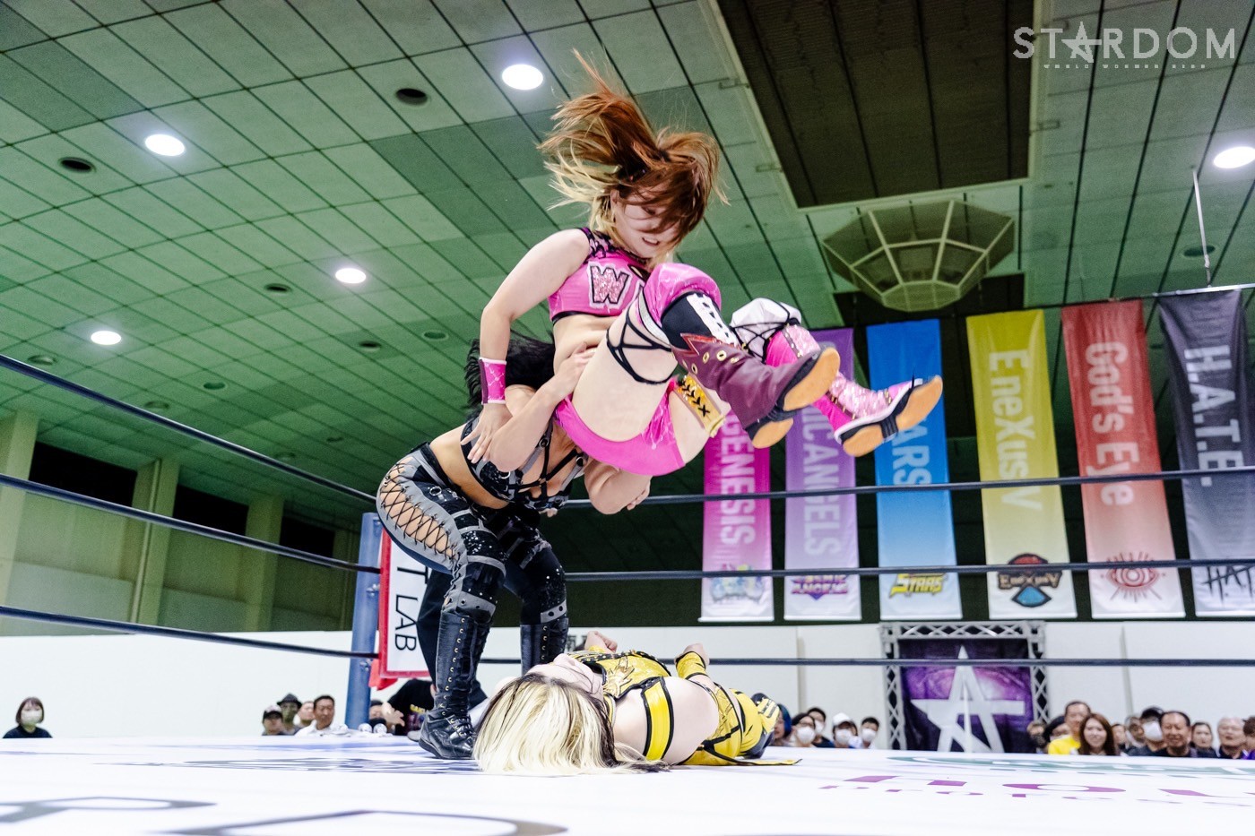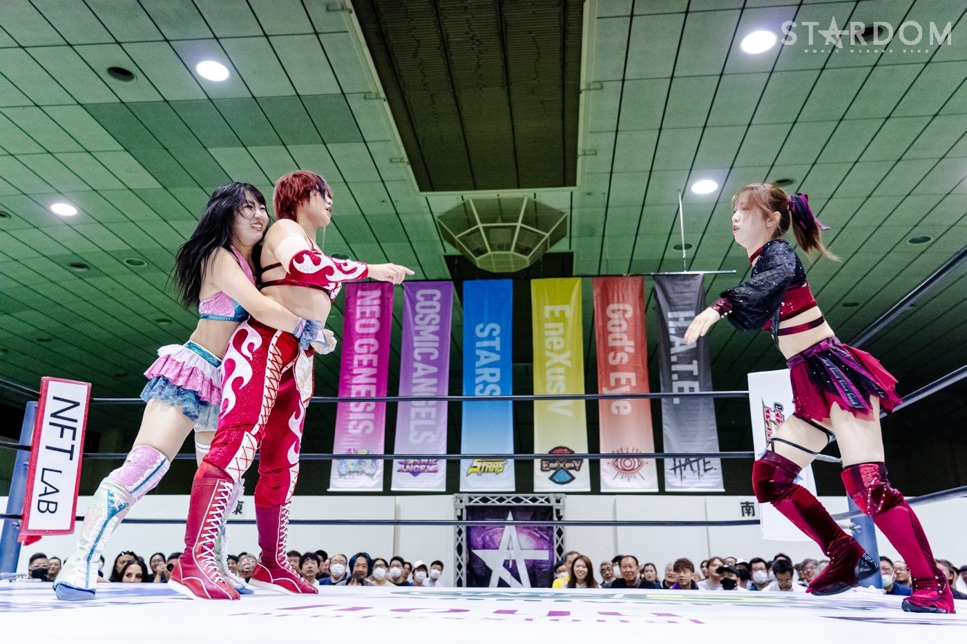 ナツコ「おい、なに拍手してんだよ、オマエら。おい青森、しっかり覚えておけよ。女子プロレス界でもヒールでもスターダムでも、ナンバーワンを取るのは、我々H.A.T.E.だ」