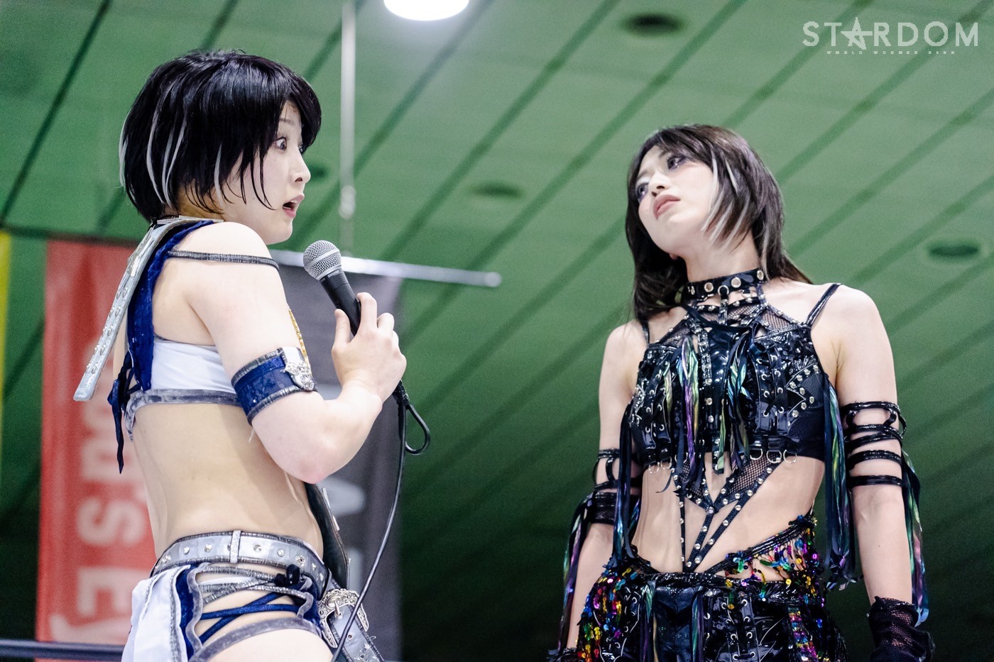 ナツコ「今日は一言言いたいことがあるんだよ。おい、岡田! オマエなに勝手にアーティスト(タイトルマッチ)決めてんだよ。いや、いや待てよ。待て待て待て。オマエは、あの3人がベルトを持ってるより、私たちがベルト巻いた姿見たいから勝手に組んじゃったんじゃないの!? いいよ、やってやろう。アーティスト。上谷、琉悪夏。それから私たちがオマエらからアーティスト取って、ゴッデスも防衛しちゃって、そうだ、テクラが次、オマエ(なつぽい)が持ってるこの白いベルト挑戦するんだっけ? テクラも白いベルト取って、そして私は中野たむ、オマエから赤いベルトを引っぺがす」