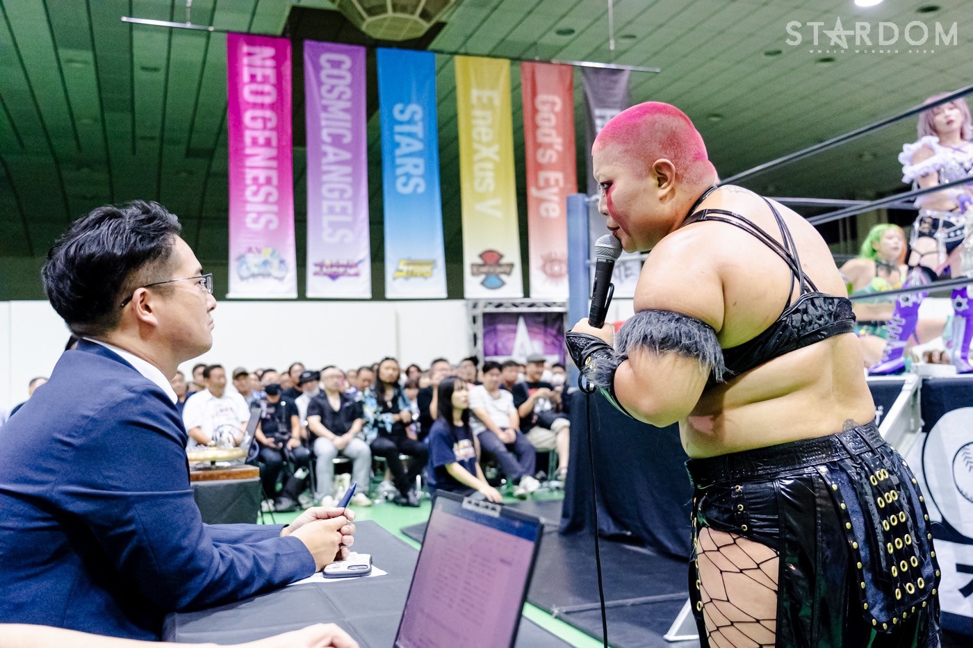白川「そうなんだよ。プロレスは痛いし、そして負ければ悔しい。だから、痛いのも悔しいのも、それを超えるためには、目の前にいる相手より強くならなきゃいけないんだ。梨杏はさあ、どうやって、今後どうやって変わっていきたいんだろう? E neXus Vは、ここが、心が熱いヤツは、いつでも大歓迎。今日の試合で梨杏は頑張ったと思いますけど、私的にはまだ足りてないから、明日(9・19八戸)、舞華とシングルでしょ。じーっくり見させてもらうよ」