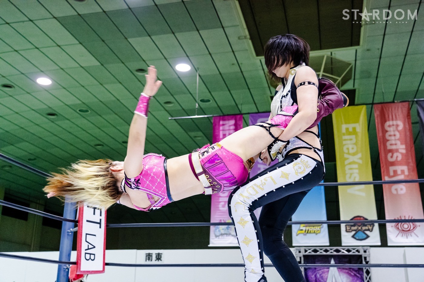 ゴッズアイの朱里&レディ・C&八神蘭奈組とE neXus Vのジーナ&月山和香&HANAKO組が6人タッグマッチで激突。アメリカ修行から帰国したHANAKOとレディの大型対決も注目される。