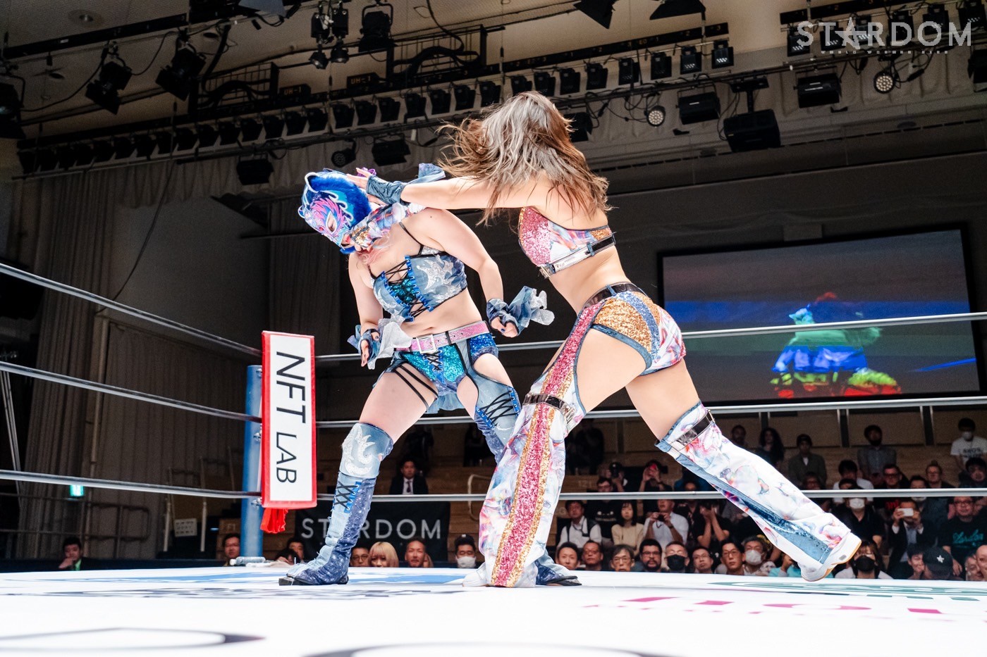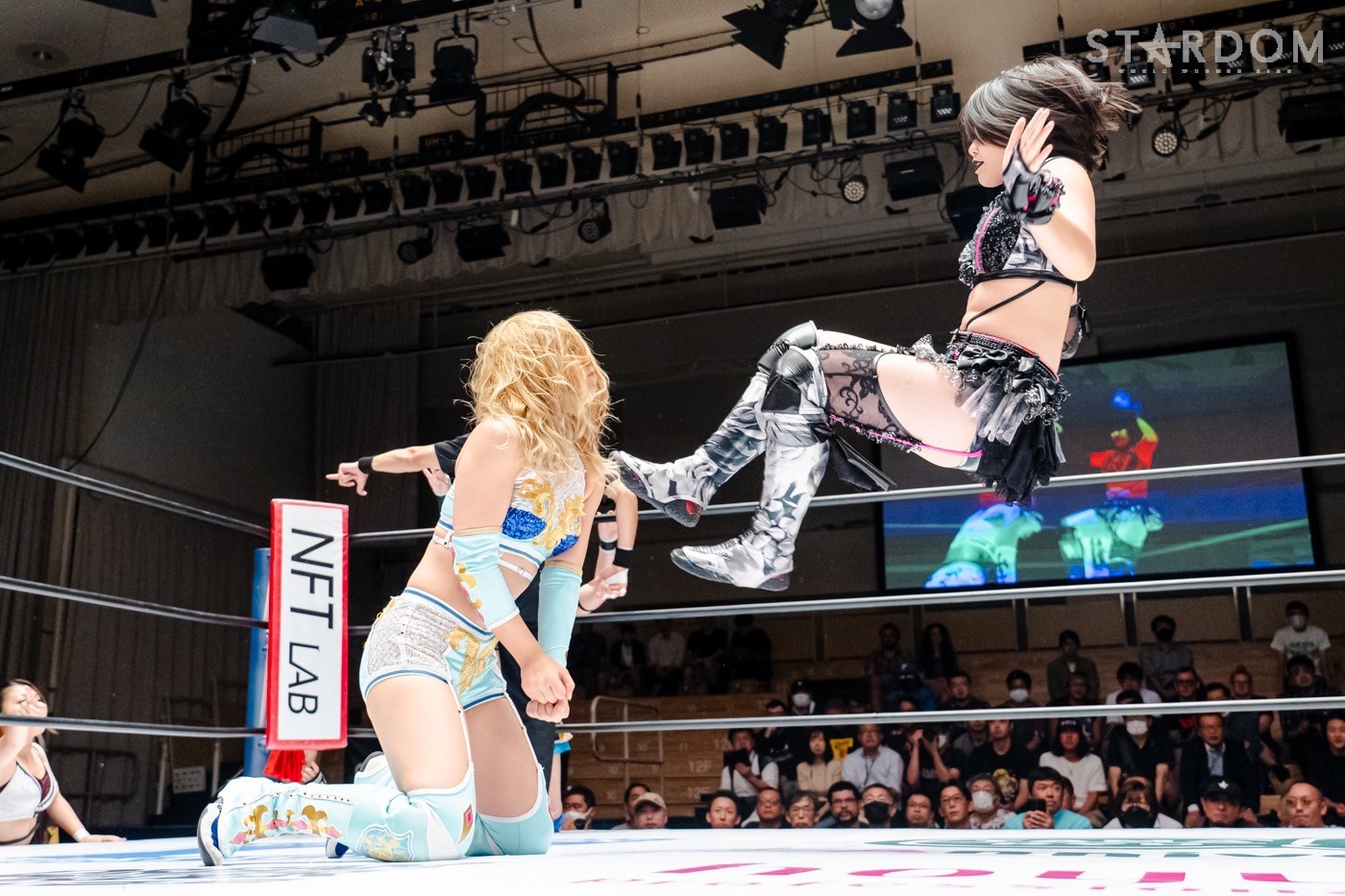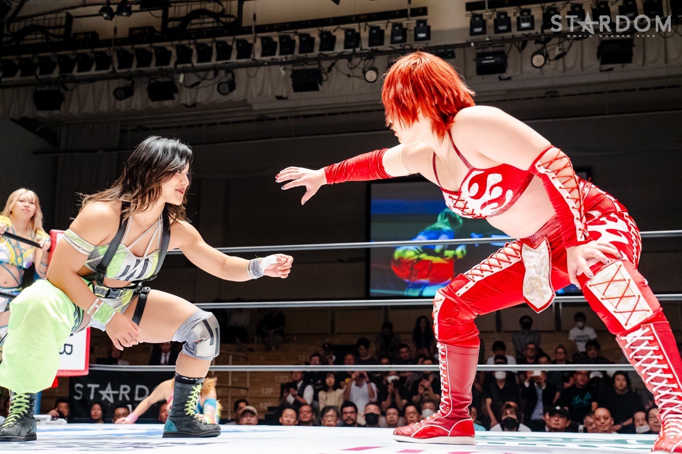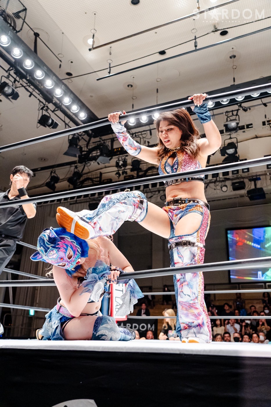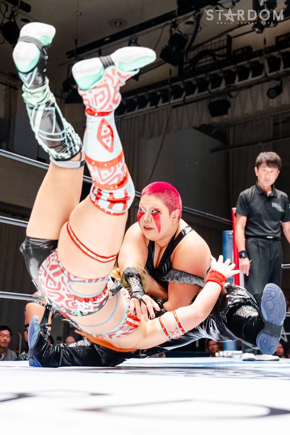 STARSのFWC葉月&コグマ組とネオジェネシスのスターライト・キッド&星来芽依組がタッグ対戦。10・5名古屋で一騎打ちをおこなう葉月とキッドには前哨戦。ワンダー・オブ・スターダム王座奪取失敗のショックから立ち直った葉月の闘いぶりが注目される。