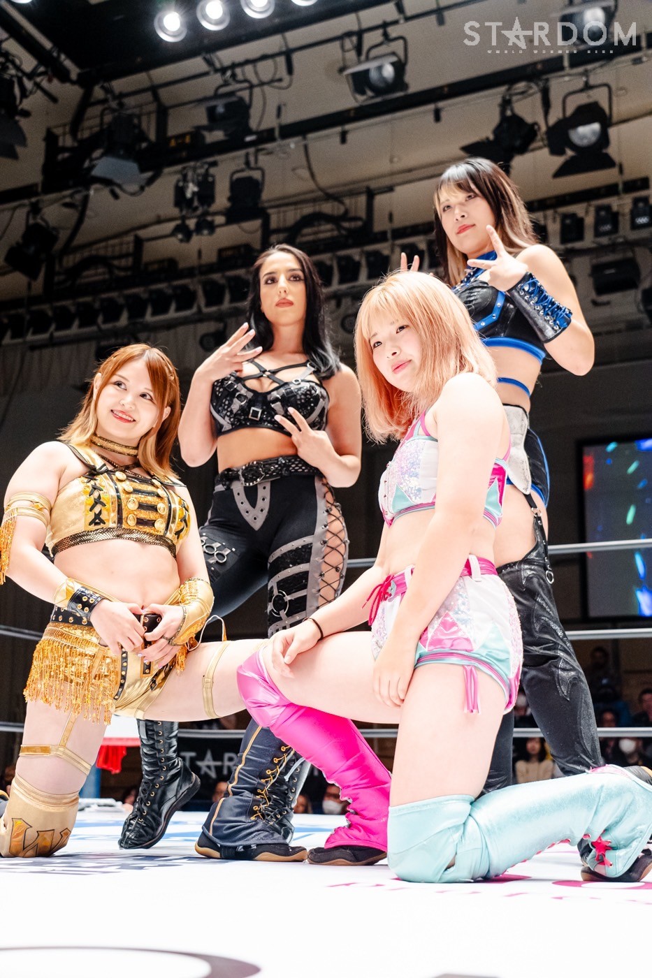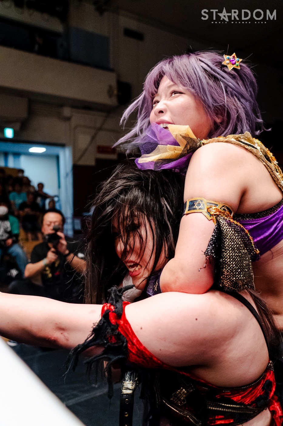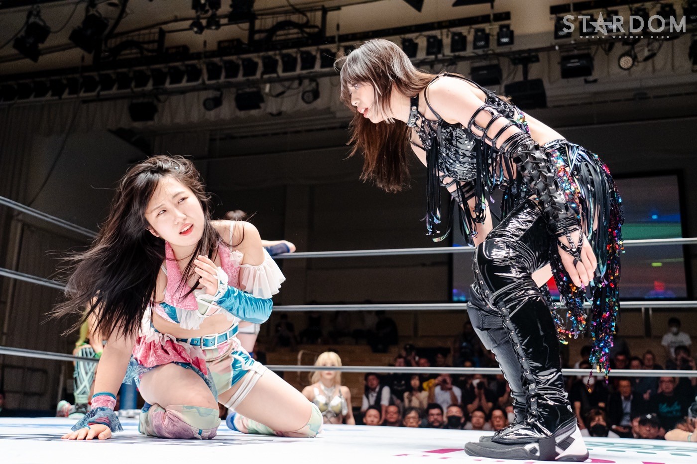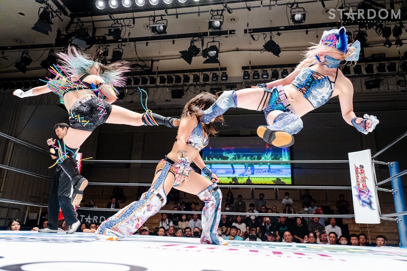 STARSのFWC葉月&コグマ組とネオジェネシスのスターライト・キッド&星来芽依組がタッグ対戦。10・5名古屋で一騎打ちをおこなう葉月とキッドには前哨戦。ワンダー・オブ・スターダム王座奪取失敗のショックから立ち直った葉月の闘いぶりが注目される。