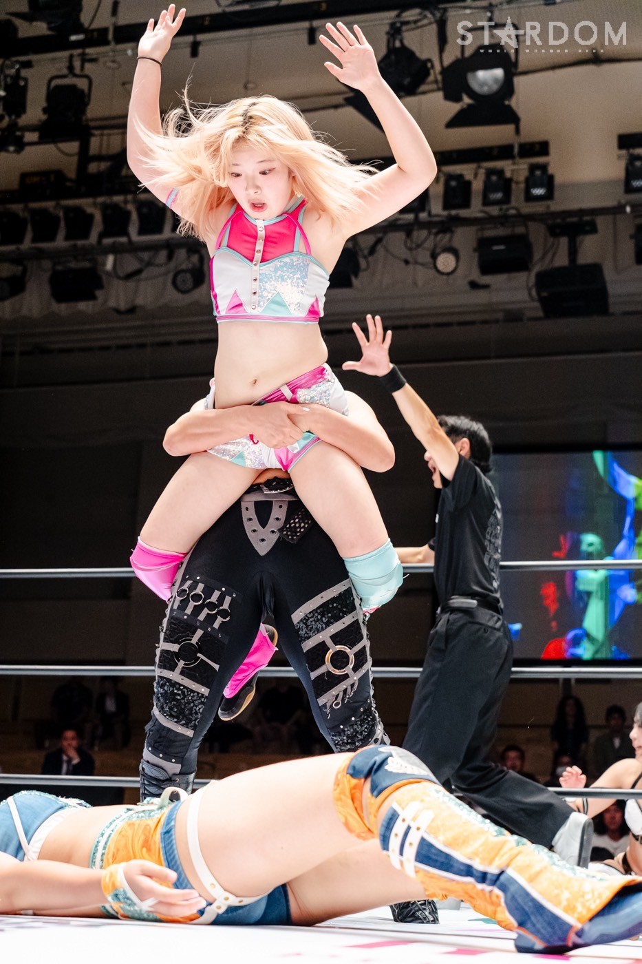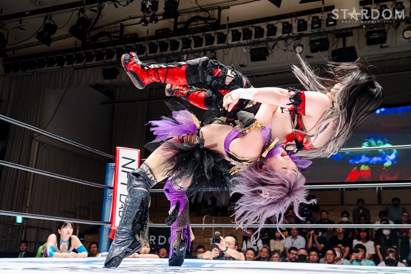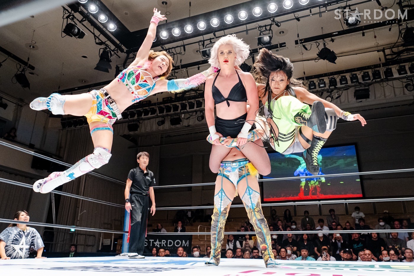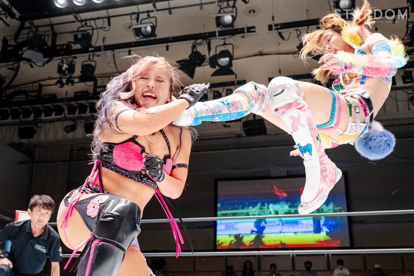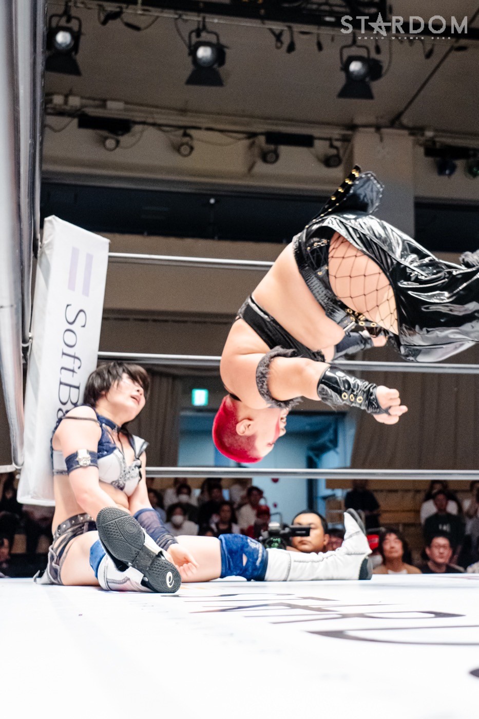 STARSのFWC葉月&コグマ組とネオジェネシスのスターライト・キッド&星来芽依組がタッグ対戦。10・5名古屋で一騎打ちをおこなう葉月とキッドには前哨戦。ワンダー・オブ・スターダム王座奪取失敗のショックから立ち直った葉月の闘いぶりが注目される。
