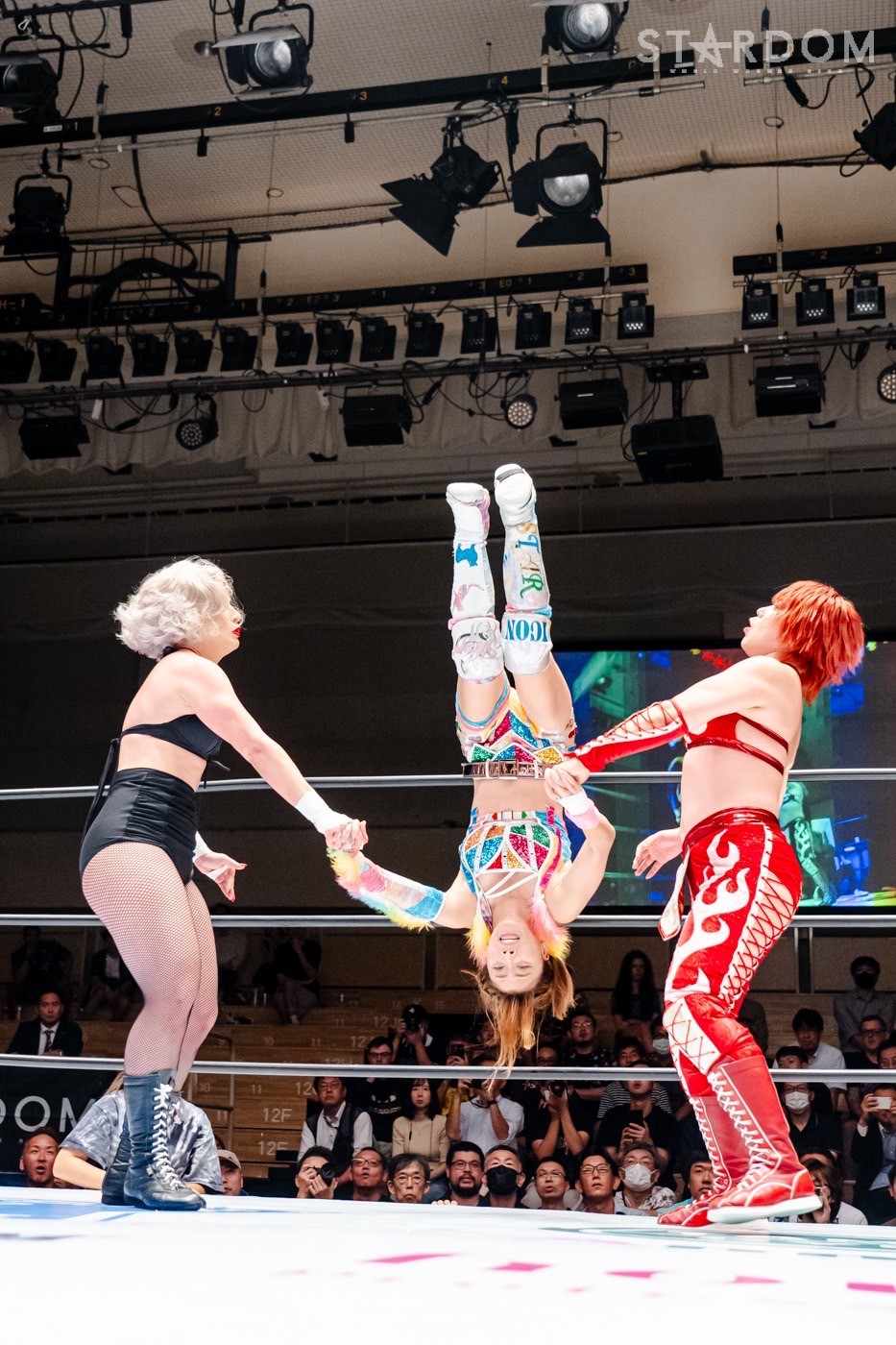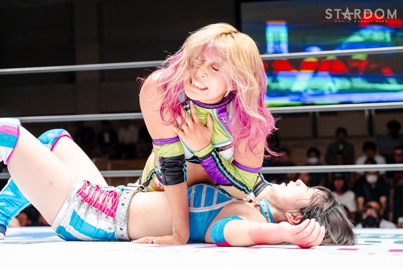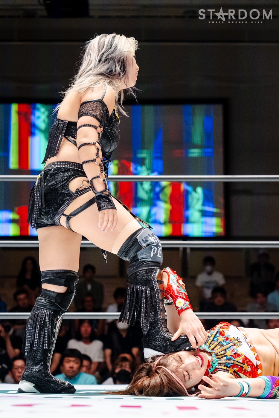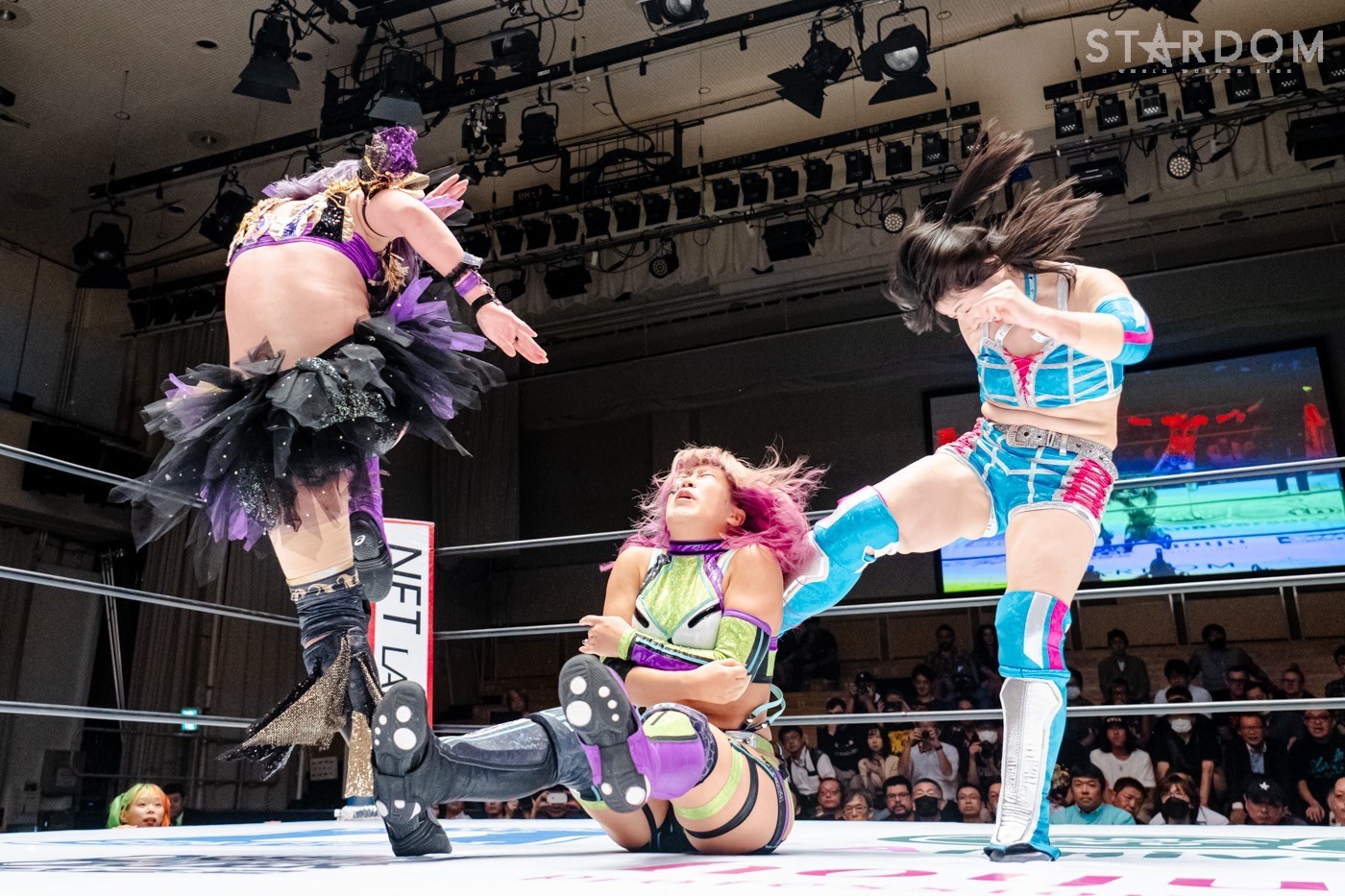 STARSのFWC葉月&コグマ組とネオジェネシスのスターライト・キッド&星来芽依組がタッグ対戦。10・5名古屋で一騎打ちをおこなう葉月とキッドには前哨戦。ワンダー・オブ・スターダム王座奪取失敗のショックから立ち直った葉月の闘いぶりが注目される。