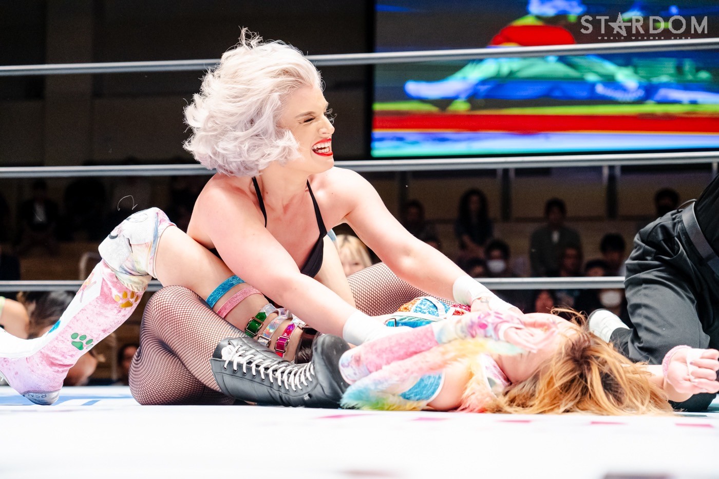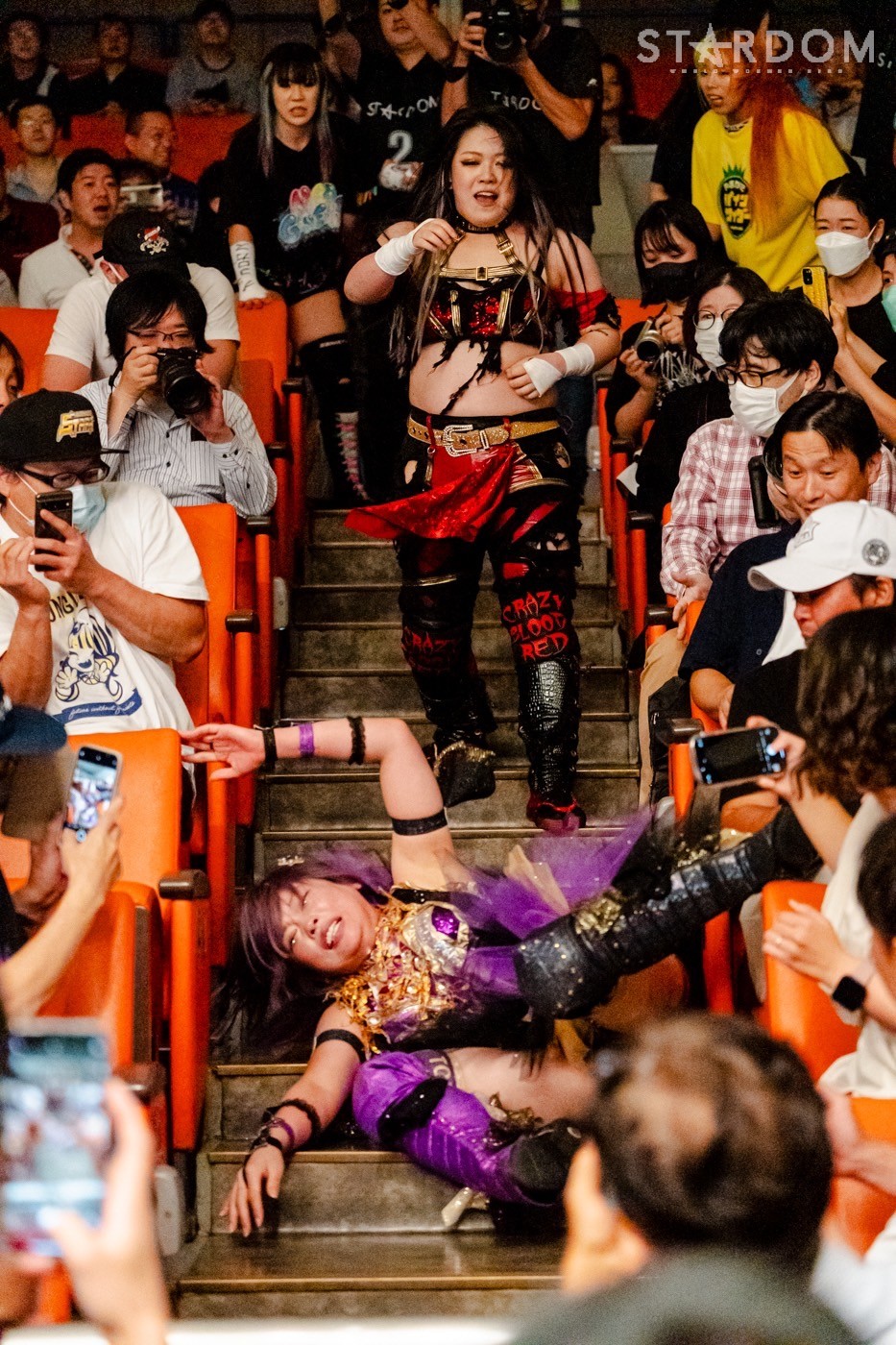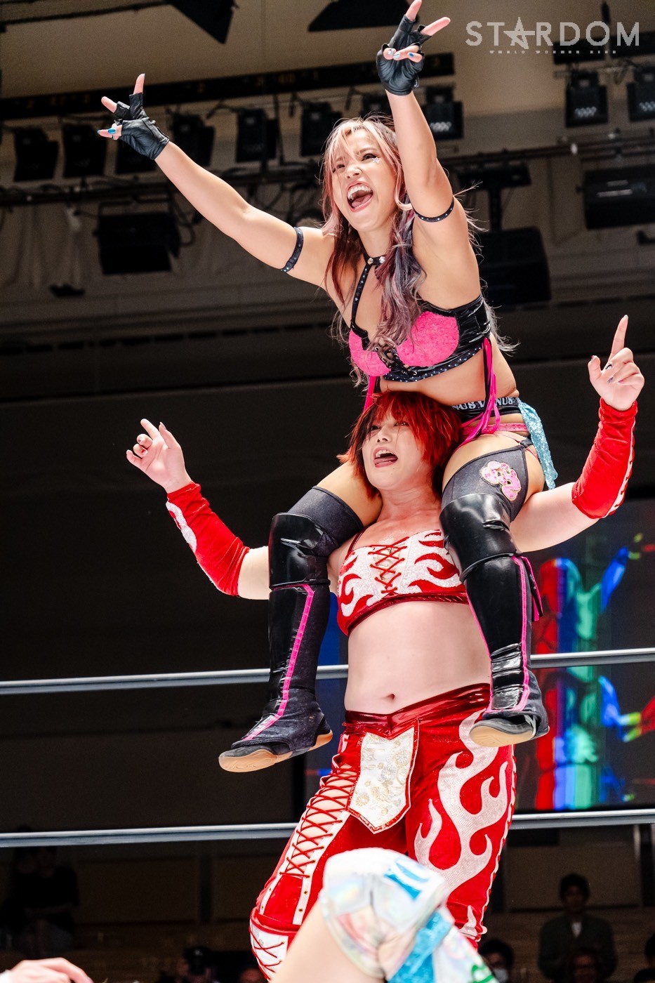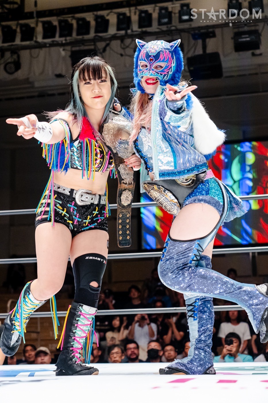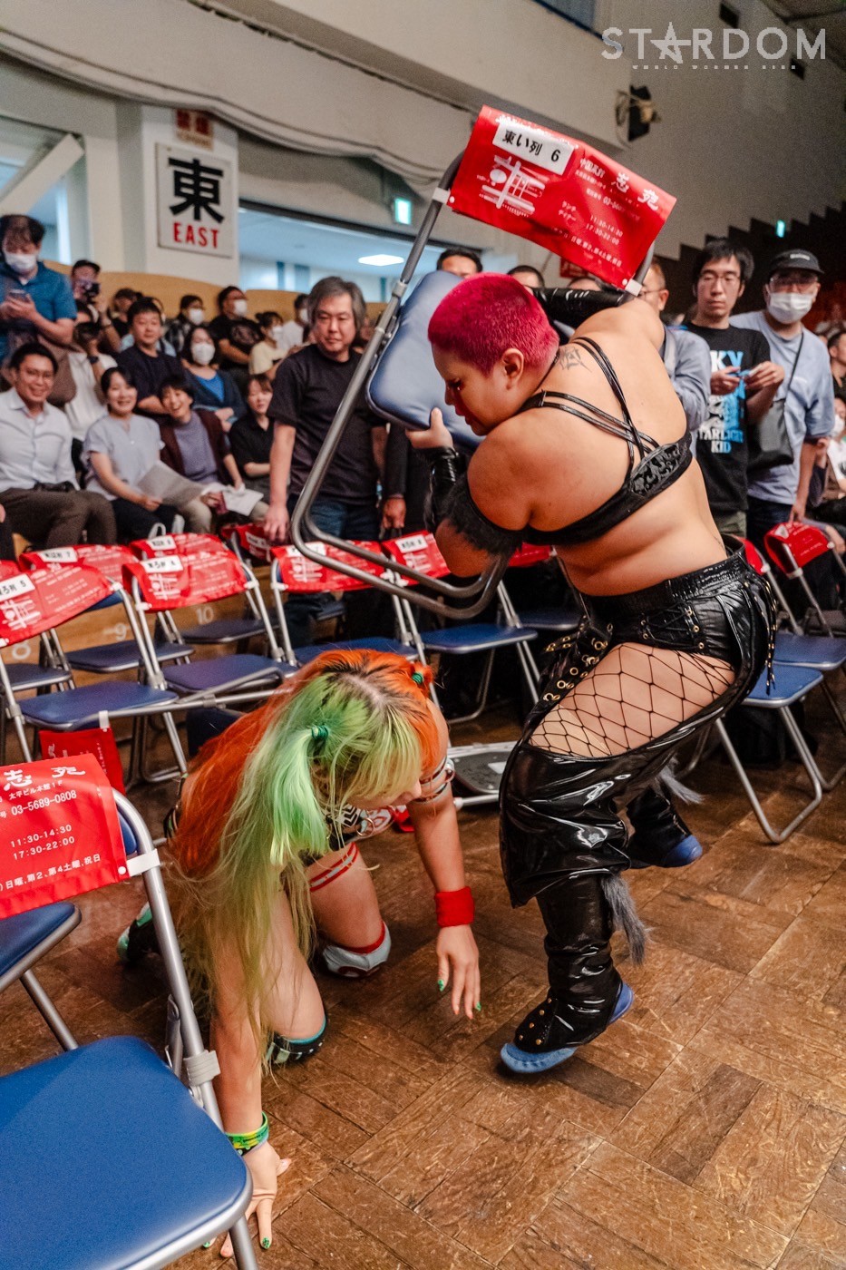 STARSのFWC葉月&コグマ組とネオジェネシスのスターライト・キッド&星来芽依組がタッグ対戦。10・5名古屋で一騎打ちをおこなう葉月とキッドには前哨戦。ワンダー・オブ・スターダム王座奪取失敗のショックから立ち直った葉月の闘いぶりが注目される。