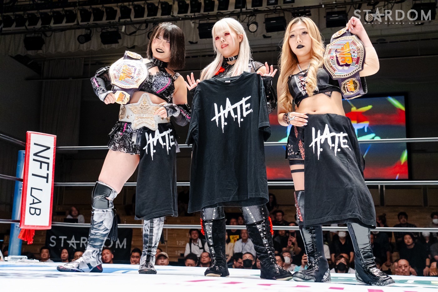 吏南と天咲が先発を買って出る。天咲のドロップキックを吏南が払い除け、エルボーの打ち合い。天咲が走ろうとすると、吏南が髪を引いてマットに叩きつける。吏南がロープに振ると、天咲がドロップキック。吏南とあずさが連係で天咲を攻撃。吏南がヘアーホイップから天咲の顔面を踏みつけていく。吏南がレフェリーにクレームをつけると天咲が後ろから攻撃。しかし吏南が自軍コーナーに追い込み、あずさが顔面を踏みつける。あずさが天咲にボディースラム3連発。天咲が返すと、あずさはさらに顔面を踏みつけていく。もう一発ボディースラムを見舞いダッシュすると、天咲がドロップキックからDDT。ともかがあずさに二段蹴り、H.A.T.E.を場外に落とし、あずさをコーナーに追い込んで串刺しニー。あずさがバックキックからミドルキック。ともかがニーで蹴り上げるが、あずさが返す。ともかのボディースラム狙いをあずさが切り返すが、ニーを食らう。ともかの投げをあずさが立ち上がりバックキック。琉悪夏がともかへセントーン投下。ともかが返すと、琉悪夏のフィッシャーマン狙いをかわしカウンターの正拳突き、ミドルキック。妃南が琉悪夏に串刺しエルボーアタック、ドロップキック。琉悪夏が返すと、妃南が払い腰で叩きつける。天咲と妃南が琉悪夏にネックブリーカー、ともかのミドルから妃南が変型ロックボトム。妃南のボディースラム狙いを琉悪夏がこらえると、吏南、あずさが介入、琉悪夏がフィッシャーマン。妃南が返すと、琉悪夏がネックハンギングの構え。妃南が切り返し外道クラッチも、カットされる。吏南が天咲にビッグブーツ、天咲がDDT。妃南が琉悪夏にネックブリーカー、琉悪夏がコーナーに追い込むとH.A.T.E.が次々と串刺し攻撃。あずさがミドルキック、琉悪夏がフィッシャーマン。しかし、ギリギリで妃南の肩が上がる。琉悪夏がネックハンギングボムを決めると3カウントが入った。