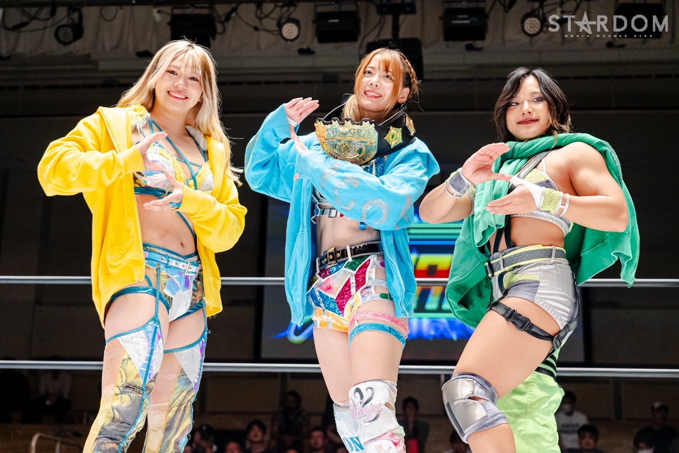 飯田が先発に出てくると、舞華が名乗り。探り合いから手四つで力比べ。飯田が押し上げ上になると、舞華が戻していく。手四つを離すとショルダーをぶつけ合い、ラリアットの打ち合いに移行。舞華がショルダータックルで打ち勝つが、STARSがトリオで攻撃し3方向からドロップキック。舞華が返すと、飯田が逆水平連打。白川が介入し援護すると、舞華がドロップキック。トニーが飯田にヒップバット連打。岩谷、羽南が入るがトニーが倒してEXVを呼び込みヒップバットの競演へ。白川が飯田にネックブリーカー。飯田が返すと、白川がサッカーボールキック。飯田が串刺し攻撃をかわし、飯田ロケット発射。岩谷が白川にミサイルキック。打撃のかわし合いから岩谷がバックキック。背後からトニーがつかみかかると、岩谷がかわして白川とトニーが鉢合わせに。トニーと舞華が合体を試みるが、岩谷がまとめてアームホイップ。STARSがドロップキックで競演。岩谷の突進を白川がかわし延髄斬り。白川と舞華が合体プレス。岩谷が返すと、白川がトニーに託す。トニーは岩谷のアタマを蹴飛ばし、引き起こすパンチの連打。岩谷が打ち返し突進するがスパインバスターを食らう。岩谷がロープの反動を利用しジャーマン、トラースキック。羽南がトニーへ後方からニーアタック、飯田と合体しサンドイッチエルボー、羽南がランニングエルボースマッシュ。10分経過。羽南がバックをとるとトニーがヒップで払い除けるが払い腰を食らう。しかしトニーがカウンターでヘッドバット。羽南と飯田がドロップキックでEXVを分断。岩谷が場外へトペスイシーダ。トニーを戻すとSTARSが合体フェースクラッシャー。羽南がブロックバスターホールドも舞華がカット。羽南はフィニッシュを宣言してトニーにバックドロップ狙い。舞華がバックドロップでカットし、白川とトニーが羽南に向かっていく。白川とトニーが空中胴締め落とし、トニーが羽南にスープレックス。羽南が返すとトニーはパイルの構え。岩谷がトラースキック、羽南がセブンティーンもカットされる。STARSにEXVとトニーがラリアット。トリオで串刺しヒップアタックを連打し、トニーが岩谷にストームゼロ、つづけて羽南にも見舞うと3カウントが入った。