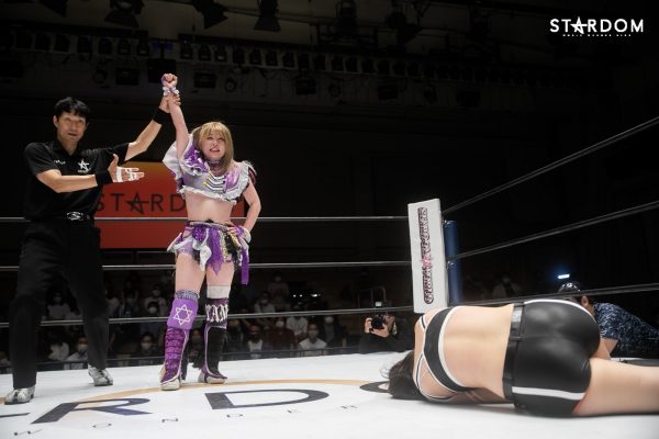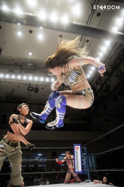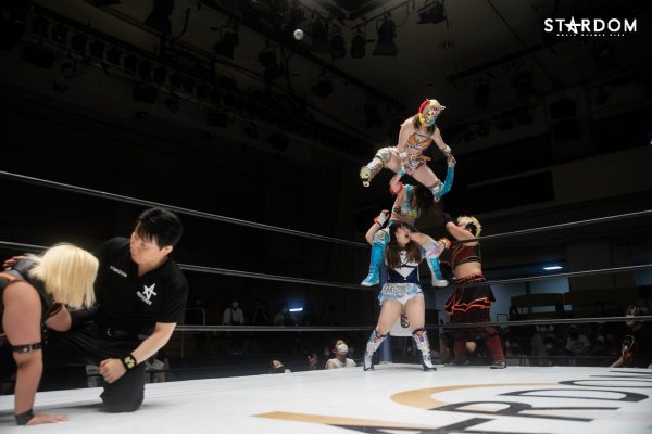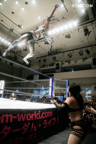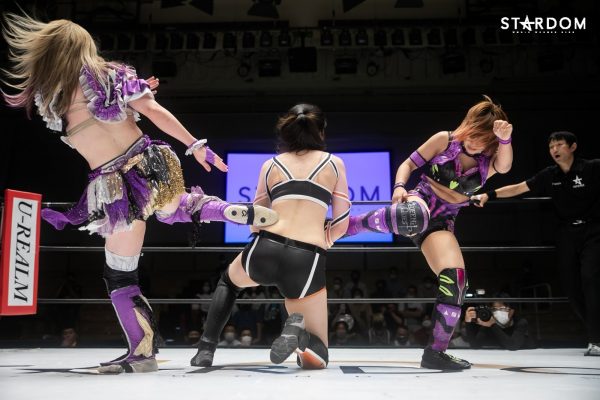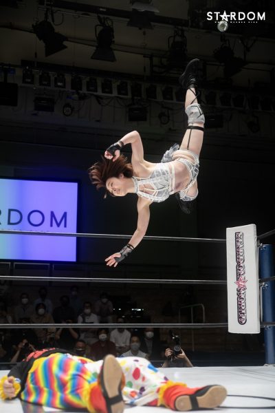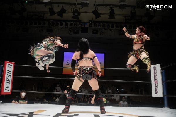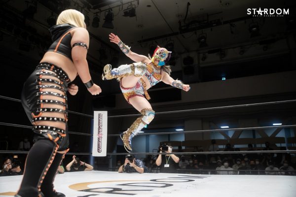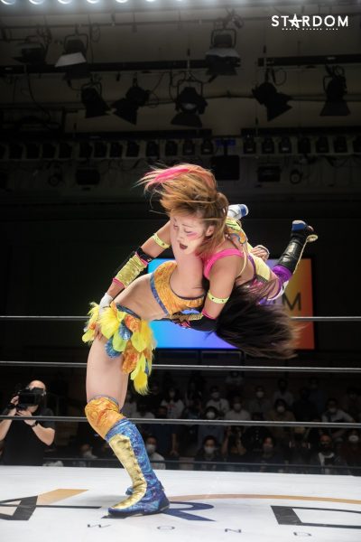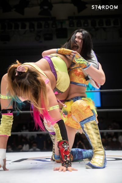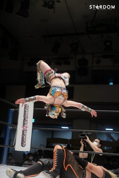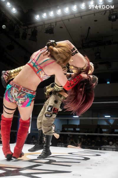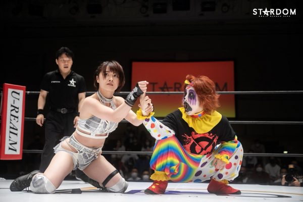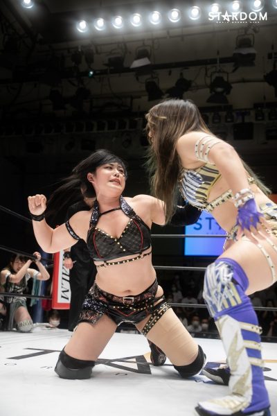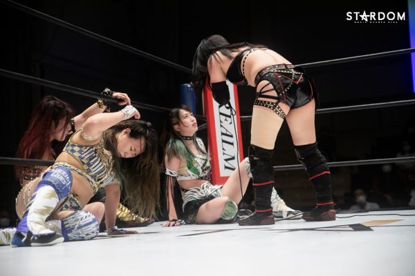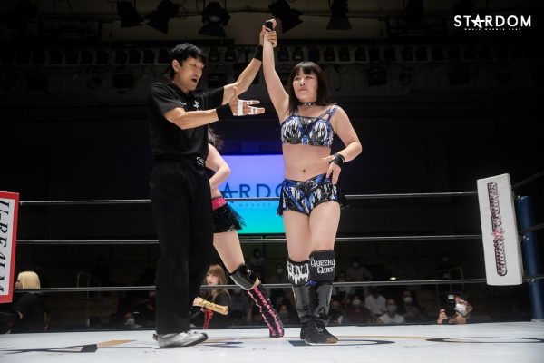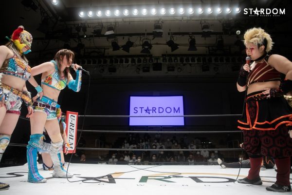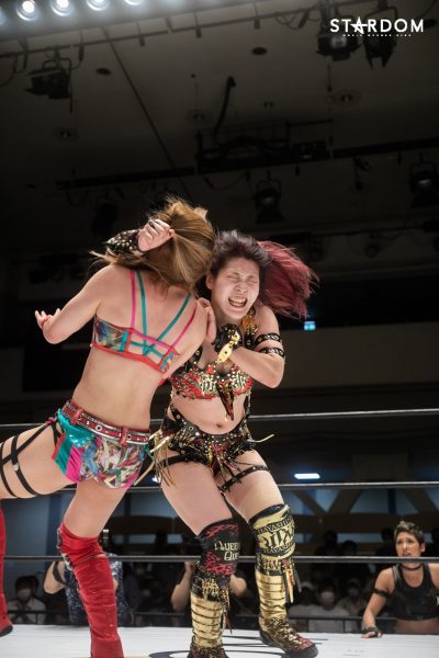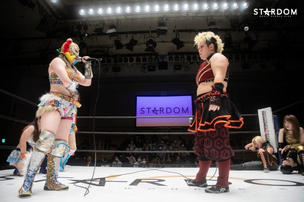 上谷「私は、プロレスに出会うまでにダンスだったりアイドルだったり、いろんな経験をしてきたんですけれど、努力しても、努力しても、なかなか報われることが少なかったです。そんな過去の自分とシンデレラは重なる部分があると思っています。ここでシンデレラになって、堂々と、プロレスに出会ったのは運命だったんだと、胸を張って言いたいです。未来のスターダムのこの私が、この3人を差し置いて、一気にスターに駆け上がります」