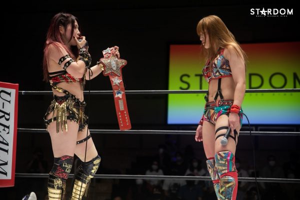 朱里「6月12日、赤いベルトに挑戦する日、私は去年、10月3日、赤いベルトを懸けた試合で、岩谷麻優に負けました。あの日を忘れません。私は、この赤いベルトを取るために、覚悟を持ってスターダムに入団しました。そして、チャンスが来ました。このチャンス、必ずつかみます。そして、天国の母、変わらず応援してくれてるみなさん、そしてなにより、自分自身のために、スターダム最高峰の赤いベルトを巻きます。そして、朱世界のはじまりにします」