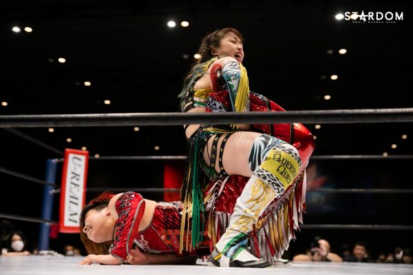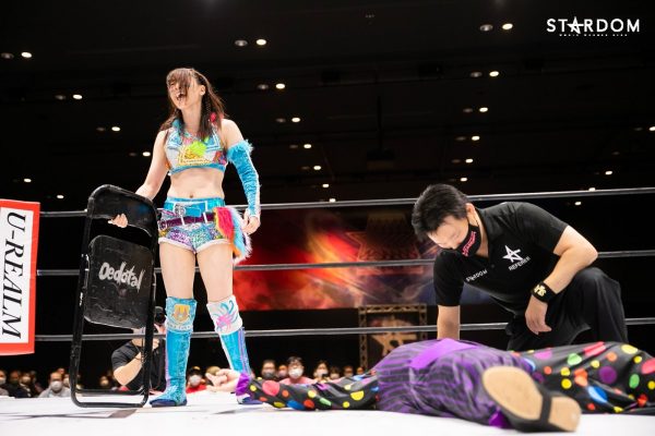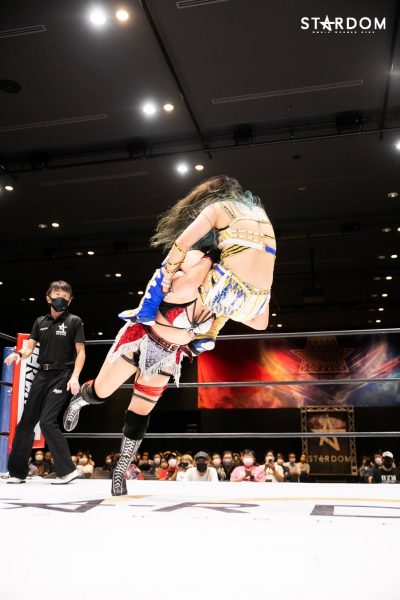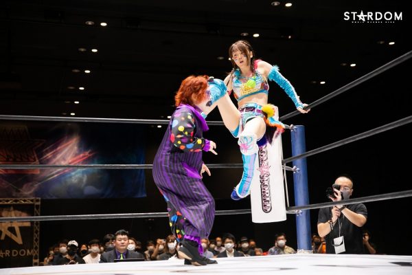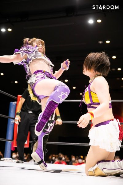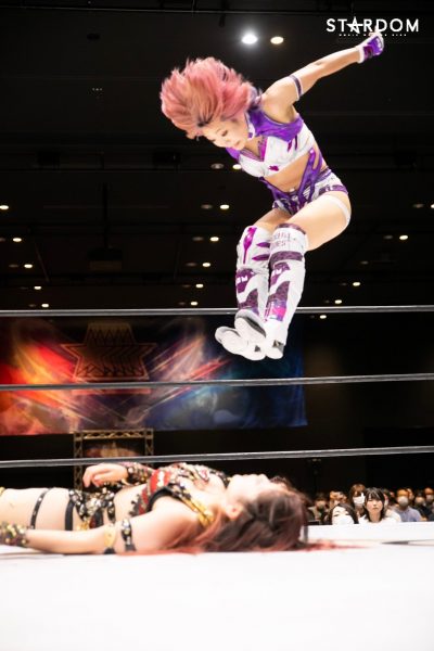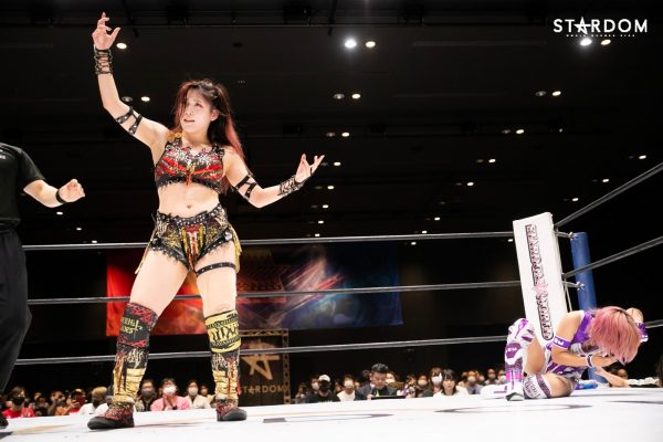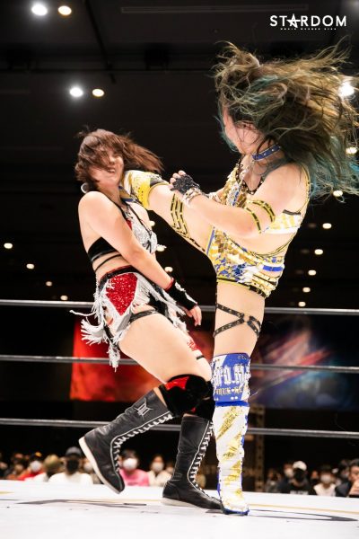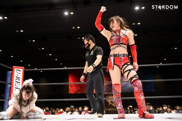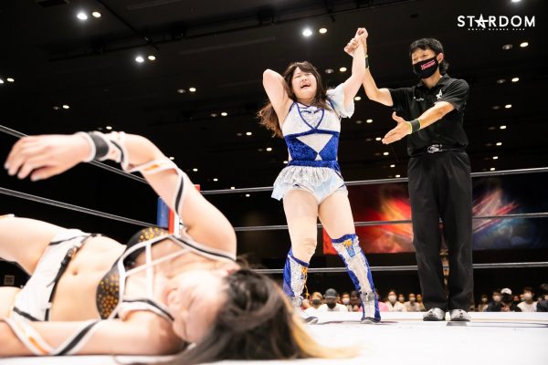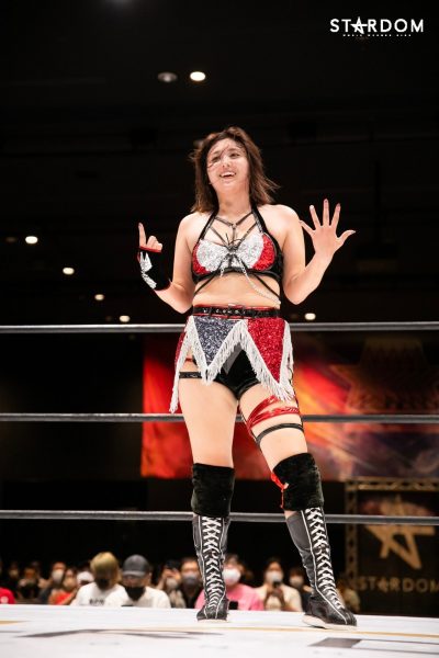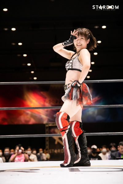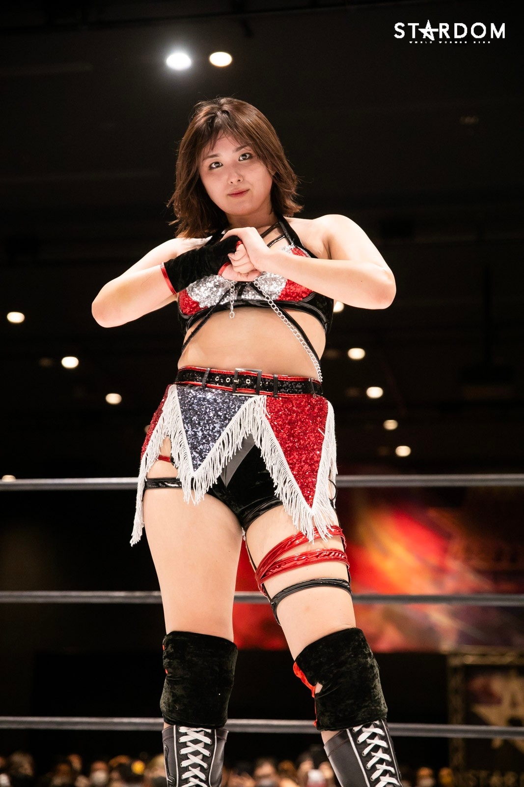 「きょうの朱里さんとの試合、正直すっごい怖かったです。やっぱりすごい試合をいままで見ていたので、実際こうやって闘ってみて、スターダムの壁の高さ、一戦一戦実感してます。今日5戦目を終えて、あと半分。自分が本当に何かここでつかみ取って、もっともっと強くなって、みなさんに成長した姿を見せていきたいと思います」
