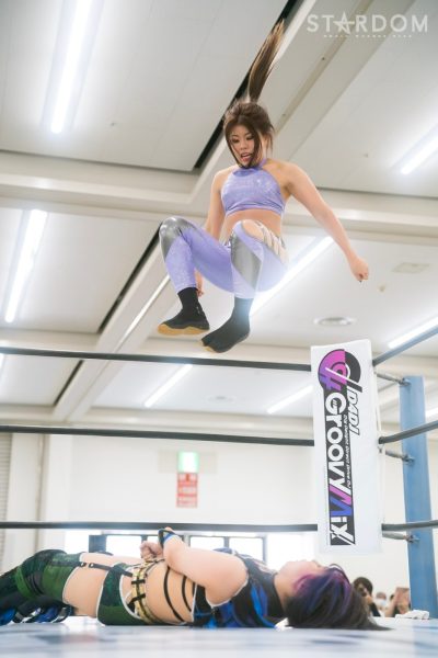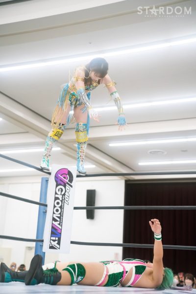 MIRAIと渡辺桃が5★STAR GP公式戦で激突。MIRAIは4勝3敗で、桃は3勝4敗。ここで桃が勝てば五分となり、MIRAIと並ぶ。またMIRAIが勝てば桃を突き放すことにもなり、どちらにとっても重要な試合であることは間違いない。MIRAIがパワーで桃をねじ伏せるか、それとも桃が大江戸隊ならではの闘い方でMIRAIを退けるか、注目カードのひとつである。