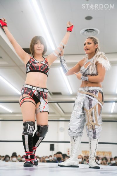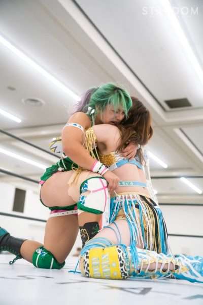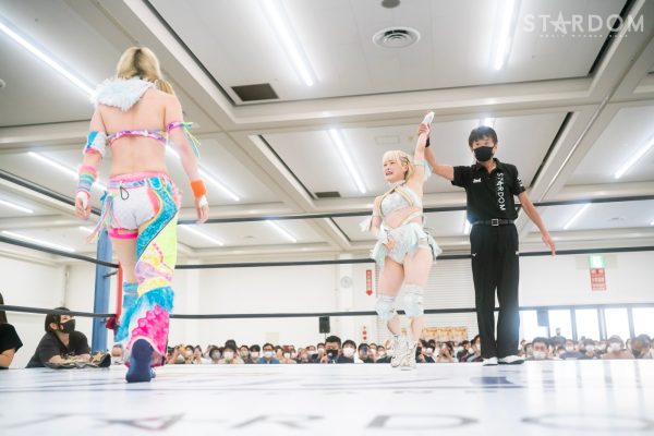 朱里「スターダム広島大会のメインで勝利しました! みなさん今日は、楽しんでもらえましたか? 熱い暑い夏5★STAR GPも折り返しとなっております。たくさんのみなさんに熱い試合をお見せできればすごくすごくうれしいです。去年私は優勝しました。今年ももちろん狙ってます。2連覇狙っているので、応援してもらえたらうれしいです。たくさんの方が来てくれてすごくすごくうれしいです。またお会いしましょう。みんなサラマポ、ありがとうございました!」