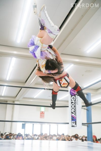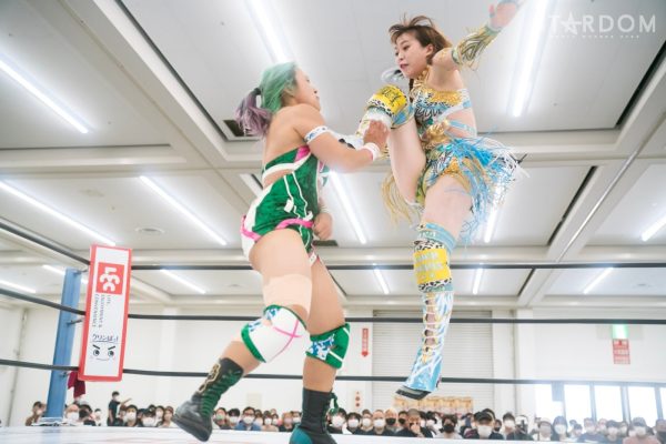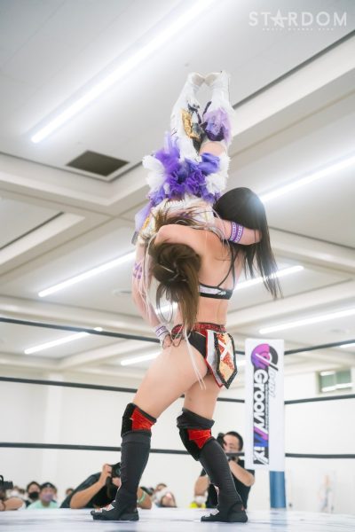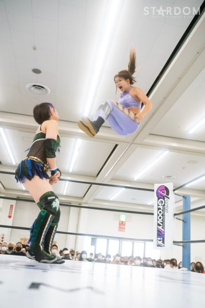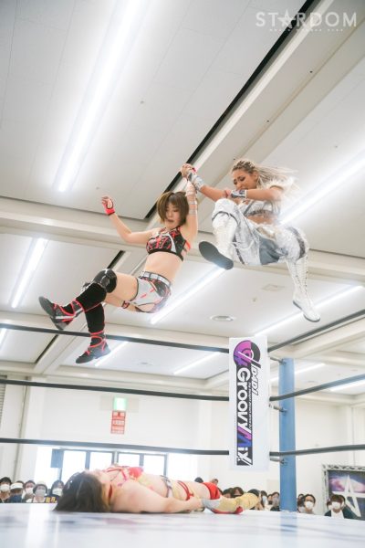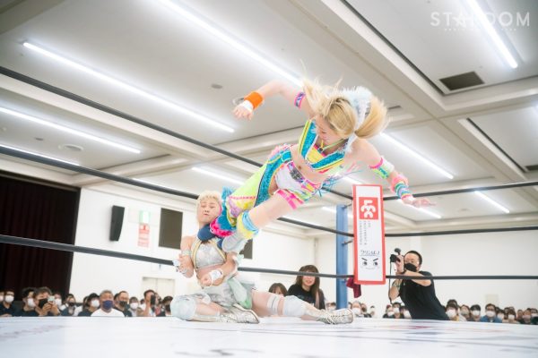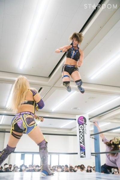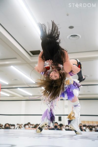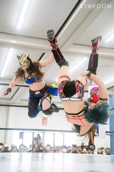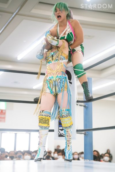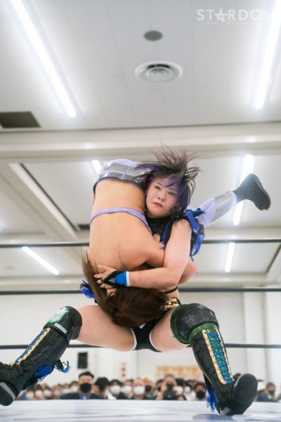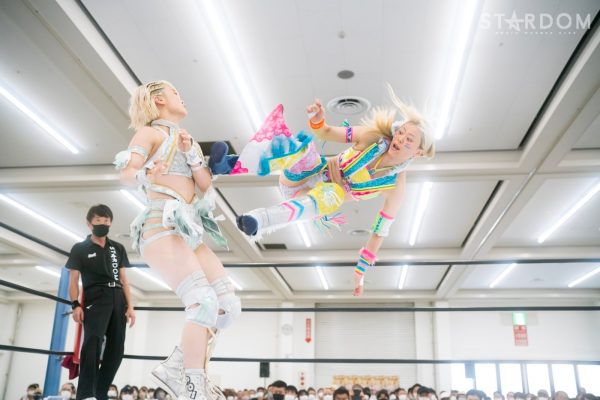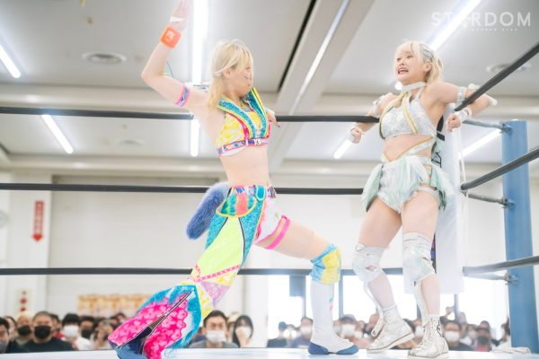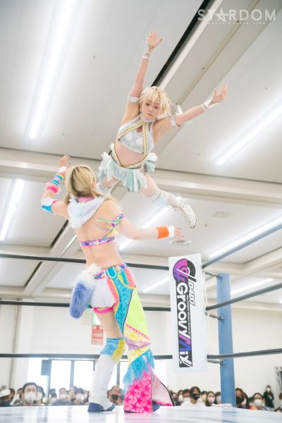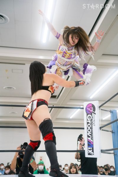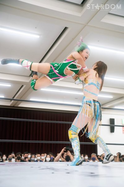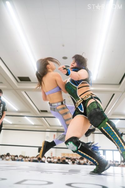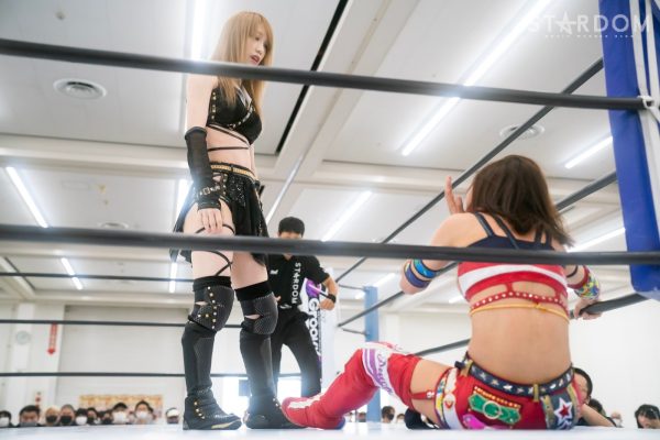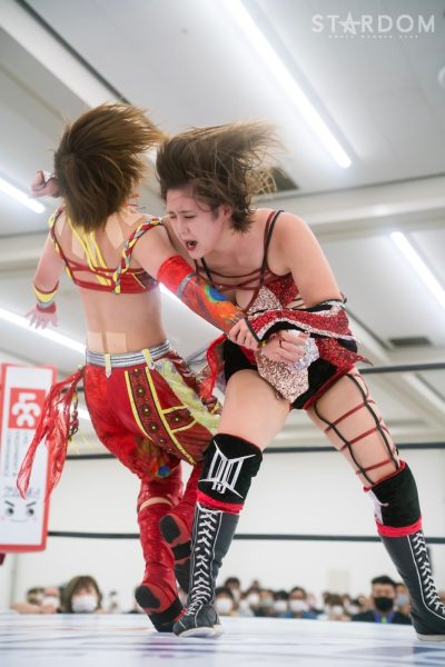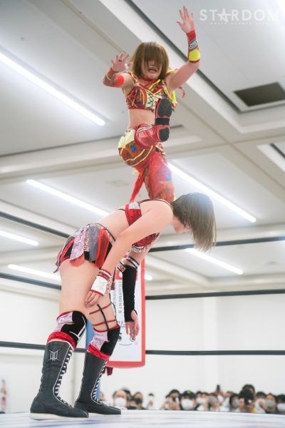 上谷沙弥と飯田沙耶のサヤサヤ対決が5★STAR GP公式戦で実現。かつてはサヤサヤコンビとしてタッグを組み、フューチャー・オブ・スターダム王座を争った間柄でもある。今年の5★STAR GPでは上谷がワンダー・オブ・スターダム王者としての出場で、長期欠場を経て復帰した飯田は予選リーグを経てのエントリーだ。そんな状況下でおこなわれるサヤサヤ対決。上谷沙弥が1敗をキープし白星を重ねるか、それともようやく1勝目を挙げた飯田沙耶が連勝を記録するか。
