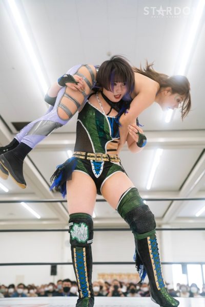 ロックアップで組み合い力比べ。朱里が慎重にブレイクしハイキックも、ひめかがかわす。ロックアップからバックを取り合い、ひめかがアームホイップ、朱里のハイキックをかわして睨み合い。ひめかがフロントネックロック、朱里が切り返しヒザ十字。ひめかがエスケープすると、朱里はストンピング連打からサッカーボールキックを3連打。ひめかが返すと、朱里がコーナーに追い込みニーアタック、フロントネックチャンスリー、ヒザ十字固め。ひめかがエスケープすると、朱里は再びサッカーボールキック。ひめかがバックフリップから串刺しボディーアタック、ショルダータックル、逆エビ固め。朱里がエスケープすると、エルボーの打ち合いに持ち込む。ひめかの突進に朱里はジャーマン。両者のエルボーが交錯しダウン。立ち上がってエルボーの応酬、朱里がバックキックも、ひめかがニーアタック。朱里はロープに乗せてDDT。返したひめかがコーナーに上がり、朱里とエルボーを打ち合い、雪崩式バックフリップ。朱里が返すと、ひめかは逆片エビ固め。朱里がエスケープすると、ひめかがJPコースター。しかし、朱里の肩が上がり10分経過。ひめかはコーナーに上がるが朱里が張り手。朱里もコーナーに上がり、雪崩式で落として腕固め。ストレッチマフラーから逆エビ固め、サソリ固めに移行。ひめかがエスケープすると、朱里がニーアタック。残り3分。朱里がスタンディングギロチンも、ひめかがクリアー。朱里のバズソーキックをひめかが丸め込む。返した朱里がニーアタック。ひめかが至近距離からラリアット。残り2分。朱里がミドルキック連打、ひめかがキャッチしパワーボム。ひめかが腕を取ってラリアット3連打。もう一発放つが朱里がクリアー。残り1分、朱里が裏拳からハイキック。ギリギリでひめかが返すと、朱里がバズソーキック。これもひめかが返すと朱里は白虎を決める。残り30秒。ひめかがタップし朱里の勝利となった。