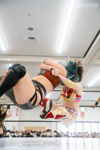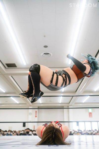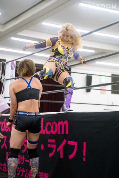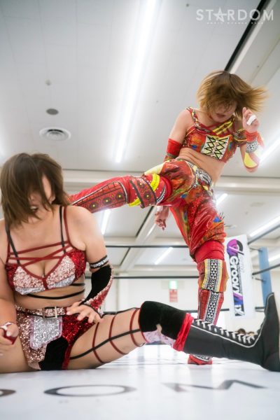3勝4敗の朱里と5勝3敗のひめかによる公式戦。両者とも前日に負けているだけに、連敗は避けたいところ。ワールド・オブ・スターダム王者の朱里はまさかの黒星先行。ふたつ勝ち越しているとはいえ、初優勝を目指すひめかにも負けられない状況となった。敗れた方が脱落になりかねない試合で、生き残るのは?
