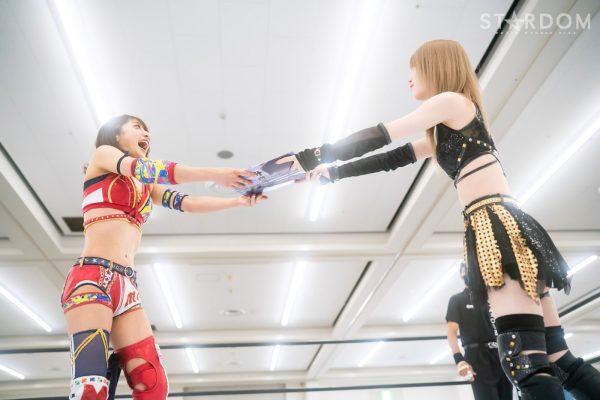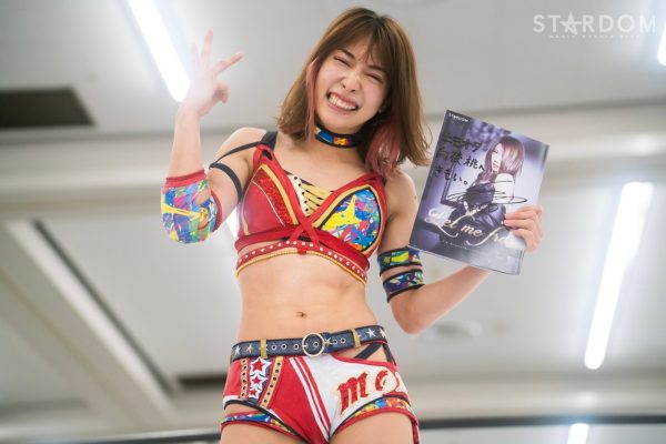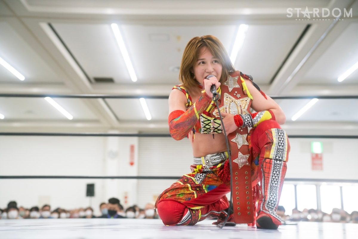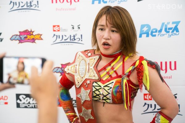 「スターダム広島大会、ひめか戦、勝利しました。いま私は4勝4敗になってます。赤いベルトのチャンピオンとしては厳しい結果だと思ってます。もう負けるわけにはいかない。残りの試合、全勝して、必ず私が2連覇成し遂げるので、みなさん見ててください」