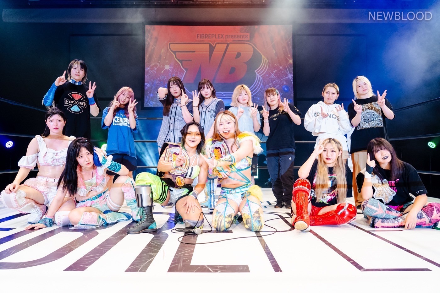 羽南「そうなんです、そうなんですよ。だから、これからもNEW BLOOD開催します! ですよね、社長。そうなんです、しかも次が9月にあるらしいので、そのほかの細かいことは公式の発表ということで。そして私たち明日もね、ゴッデスのベルトに挑戦しますので、史上初のタッグ2冠チャンピオンになりたいと思います! それでは久々のNEW BLOOD大会でしたが、『13』で締めますので。若さを信じて明日に輝けNEW BLOOD13!」