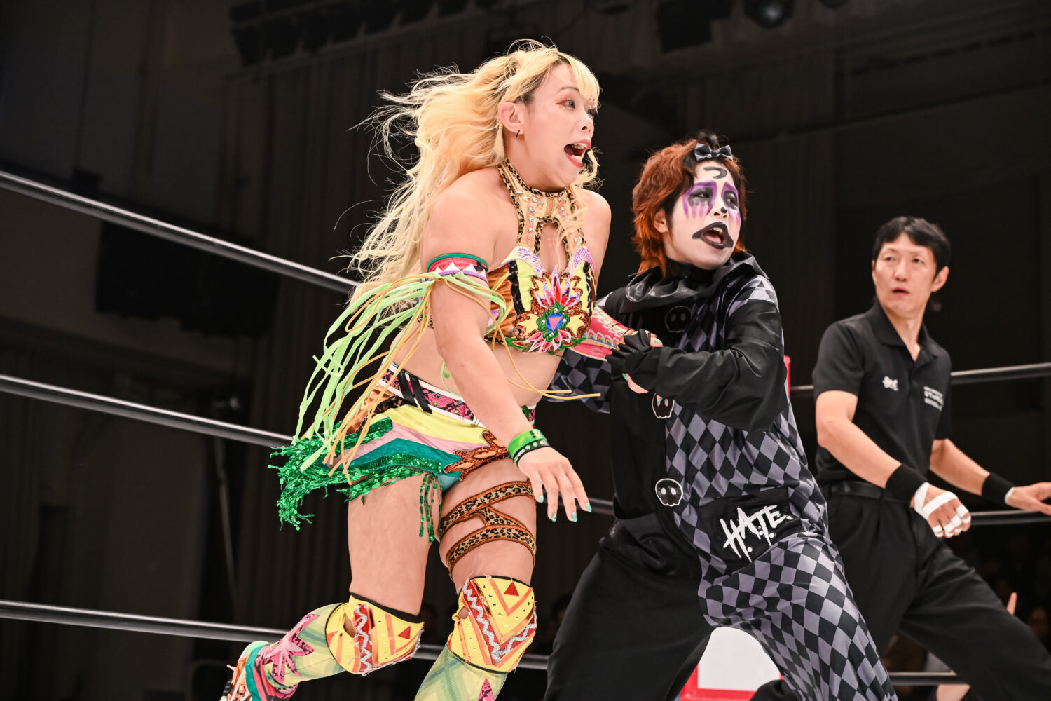 ゴングを待たずにSTARSとコズエンで奇襲攻撃。フキゲンを孤立させ、ゆりあがボディースラム。しかしロープに走ったところで足を引かれて相手チームのコーナーで捕獲される。あずさがサッカーボールキック、PK。上谷がゆりあをコーナーに追い込んで、串刺しニーアタック、ドロップキック。ゆりあをロープに固定すると、H.A.T.E.が全員で攻撃する。吏南が、ゆりあをムチで殴打しボディースラム。ゆりあのエルボー連打を吏南が受けて立つ。吏南はビッグブーツでゆりあを倒して突進。そこに向後が妨害してなつぽいと安納がダブルのドロップキック。コーナーの安納を吏南が落とす。なつぽいがまとめてボディーアタック。なつぽいと安納が競演し上谷を分断。安納は吏南にフィッシャーマン。吏南は安納へ払い腰からドロップキック。桃が安納にミドルキック連打。安納と桃がエルボーの応酬。安納が延髄斬り。桃と上谷が連係で安納を攻撃。乱戦から小波と飯田がリングイン。小波が顔面をかきむしると、飯田が逆水平連打。飯田の突進に小波がミドルキック、ブレーンバスター、スリーパー。飯田がサイドに叩きつけると吏南が乱入、上谷がスワンダイブ式ボディーアタック、あzさと桃がキックの挟み撃ち、フキゲンがセントーン。小波がカバーも飯田が返す。小波はスリーパーに飯田を捕獲するが、カットされる。小波が飯田のバックを取るがスタナーを食らう。STARSが小波に合体フェースクラッシャー。しかし、H.A.T.E.がカットする。なつぽいと向後が場外にプランチャ。H.A.T.E.がかわして上谷がダイブする。H.A.T.E.が飯田を捕まえて串刺し攻撃狙い。飯田がかわして次々とラリアット、小波にもラリアットを見舞いブレーンバスター。しかし、小波が返してみせる。10分経過。飯田が小波にもう一発狙う。しかしH.A.T.E.がカットして桃がバットで殴打、小波が胴締めスリーパー。飯田がギブアップし、小波の勝利となった。