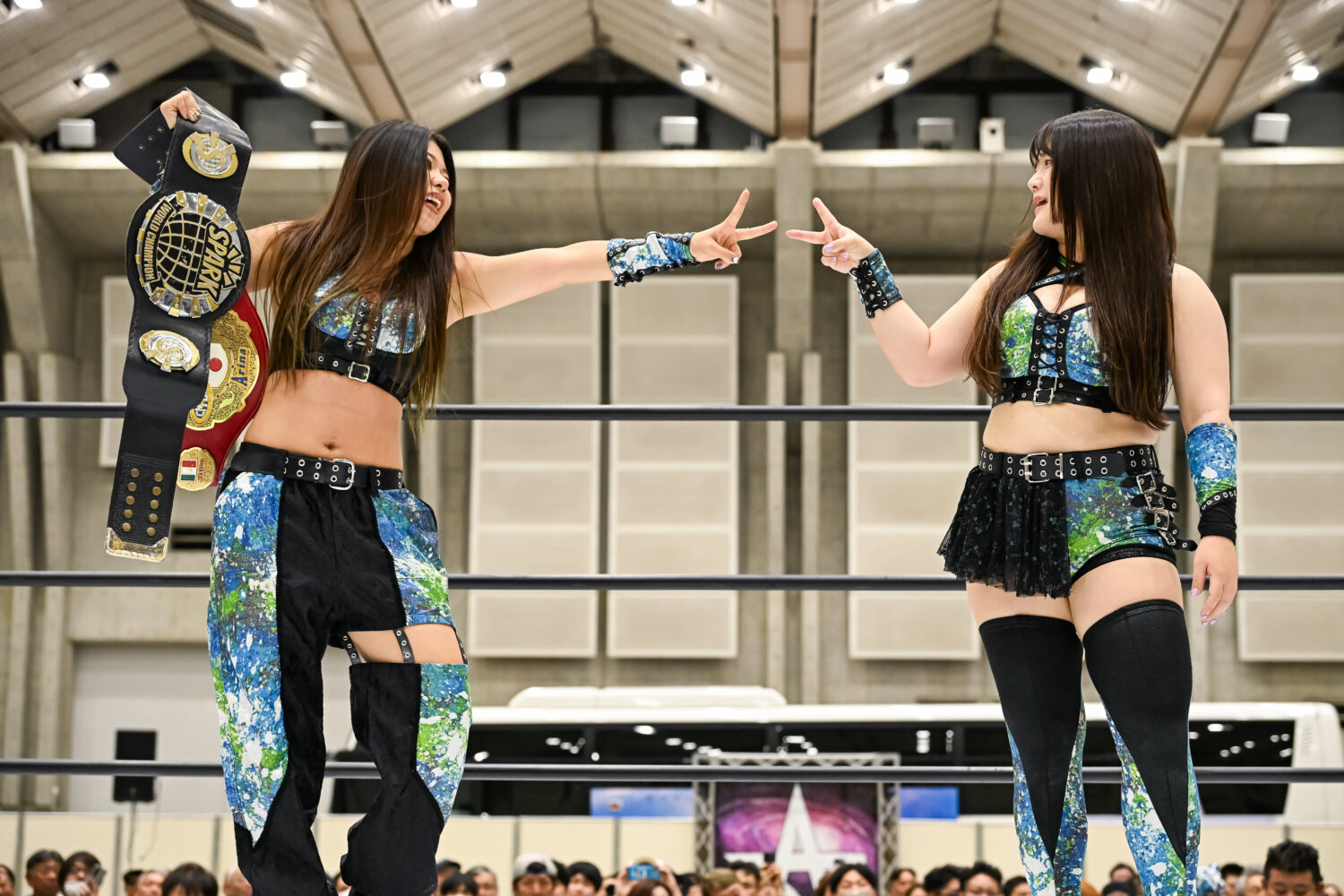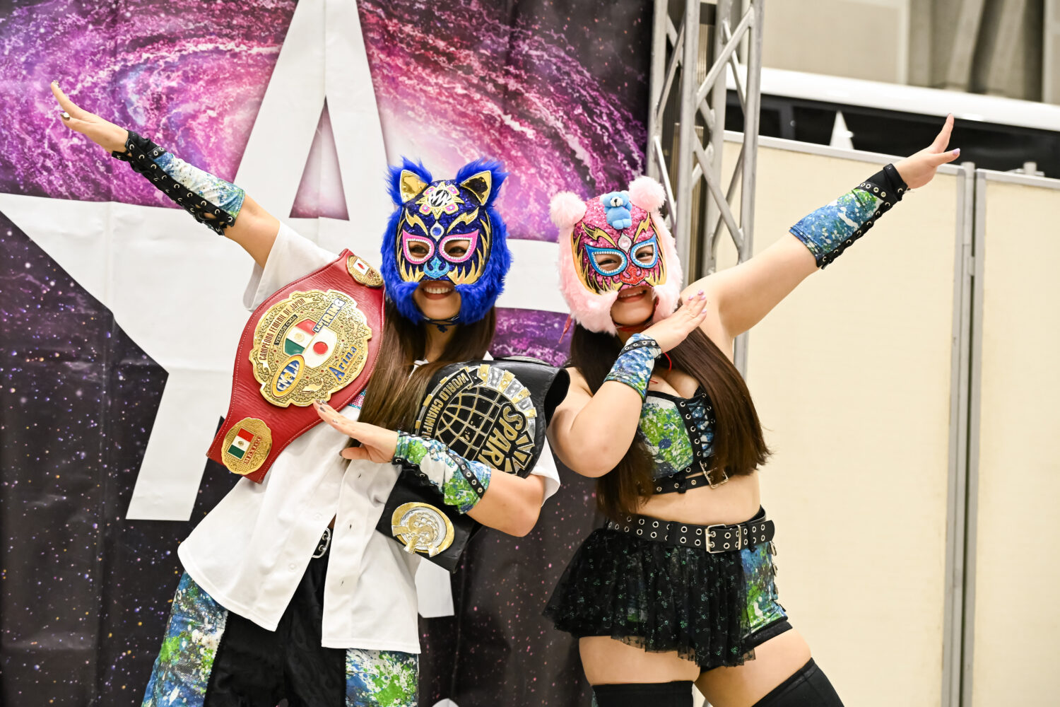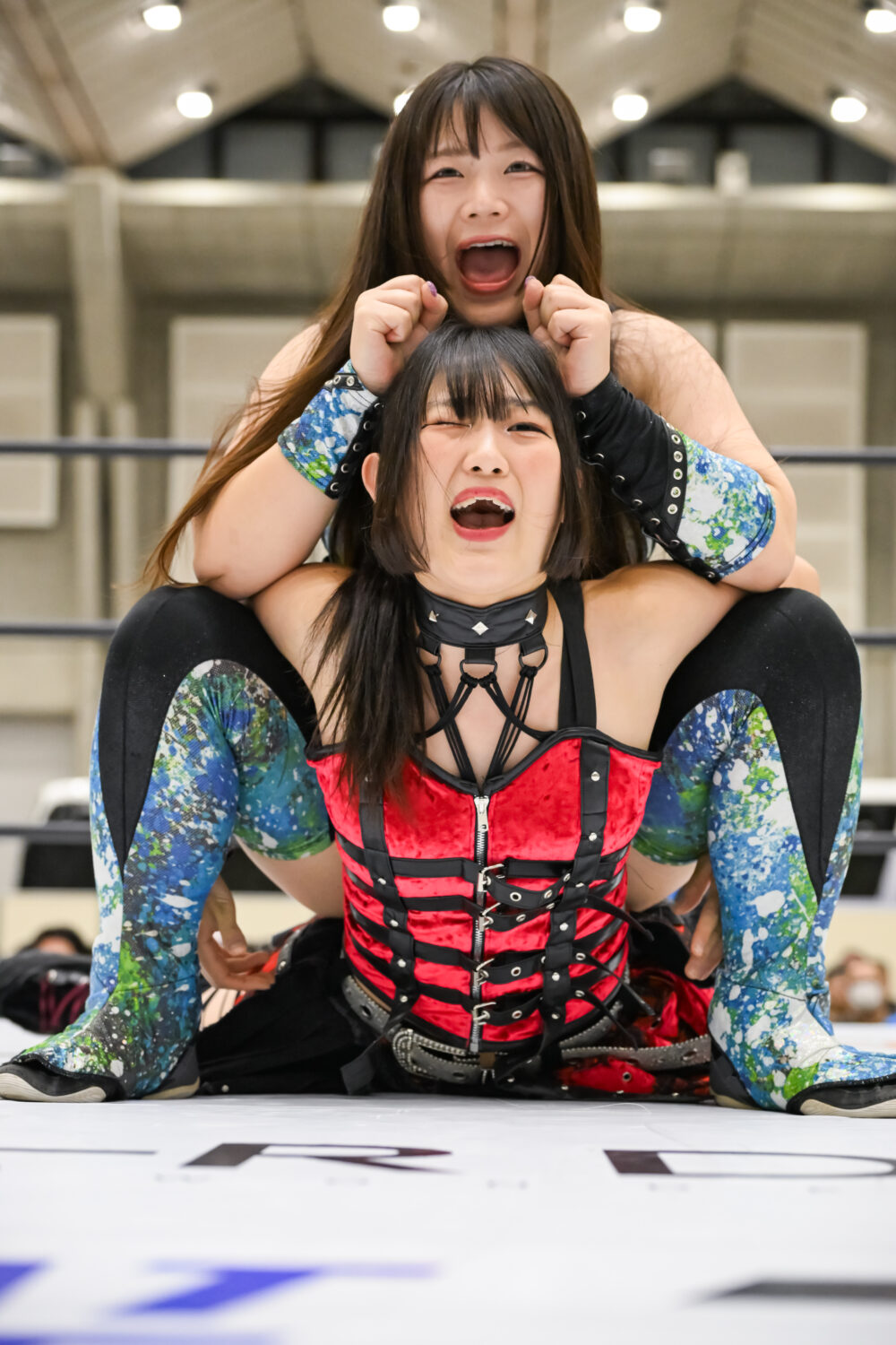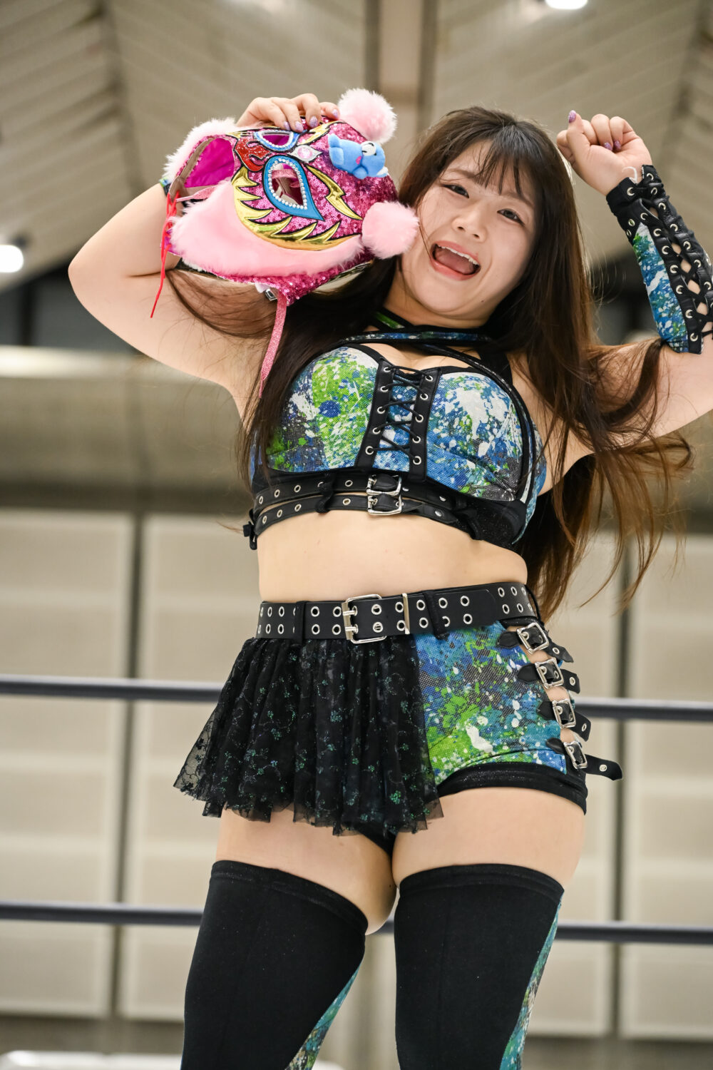 前日の後楽園でCMLL日本女子王座を争った葉月&コグマのFWCが通常のタッグチームで登場、新人の儛島エマ&古沢稀杏組に胸を貸す。スパーク女子とCMLL日本女子のシングル2冠王となった葉月の闘いぶりが注目される。もちろん、儛島と古沢がどこまでFWCの連係に食い下がるか? そして、タイトルマッチでは封印されていたコグマのクマが復活?