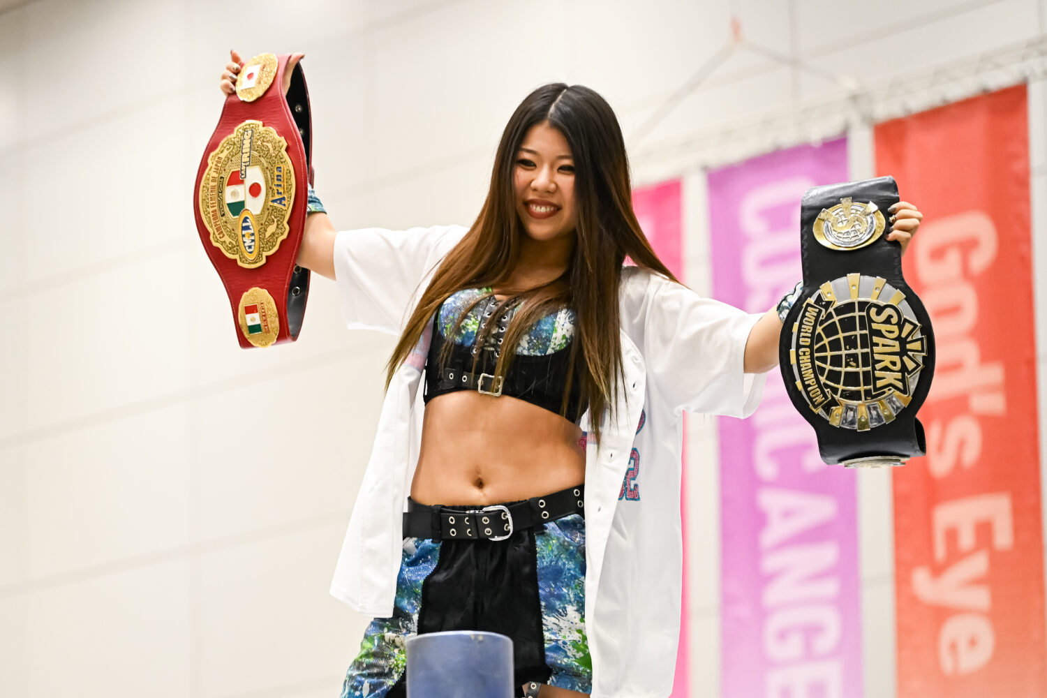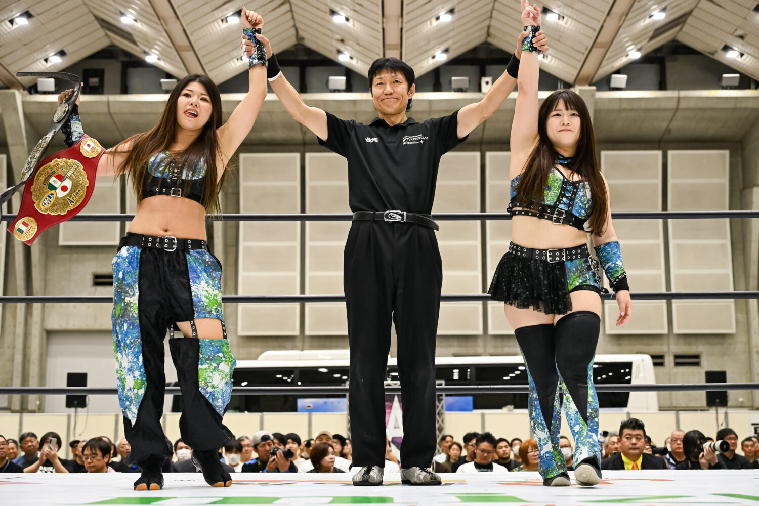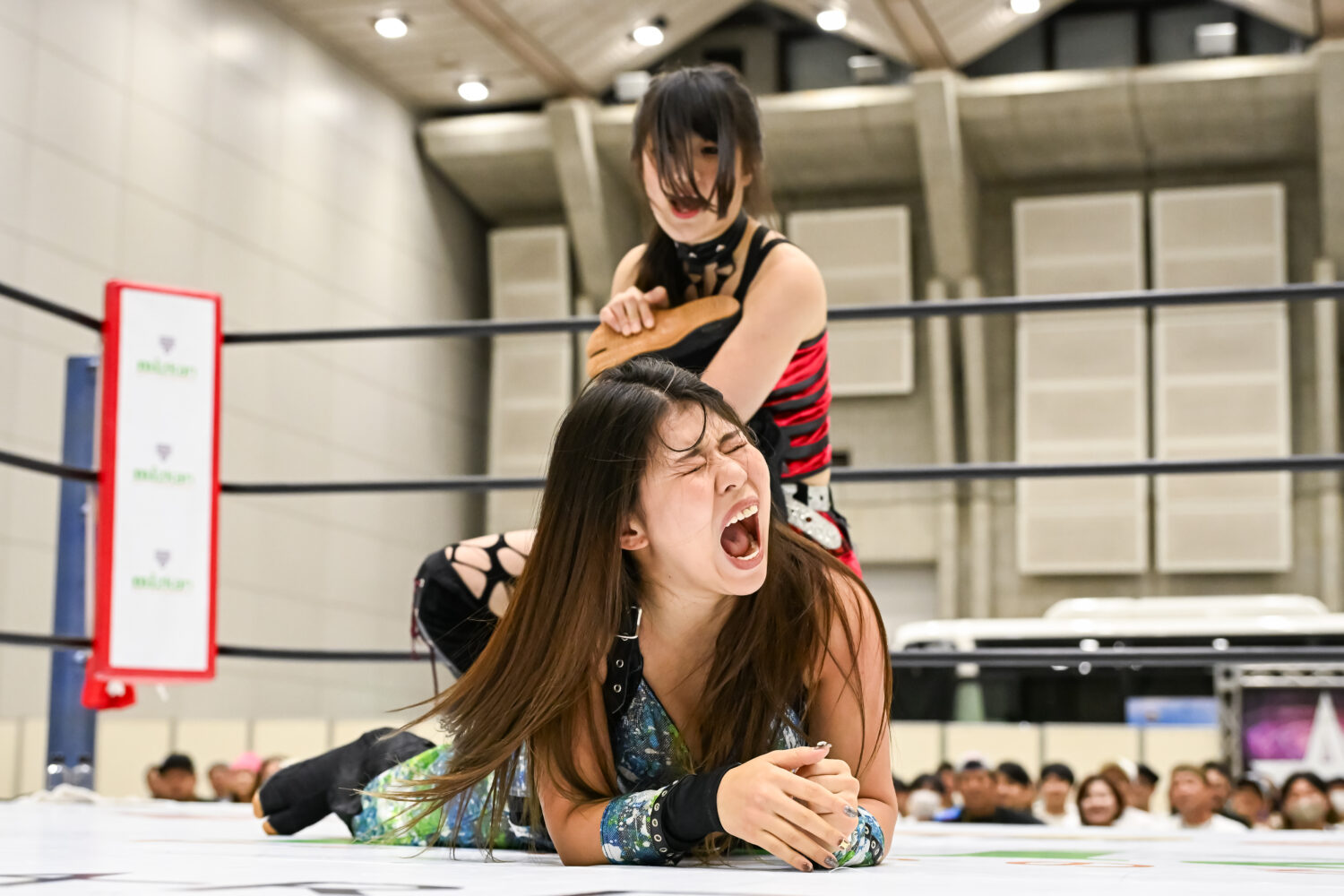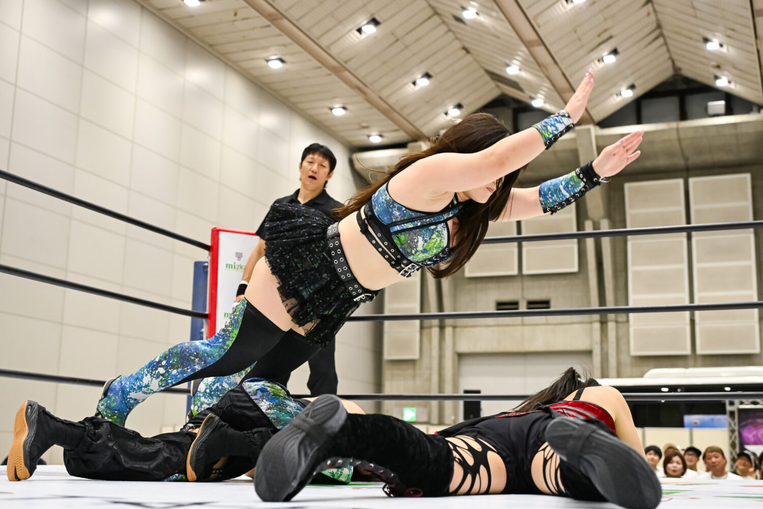 前日の後楽園でCMLL日本女子王座を争った葉月&コグマのFWCが通常のタッグチームで登場、新人の儛島エマ&古沢稀杏組に胸を貸す。スパーク女子とCMLL日本女子のシングル2冠王となった葉月の闘いぶりが注目される。もちろん、儛島と古沢がどこまでFWCの連係に食い下がるか? そして、タイトルマッチでは封印されていたコグマのクマが復活?