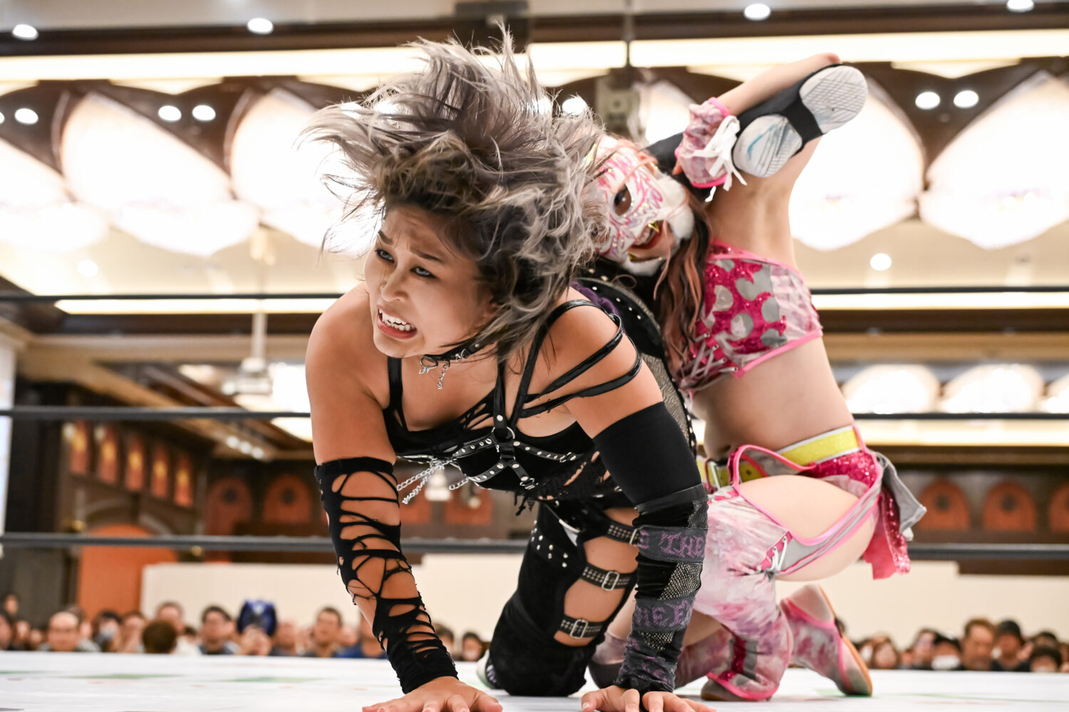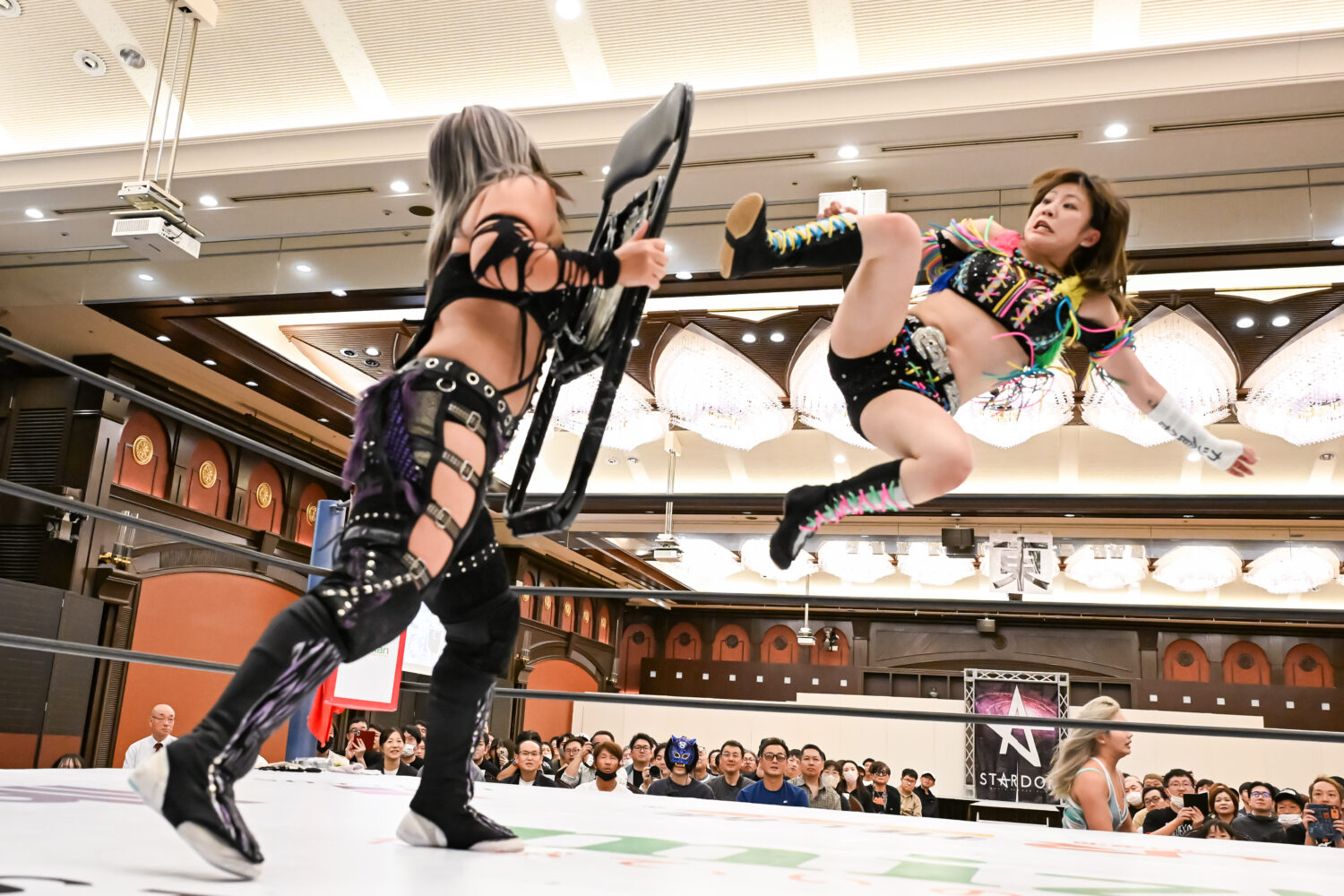 キッド「アーティスト取られてしまったけど、その後、私は小波に2連勝中なんですよ! 前回の防衛戦のときは、私が勝ったのに、ボッコボコのボロボロの状態にされてしまったし、アーティストではクロスプレーかけられ、私の周年ではメチャクチャにしてくれて、ホントに散々なんですよ。私は小波、そしてH.A.T.E.を許さない。次は、今日の脚みたいに、そして全部をボッコボコに破壊して、次こそ完膚なきまでに防衛してみせます。大田区、みなさん、私がバラ2本同時にそえる姿を見に来てください」