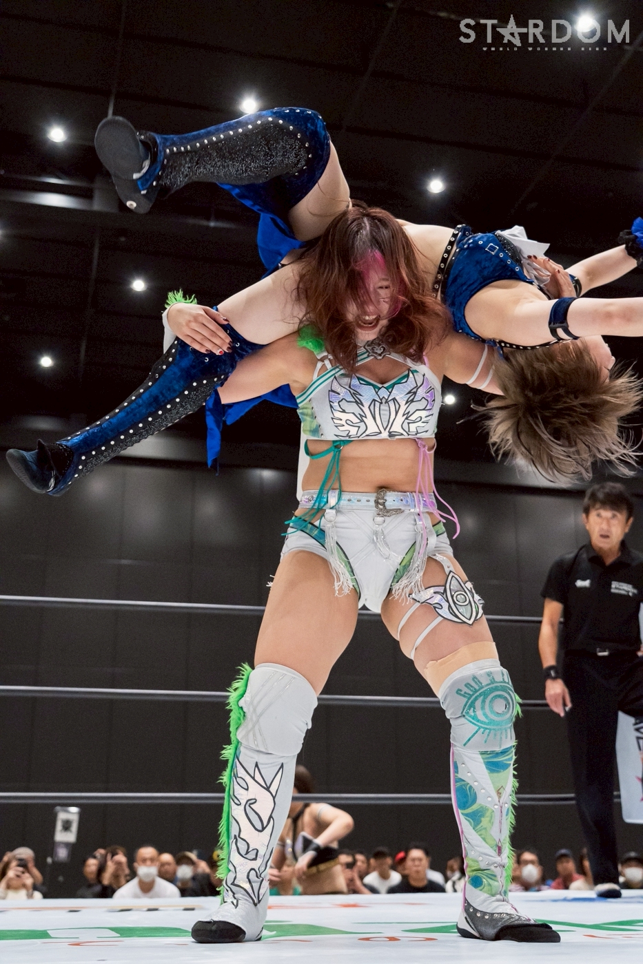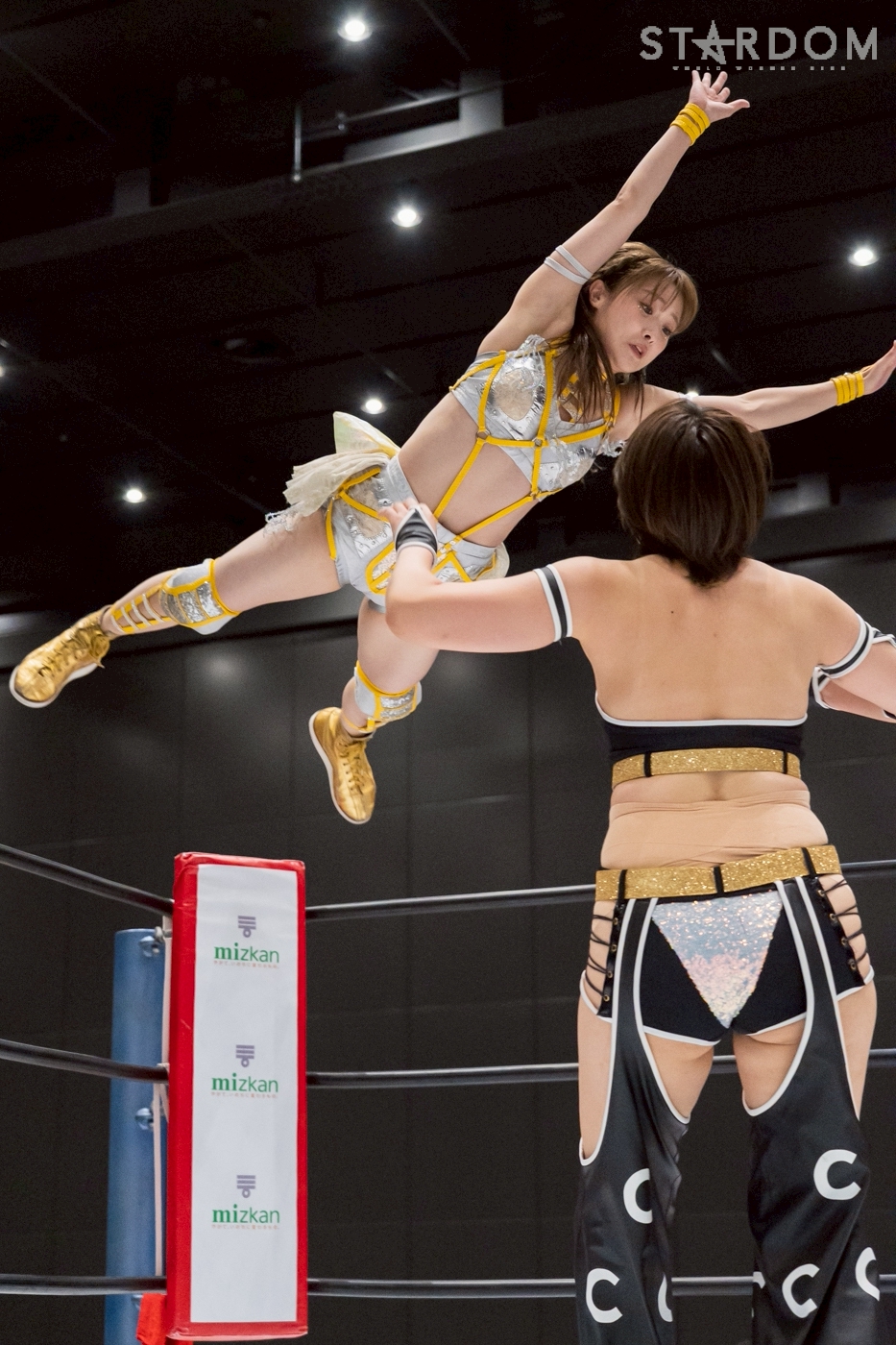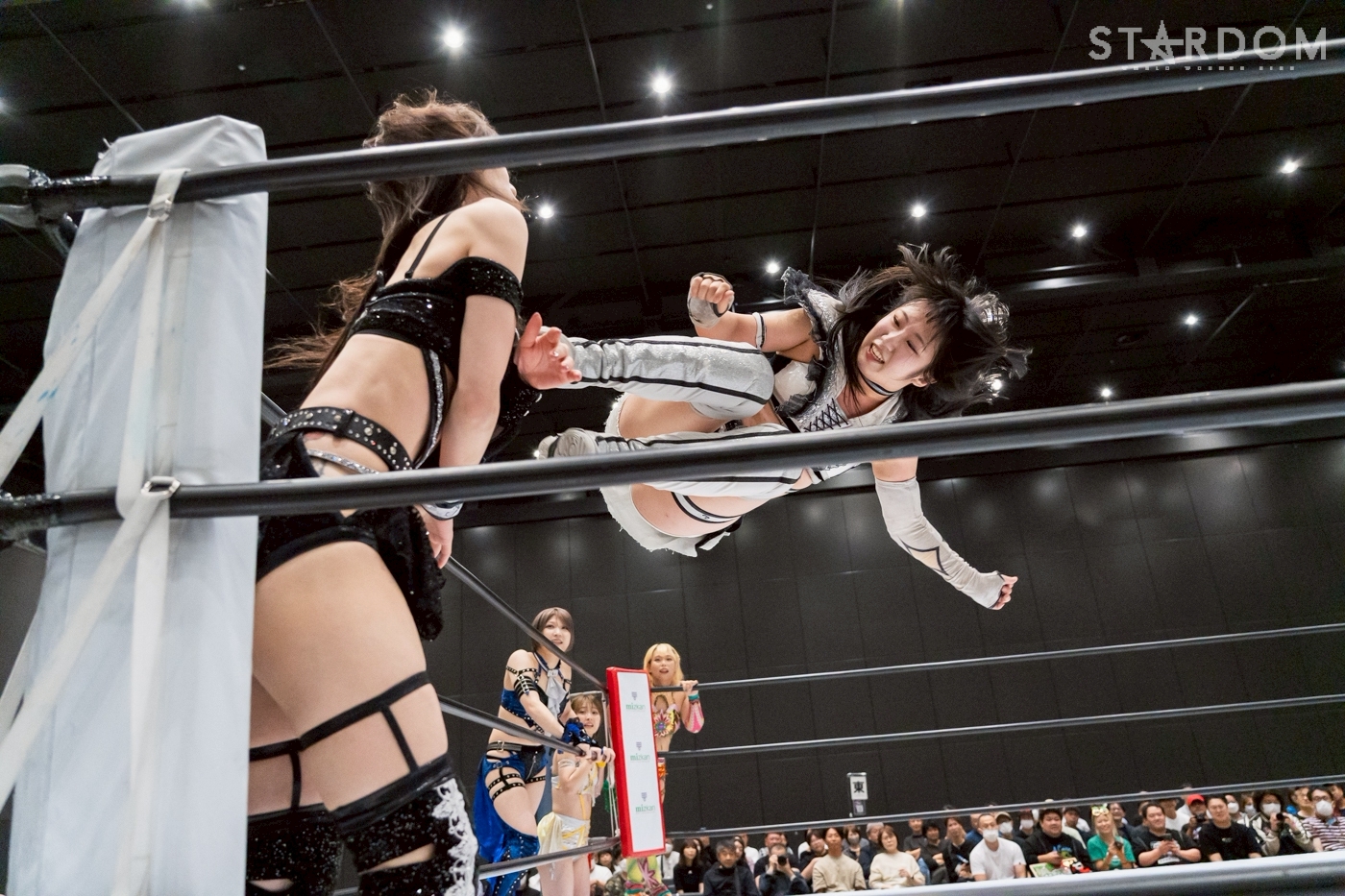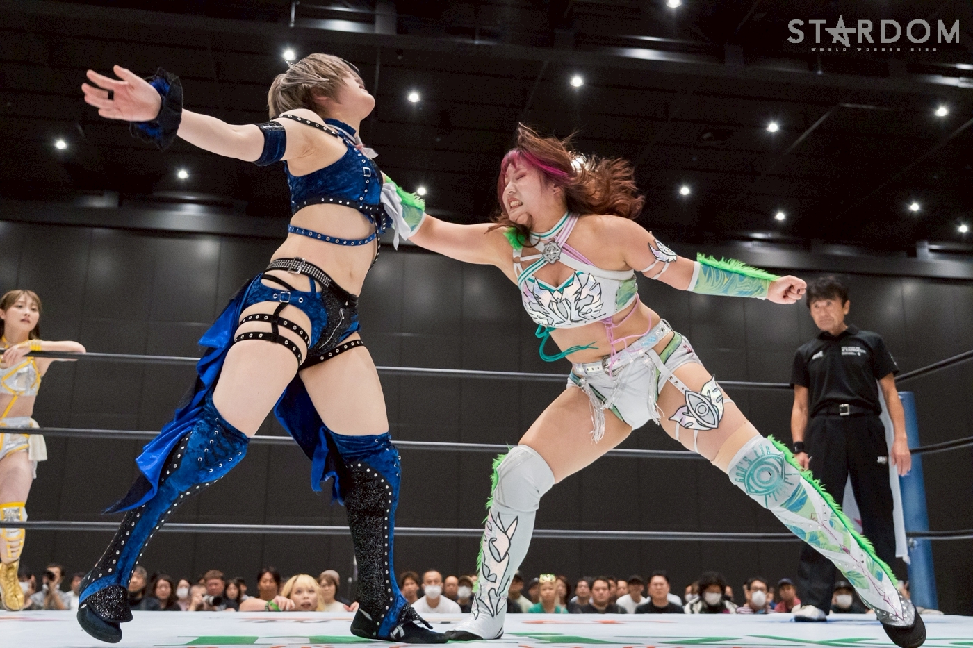 なつぽい&安納サオリ&水森由菜&玖麗さやか組のコズミックエンジェルズと鹿島沙希&壮麗亜美&レディ・C&虎龍清花組のゴッズアイが、8人タッグマッチで全面対決。地元凱旋試合を2日後に控える玖麗には、弾みをつけたい試合だが…。