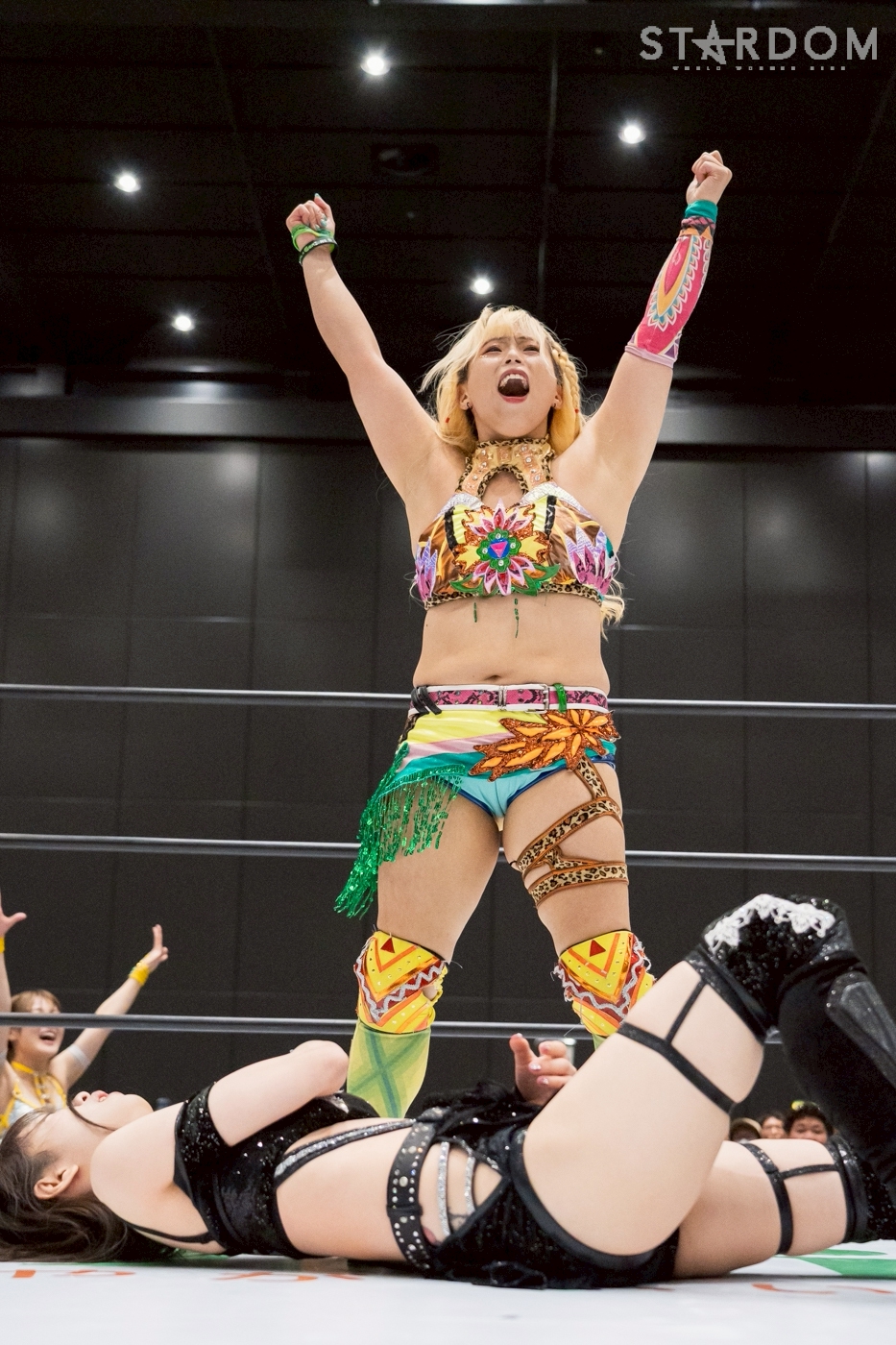 なつぽい「新幹線で一本です。明日も明後日も、スターダムぐいぐい盛り上がってますので、みなさん来てくれますよね? お待ちしております。さくらいないけど、コズエンだからあの締めやりたいと思って。私たちもアナタたちもデリシャース、ウ~~~ンマ! バイポーイ!」
