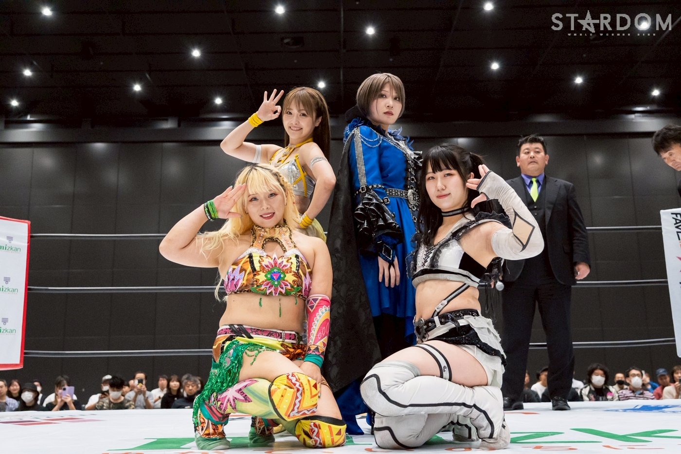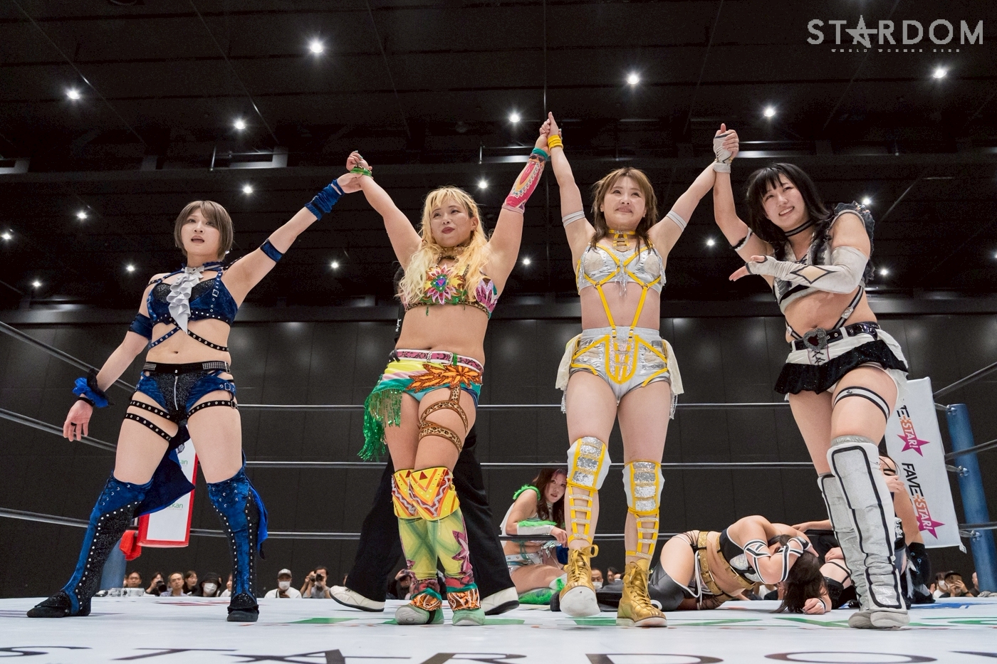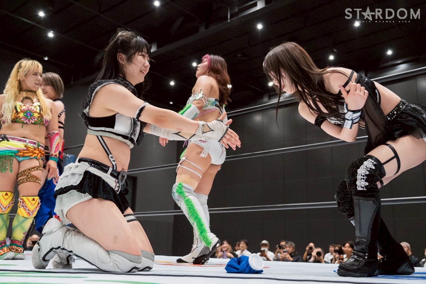 玖麗が「沙希さん、身の潔白を証明するために白いコスチュームできました。(鹿島とボジラが)まさかあんなたいへんなことになるとは。ごめんなさい」。握手を求める玖麗に鹿島が歩み寄ろうとする。すると虎龍が、「自分が生きます」と鹿島を制す。レディが「だまされるな」と鹿島を控えに回して試合がスタート。グラウンドの攻防で虎龍が腕十字狙い。玖麗が反転して押さえ込み、返されるとドロップキック。虎龍がカウンターのニーからコーナーに追い込み打撃の連打、サッカーボールキック、ワキ固め。壮麗が玖麗にボディースラム。レディも続いてボディースラムを玖麗に決める。壮麗がもう一度ボディースラム。玖麗が返すと、壮麗がロープに固定して逆水平の連打を浴びせていく。さらに後方からボディーアタック。鹿島が玖麗に「よくもだましてくれたな」と髪を束ねていく。「そういうことする人じゃないでしょ。私にそんなことする人じゃなかったでしょ」と訴える玖麗。鹿島が「私の髪の毛引っ張れ」と申し出る、と玖麗が猛然と髪をつかんで攻撃、ダイビングエルボーアタック。水森がレディと虎龍にダイビングショルダータックル、鹿島にはギロチンドロップ。鹿島がラリアットをかわすと、コルバタからビッグブーツ。壮麗が串刺しボディーアタックの連続も、水森が返す。ショルダーのぶつけ合いから水森のアームホイップを壮麗が阻止してショルダータックル。水森が立ち上がり、アームホイップからドロップキック。安納が壮麗にドロップキック、虎龍がカットに入ると、安納が壮麗へのインディアンデスロックから虎龍にフィッシャーマン。安納の突進を壮麗が担ぎあげてアルゼンチンバックブリーカー。コーナーに乗せて串刺しボディーアタック、ラリアット。安納が返すと、壮麗が逆水平連打。壮麗の突進に安納が延髄斬り。壮麗とレディが合体して安納をマットに叩きつける。レディが安納にビッグブーツ、ニードロップ、ジャイアントスイング10回転。10分経過。レディの突進を安納がかわし、なつぽいのアシストを得てドロップキック。なつぽいがレディにダイビングボディーアタック。レディが返すと、なつぽいが腕十字。しかし、壮麗がカットする。なつぽいはレディの腕にニーアタック。突進を壮麗が止めてゴッズアイが連係攻撃。レディのカバーをなつぽいが返す。レディは、なつぽいを起こしてバックを取る。なつぽいが切り返しバックキック、レディがニー。なつぽいがドロップキック連発、コーナーに上がると鹿島がカットして壮麗が担ぎあげる。レディがそこに突進も、なつぽいがかわして安納がミサイルキック。なつぽいの指示を受けて、玖麗が場外にプランチャ。レディが戻され、なつぽいがジャックナイフで押さえ込む。レディが返すと、なつぽいがネックブリーカー、フェアリアルギフト。しかし、レディがかわして前方に叩きつける。レディは狙いすましてビッグブーツも、安納のカットが間に合う。混戦からレディがなつぽいに丸め込まれる。なつぽいは丸め込みの連続もレディが反転して押さえ込む。レディになつぽいがトラースキック、ポイ捨てジャーマン、トラースキック。しかし、レディの肩が上がる。なつぽいがフェアリングリングから押さえ込むと3カウントが入った。