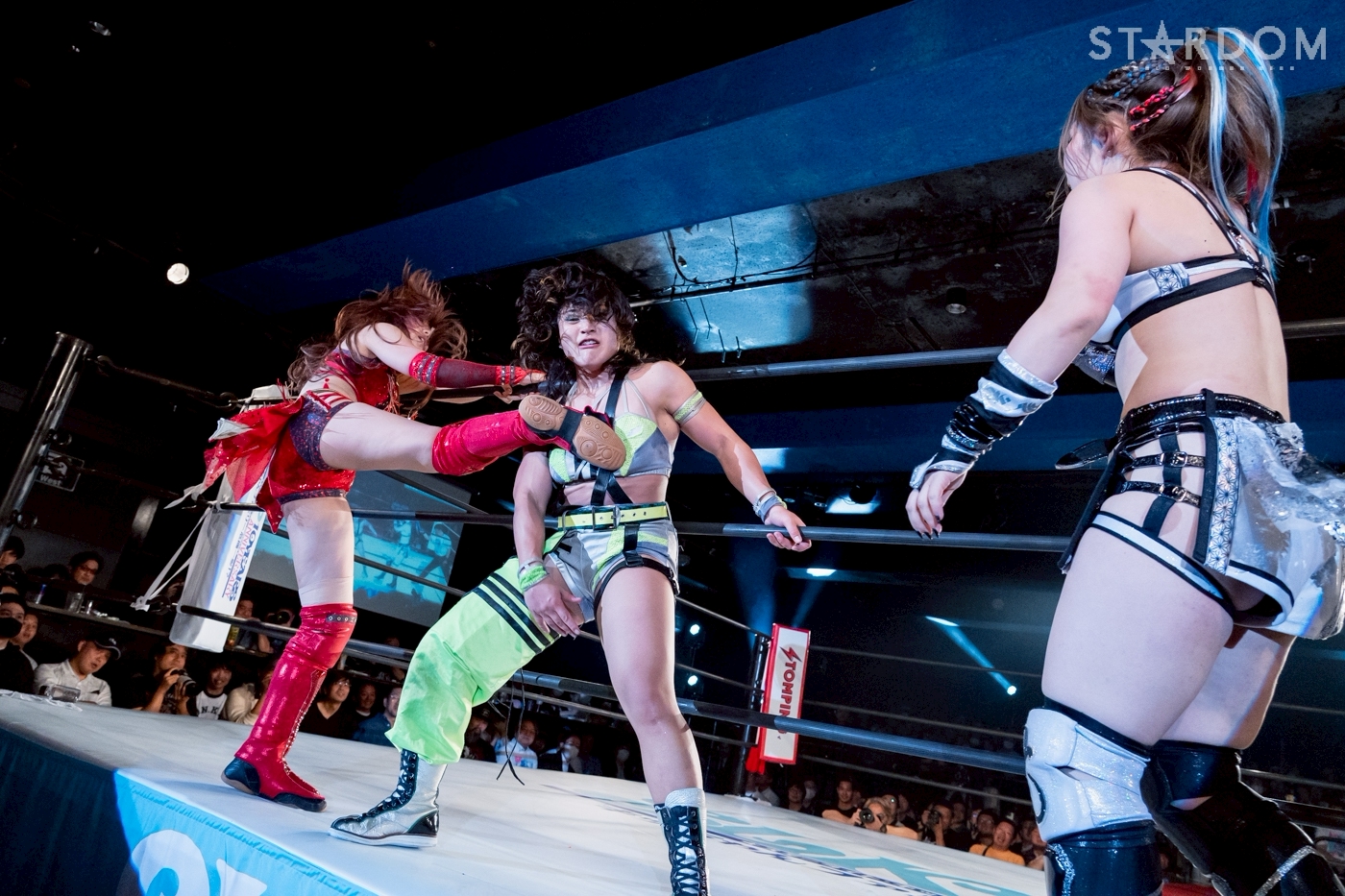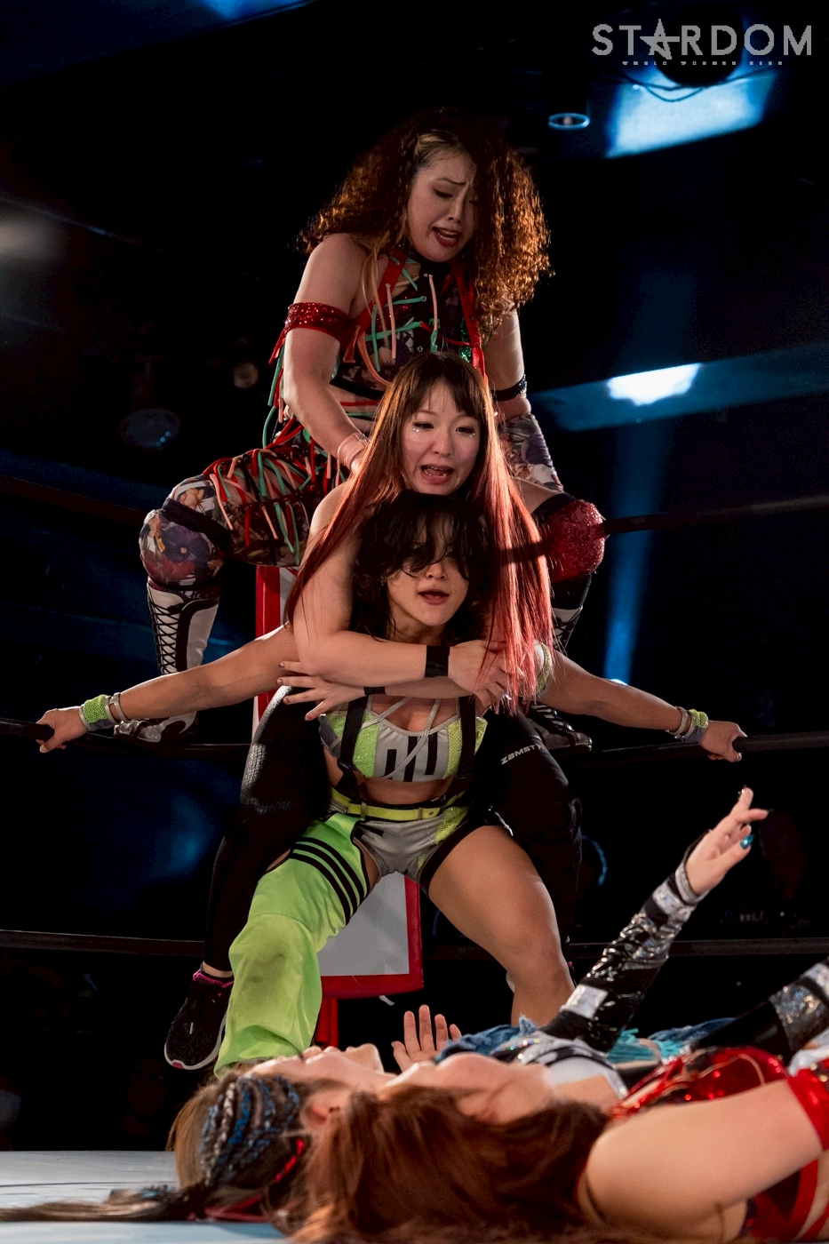 ⑦&⑧稲葉ともか、稲葉あずさ(24分55秒、ラリアットによるオーバー・ザ・トップロープ)