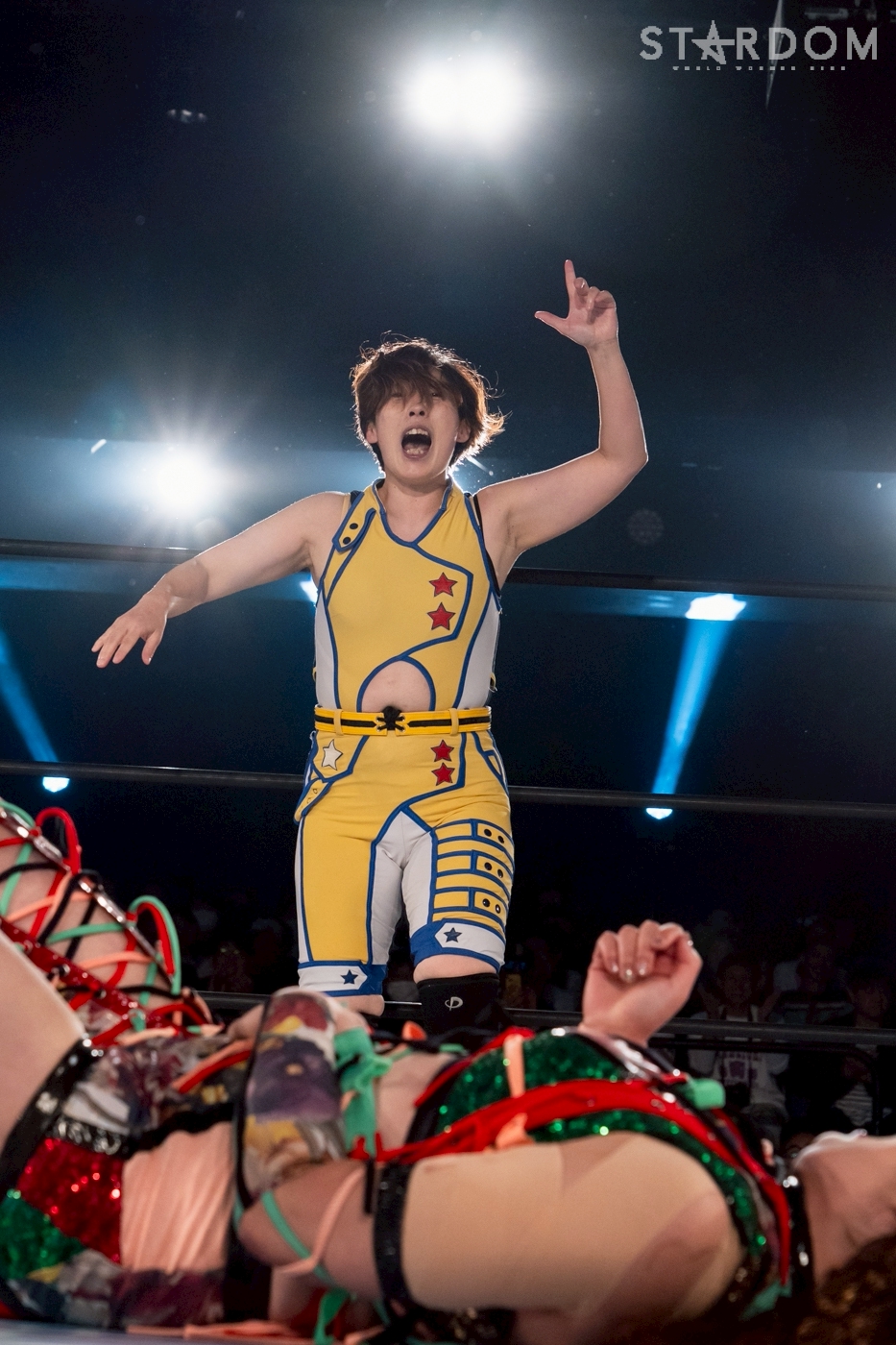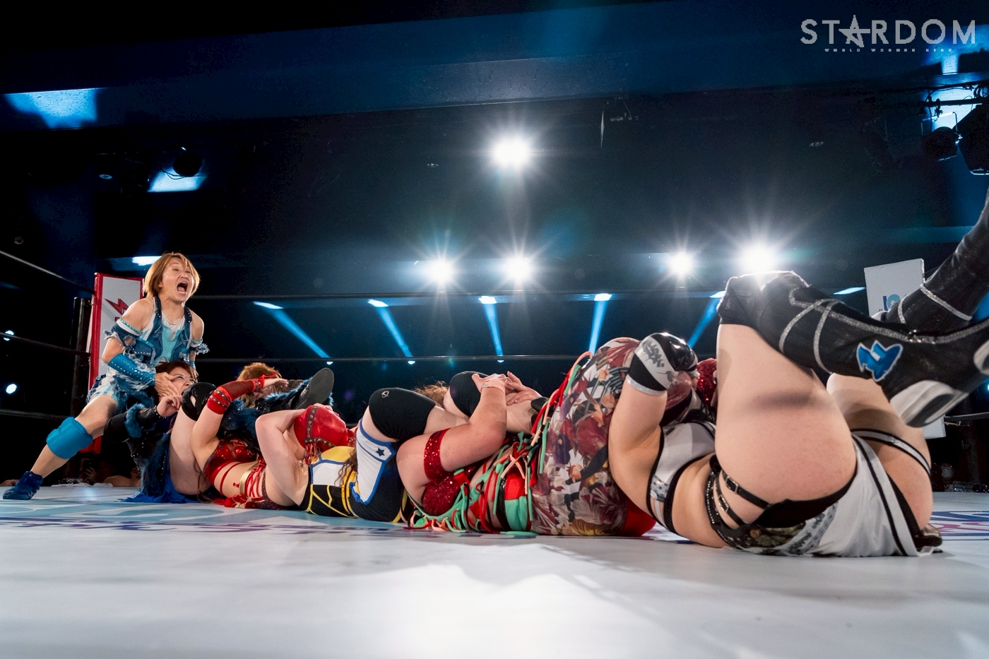 稲葉ともか。稲葉あずさの姉妹対決でスタート。3人目が飯田沙耶。打撃の応酬が展開されるなか、4人目に松本浩代で「帰ってきたぞ!」とリングイン。松本と飯田がショルダーをぶつけ合う。稲葉姉妹が合体を試みるが、松本が全員に次々とラリアット、コーナーに追い込み、まとめて串刺しボディーアタック。5人目にタニー・マウス。タニバットから2カウントで返されるが、「スリーだろ!」と主張する。松本とタニーが合体してタニーが串刺しヘッドバット。6人目に田村欣子。タムラ様はコーナーに上がってかつてのパフォ―マンス、タニーがタムラ様を丸め込む。返されるとタニーは飯田のせいにする。飯田と田村が打撃の応酬。飯田が逆水平の連打を浴びせる。7人目がDJニラ。タニーがともかにパロ・スペシャル。松本があずさにアルゼンチン、田村が飯田にコブラツイスト。ニラが傘を持ち込み、なぜか切腹してダウン。タニーが押さえ込む。飯田がニラを捕まえると数珠繋ぎ状態へ。8人目が中西百重。中西はニラを皮切りに次々とドロップキック。松本がともかに首4の字固め。これもまた数珠つなぎになり、飯田がまとめて逆エビ固め。9人目にジャングル叫女。飯田が喜んで飛びつくと叫女は転落、なんとかこらえてリングに戻る。ニラが「次は私のターンですね。いまからオマエらの攻撃をすべてよけてやる。一発でもオレにヒットさせたらオマエらの社会的勝利は目前だ」とアピール。そこに叫女を皮切りに次々と串刺し攻撃。ニラがリングを下りて「ほっといてくれよ」。ニラはリング下に潜り込む。15分経過。戻されたニラはキッドのマスクとおむつ姿。ロケットパンチを見舞うと、「今日はオマエらを蹂躙したから」と自ら退場。中西と田村がエルボーの応酬、。タニーが加わると中西とあずさがダブルで丸め込む。タムラが叫女にエースクラッシャー。叫女が返すと、タニーと田村がやり合う。タムラがエルボーを叩き込み。まとめてカバーでタニーが退場。タムラも押さえ込まれて退場に。チームジャングルってるの叫女、松本、飯田が合体して串刺し攻撃。3人でまとめてボディープレス。叫女が中西にパワーボム狙いも丸め込まれて退場。中西が松本に飛びつくが逆エビ固めに捕らえられる。飯田がカットも松本がエルボーで吹っ飛ばす。松本は稲葉姉妹にまとめてバックドロップ。コーナーに上がると飯田がカット。松本が飯田を投げてエプロンでやり合う。中西がドロップキックで松本を退場させる。飯田が中西を担ぎあげるが丸め込まれる。姉妹が丸め込みの応酬にもっていくが、中西がこらえる。姉妹がミドルキックを中西と飯田に見舞っていく。中西、飯田とも返すと、姉妹の串刺し攻撃、中西はかわすが飯田にヒットする。中西があずさのジャーマンを食らい飯田がカバーに加わる。中西が退場に。残るは飯田と稲葉姉妹。姉妹がミドルの競演、ともかがあずさにハイキックから稲葉落とし狙い。あずさが切り返してムーンサルトを予告。ともかが家T橋コーナーから落とす。あずさがロープを引いて姉妹がエプロンでやり合う。飯田が突進もエプロンに出される。姉妹がミドルキックの競演も同士討ち、飯田がラリアットで2人を落として優勝した。