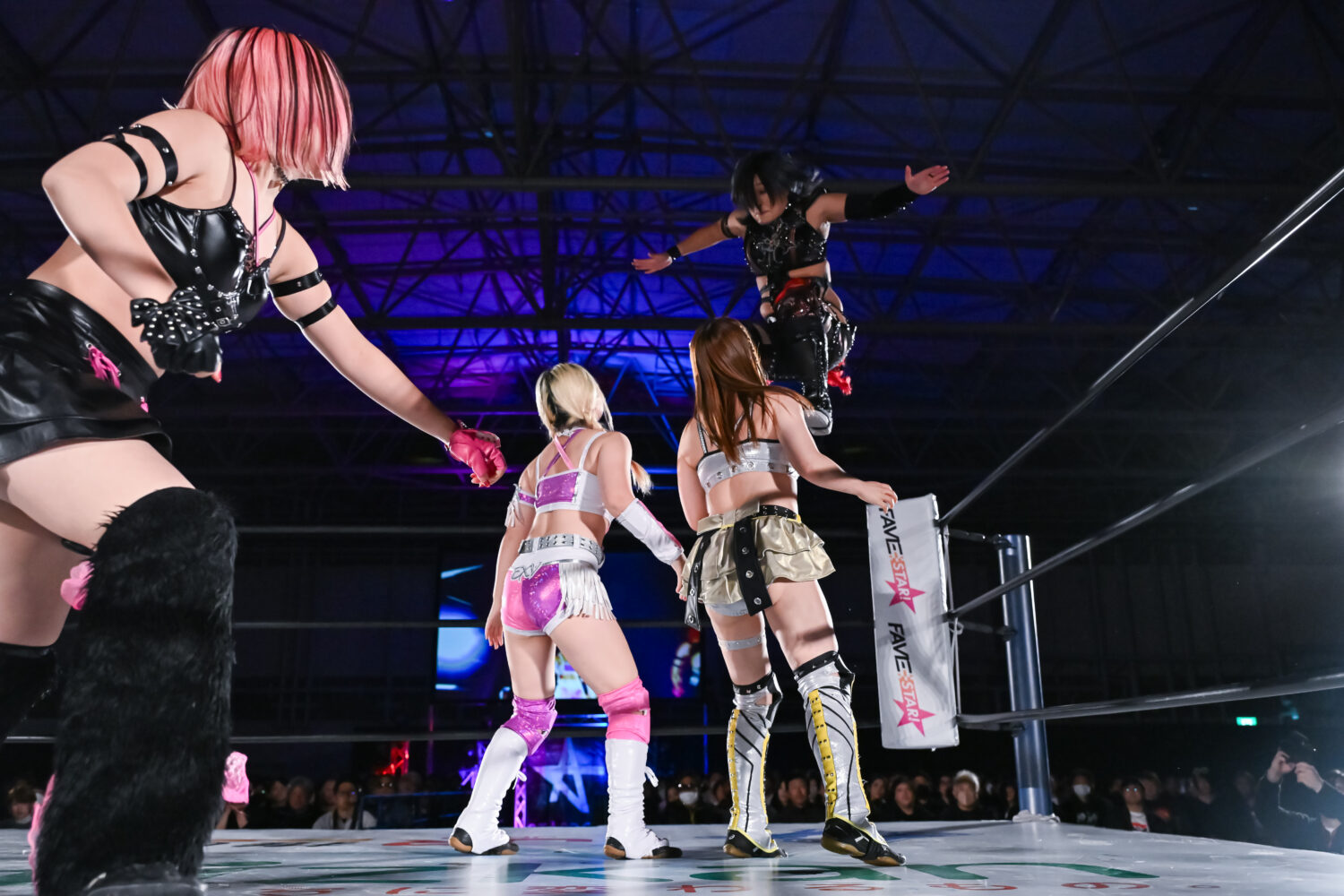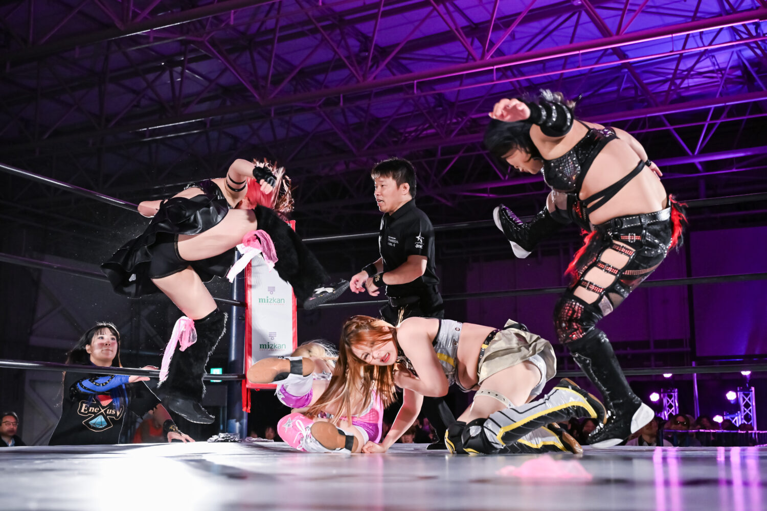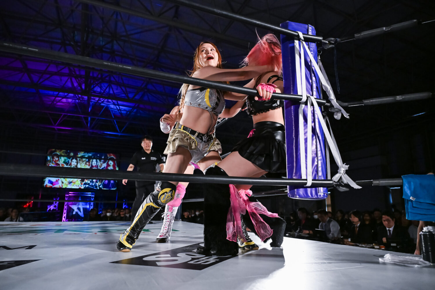 ゴング前に月山と梨杏が奇襲を仕掛ける。しかし、クローズラインを吏南がかわして小波がミサイルキック。月山の地獄突きを吏南がかわしてビッグブーツ。吏南の突進を月山が丸め込む。吏南はピンクデビルも月山がカバーを反転。吏南が返せず、月山が勝利した、試合後、怒りの吏南がレフェリーを場外に投げ捨てた。