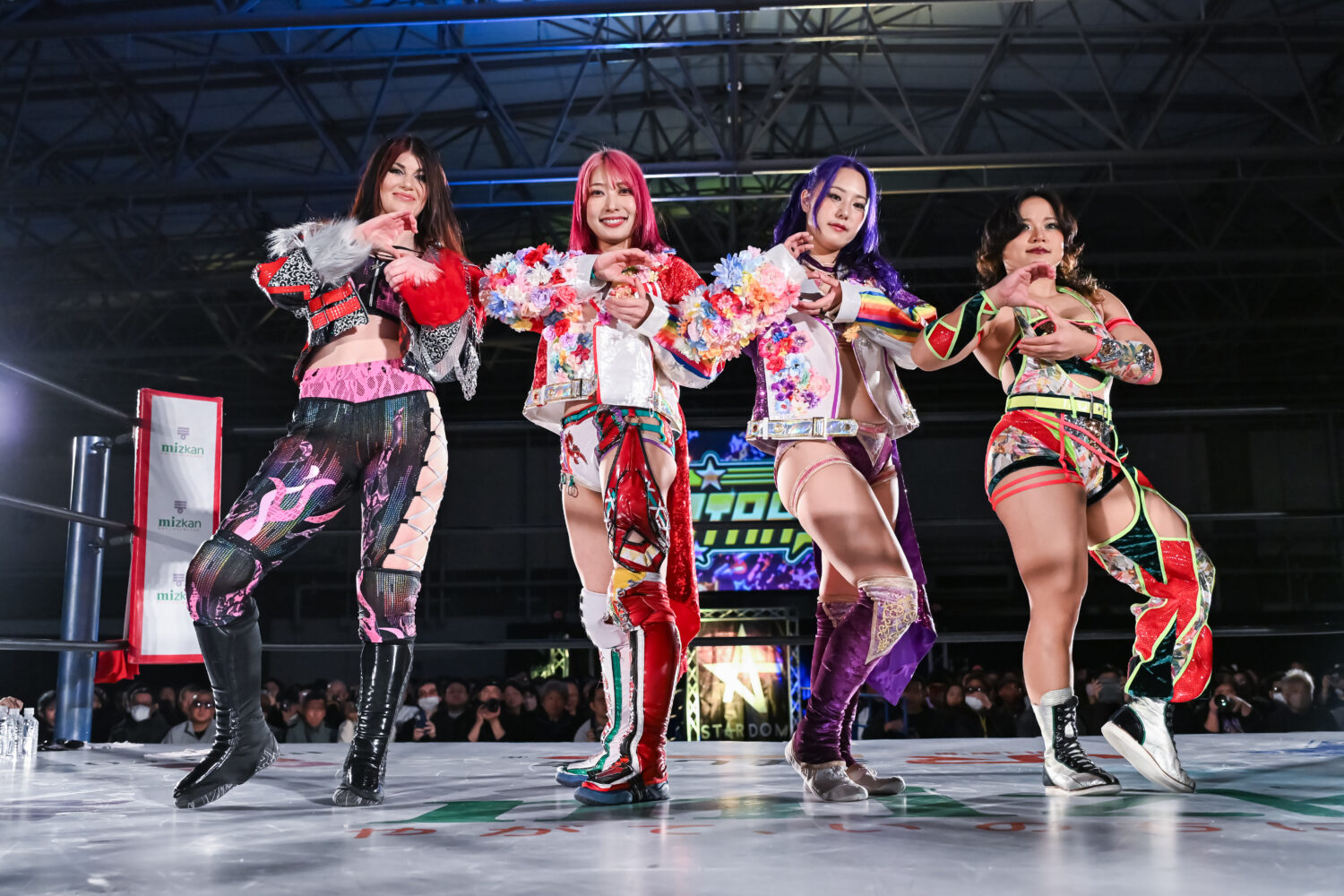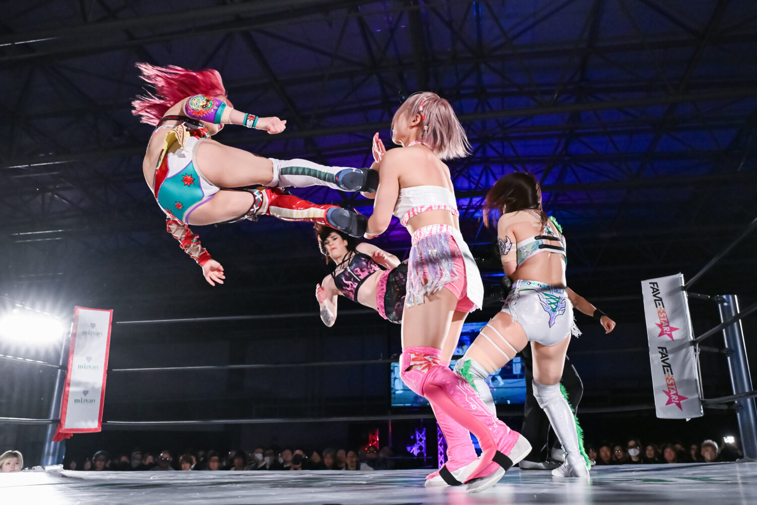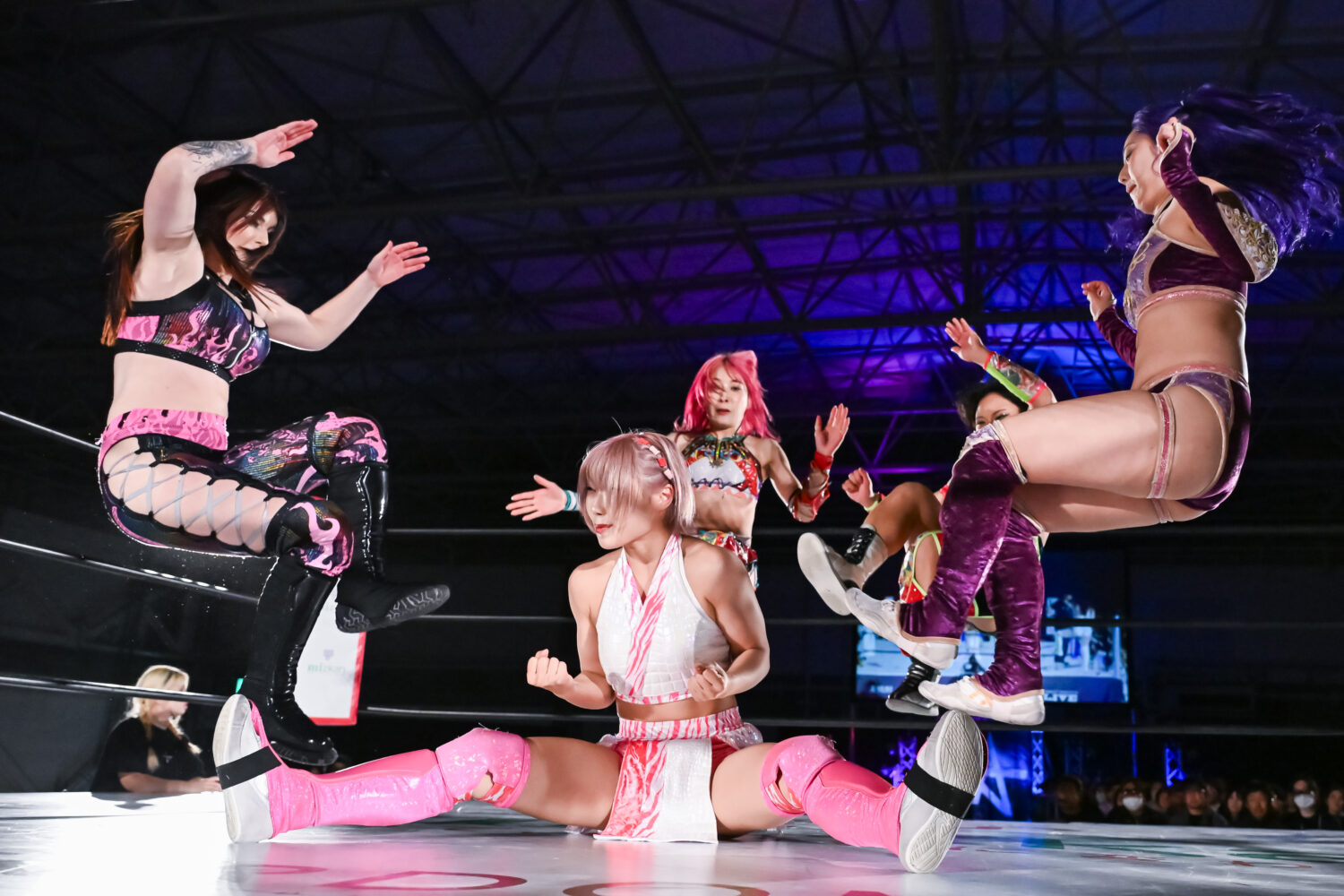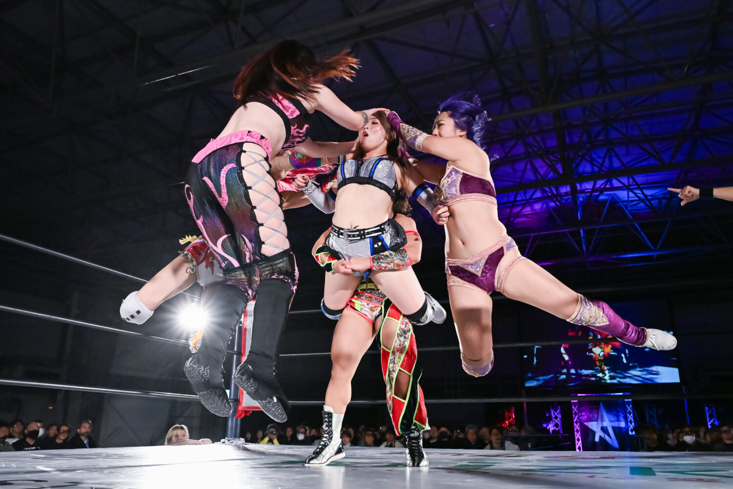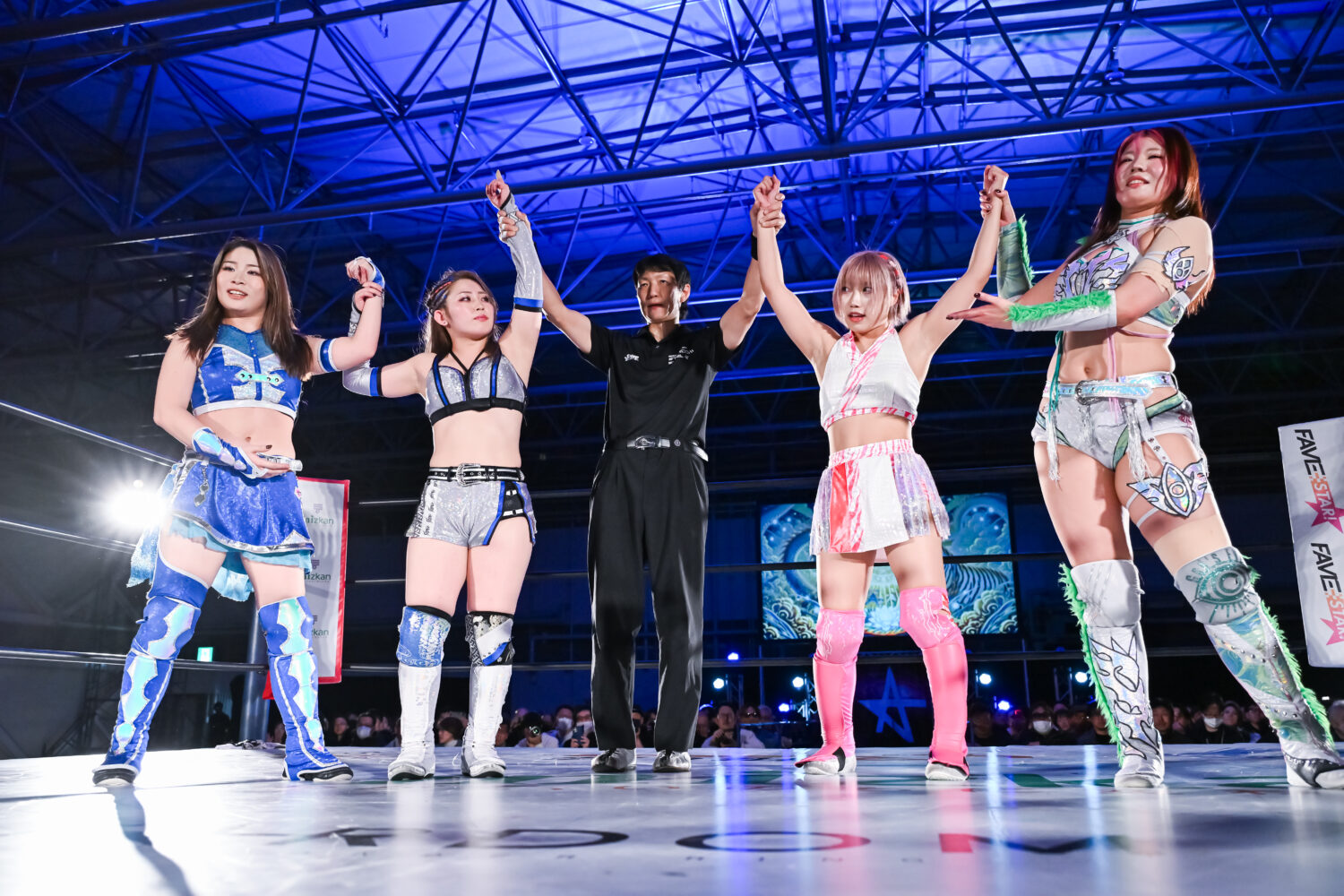 負傷から復帰のゆりあが先発に名乗り、妃南と対峙する。ロックアップで妃南が押し込み、ブレイク。最後妃南が押し込むと、ゆりあが反転してエルボー連打。妃南がロープに振ってエルボー、滞空時間を取ってボディースラム。虎龍が入るとSTARSがいっせいに連係攻撃、4人でドロップキック。飯田が虎龍の背中に逆水平。虎龍がミドルキック連打、飯田が挑発して受けて立つ。飯田がブロックして虎龍を倒す。虎龍がソバットからミドルキック。壮麗が飯田へ串刺しボディーアタック。壮麗と妃南が交互に串刺し攻撃を見舞っていく。壮麗のカバーを飯田が返す。飯田が逆水平、壮麗もやり返す。飯田が壮麗にブレーンバスターの構え。壮麗が切り返してダブルチョップ、飯田がジャンピングチョップ。ゆりあがともかにビッグブーツ連打。ともかが二段蹴りも。ゆりあが返す。向後がともかにドロップキック、飯田とビーが連係攻撃、STARSが合体フェースクラッシャーをともかに決める。ともかが首4の字固めを反転して額をマットに叩きつけていく。ともかがダウン状態。壮麗と妃南がアシストし、虎龍とともかでミドルの挟み撃ち。ともかはゆりあを前方に叩きつけるが、ビーにカットされる。向後がスワンダイブ式ミサイルキック、飯田が壮麗にラリアット。壮麗もやり返す。ゆりあがともかにビッグブーツ、スタンディングギロチン。ともかが返すと、ゆりあにフェースロック。ゆりあがギブアップし、ともかが勝利した。リング上で壮麗と飯田が睨み合い。小波と吏南が入り暴行。小波が黒ならぬ白スプレーを顔面に吹き付けた。