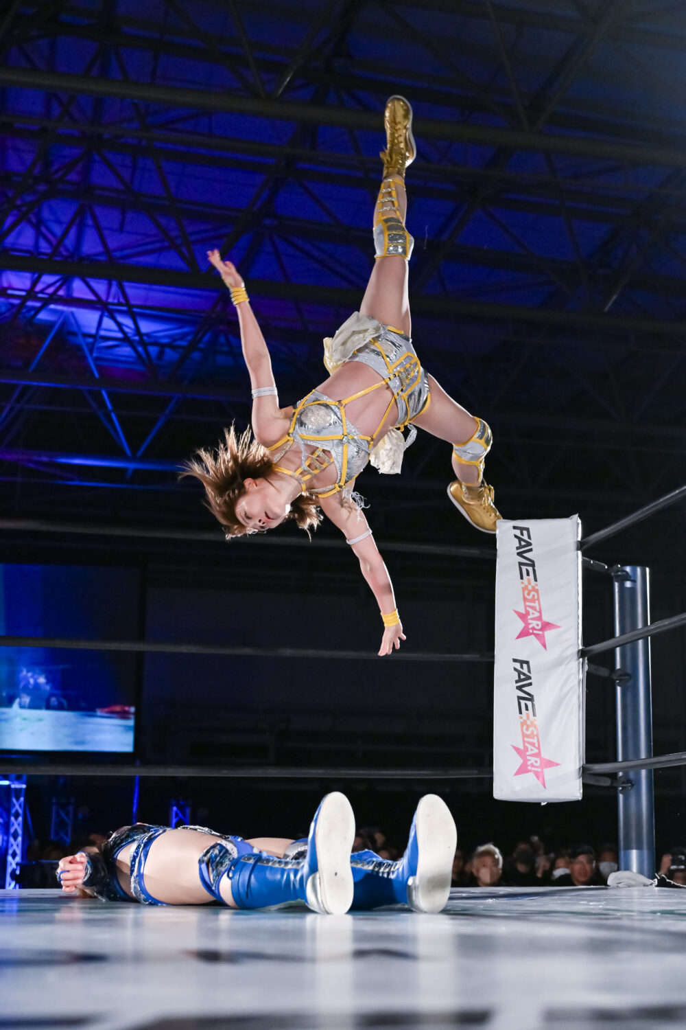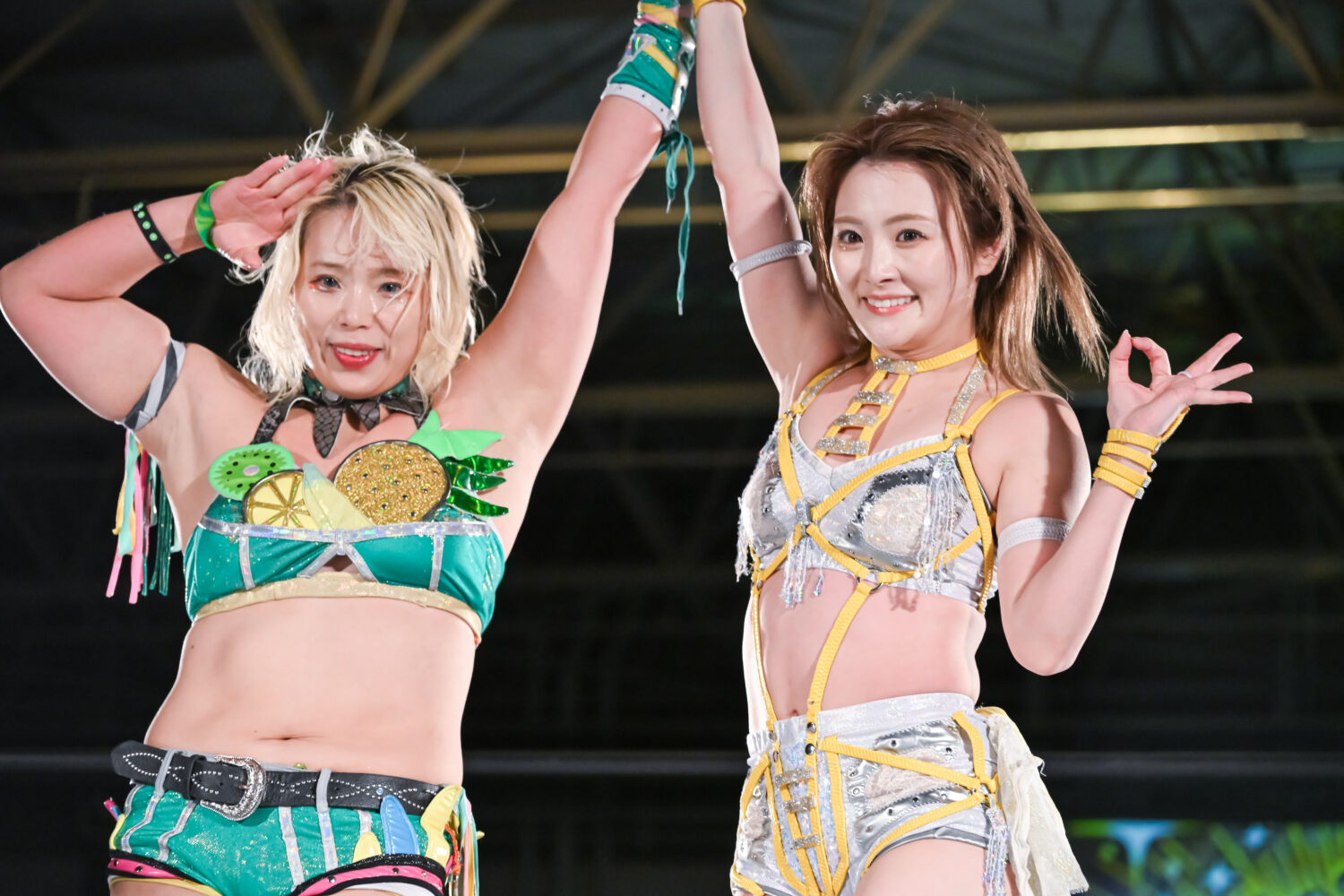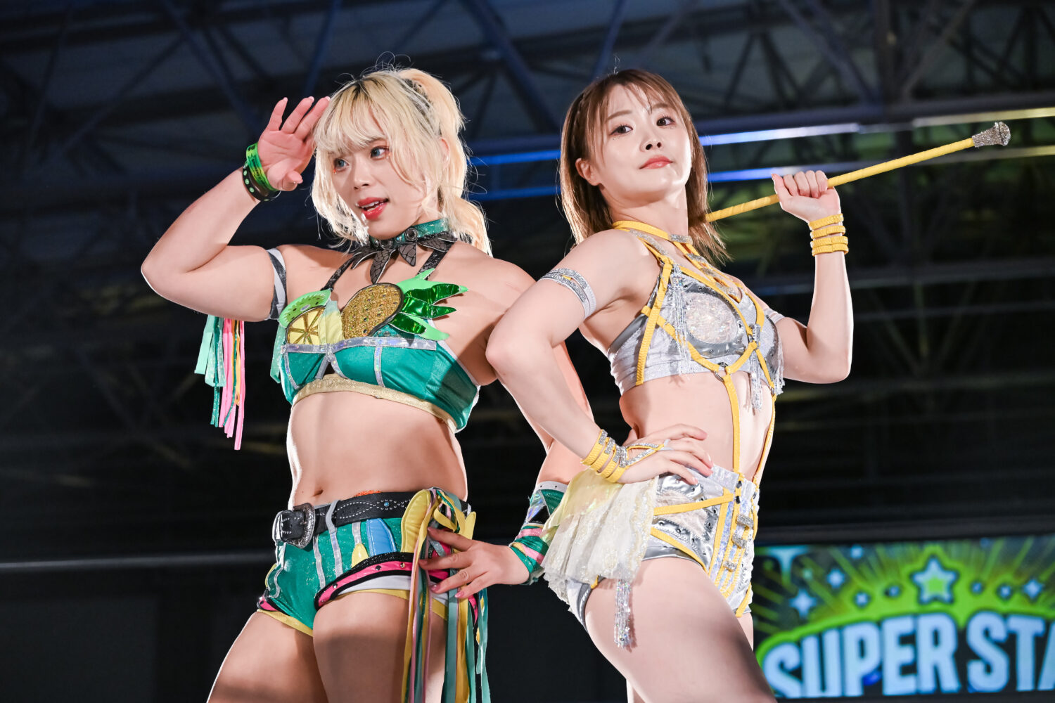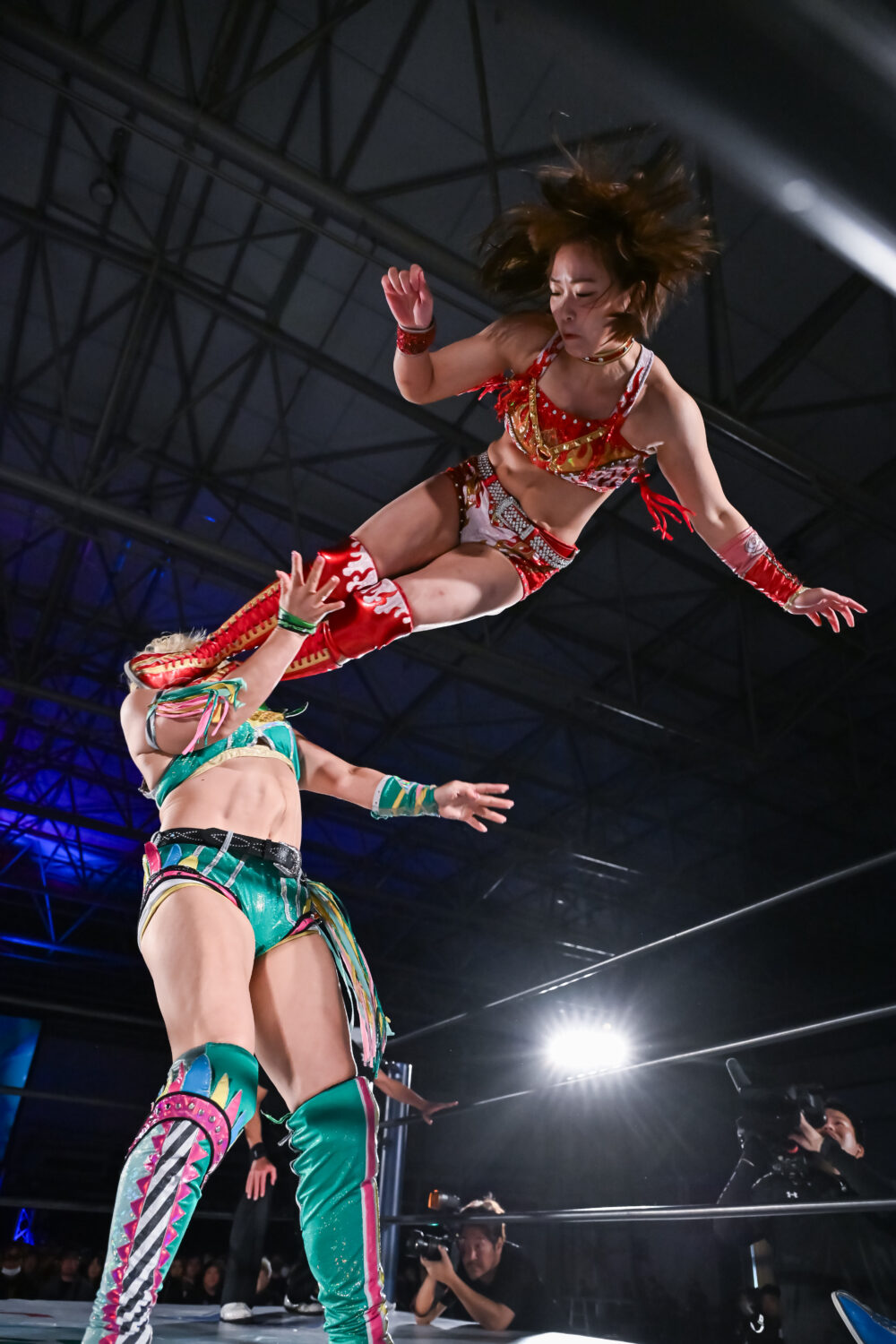 叶が手を上げるとSareeeが抑えてなつぽいと睨み合う。水森がSareeeを指名も、叶がドロップキック。丸め込みの応酬から、叶のドロップキックをかわして水森がドロップキックを決める。水森は控えのSareeeにエルボー。なつぽいが控えのSareeeに向かっていく。Sareeeはリングを下りる。なつぽいが叶にドロップキック。水森が叶にボディースラム、片足でカバーし、返されるとギロチン3連打。叶が返してエルボー連打。水森がコーナーに追い込むが、叶が反転してボディーアタック。Sareeeが水森にミサイルキック、フィッシャーマン。水森が返すと、Sareeeのダイビングフットスタンプをかわしてエルボー。Sareeeもエルボーをやり返す。エルボーの応酬から水森がラリアット連打。至近距離からのラリアットも連打すると、スライディングラリアットへ。なつぽいがタッチを申し出てSareeeへダイビングボディーアタック、ワキ固め、右腕を蹴り上げる。ジャーマン狙いをこらえられたなつぽいがエルボー、バックキック、ネックブリーカー。Sareeeが返すと、なつぽいがコーナーへ。叶が止めてSareeeが雪崩式ブレーンバスター。しかし、なつぽいが返してみせる。叶がなつぽいへミサイルキック。なつぽいがトラースキックも、Sareeeがエプロンで妨害し、ドロップキック。Sareeeと叶がダブルでコーナーへ。水森が止めて、ダブルでデッドリードライブ。なつぽいがドロップキックからフィニッシュを宣言し叶のバックを取る。叶が切り返すがトラースキックを食らう。なつぽいがフィニッシュを宣言してフェアリアルギフト。叶がかわしてSareeeがフットスタンプ。なつぽいの丸め込みを叶が返す。Sareeeと叶がダブルでダイビングフットスタンプ、叶がダイビングサマーソルトドロップ。なつぽいが返すと、ポイ捨てジャーマン、水森がラリアット、なつぽいがジャックナイフ。返した叶になつぽいはフィニッシュを宣言してフェアリアルギフトを決める。しかし、Sareeeのカットが間に合う。水森がSareeeにラリアット、なつぽいがフェアリアルリングで叶をフォールした。