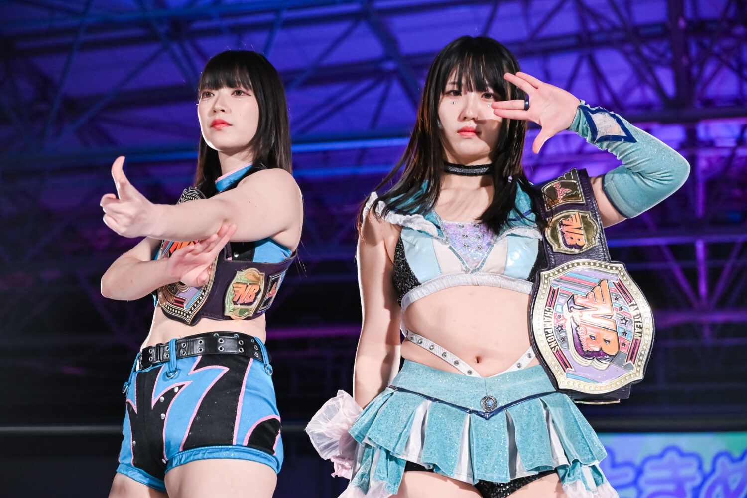 さくら「ありがとう、ずっと玖麗とはライバルでコズエンにどっちが入るか、入れないか。先に入るかってずっとずっとそうやって競い合って、高め合ってきて、NEW BLOODではじめてこのお揃いのベルトを巻いて、いまNEW BLOODだけじゃなくて、本戦でもこうやってさくららの2人が優勝という結果を残したことが、すごくすごくうれしいです。私たち、まだまだイケる、絶対にゴッデスベルト取ろう!」