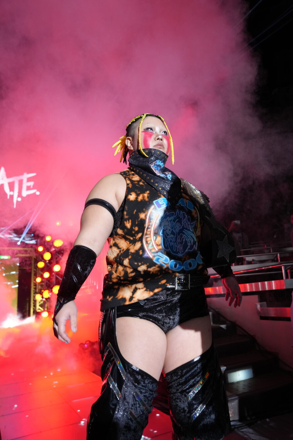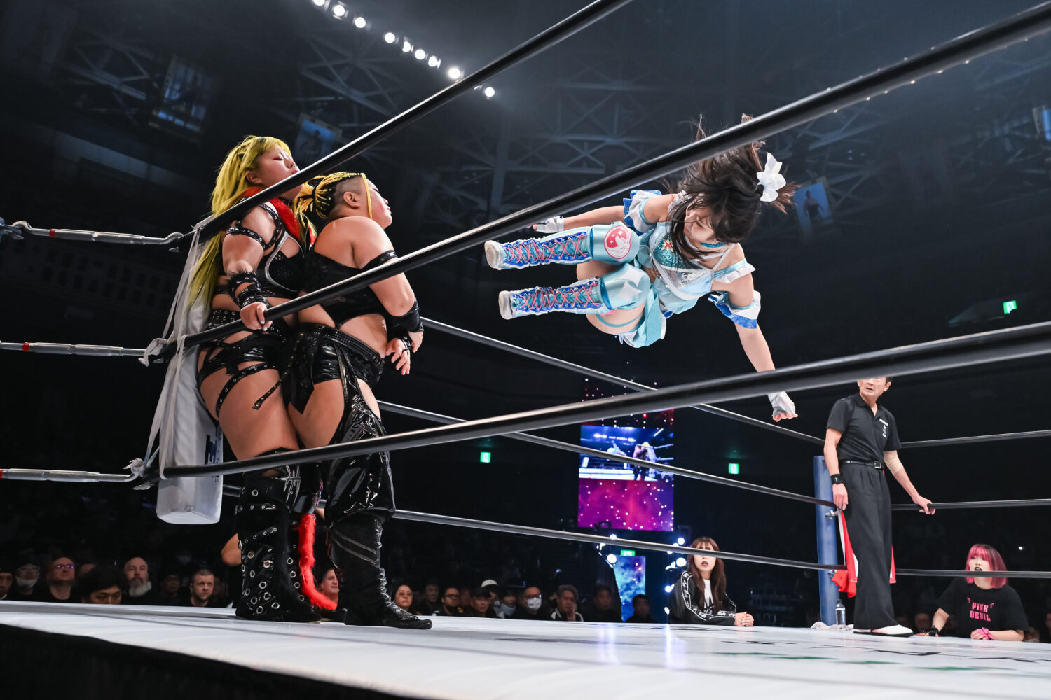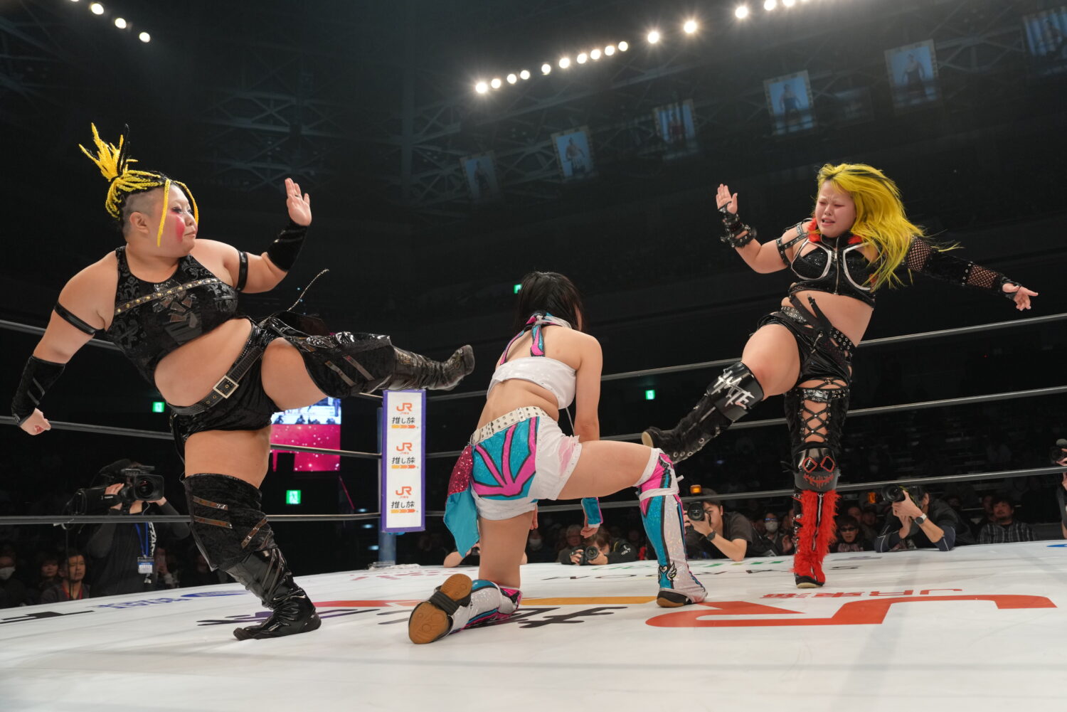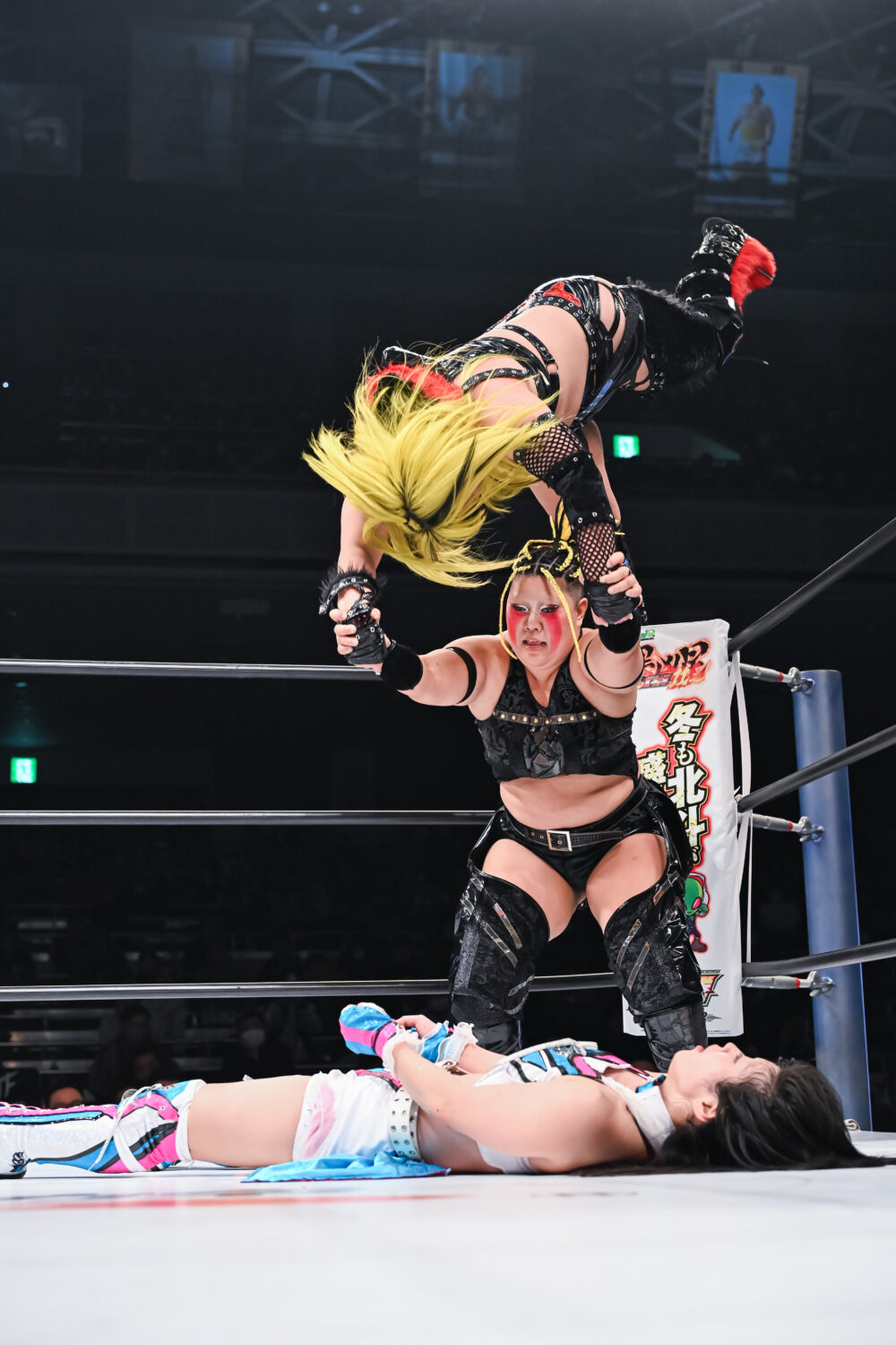 王者組がクロスボディーの競演から場外戦にもっていく。さくらをリングに戻してナツコがヒップドロップ。琉悪夏がさくらに串刺しボディーアタック。さくらが返してミドルキック連打。さくらがドロップキックを連打。ナツコと琉悪夏が連係でさくらを攻撃。ナツコがさくらに逆水平連打、串刺しラリアット、バックフリップ。玖麗が乱入してドロップキック、さくらがミドルキック。玖麗が向かっていくが、琉悪夏が阻止。玖麗が切り返し、まとめての串刺しドロップキックを連発。ナツコが返すと玖麗がスリーパーでギブアップを迫る。玖麗がコーナーに上がると、ナツコが雪崩式水車落とし、ショルダータックル。キャノンボール狙いを玖麗がスピア。しかしナツコが受け止める。玖麗はジャックナイフも、ナツコが反転してセントーン。ナツコがラリアットを決めるが2カウント。琉悪夏が串刺しラリアット、ショルダータックル、セントーン。玖麗が返すと、琉悪夏がエルボー。さくらが乱入してダブルのドロップキック、玖麗がエルボードロップ。10分経過。さくらが琉悪夏へミサイルキック、串刺しニーアタック、三角絞め。ナツコが髪を引いてさくらを走らせず。ナツコと琉悪夏が合体ボディープレス。さくらが返すと、琉悪夏はフェースロック。さくらがエスケープすると、玖麗がクロスボディー。返したさくらに琉悪夏がフェイントをかけてエルボー。玖麗がドロップキック、さくらと合体で串刺し攻撃、さくらがミドルキック。ナツコがまとめてラリアット。場外で同士討ちを誘い、玖麗、さくらが場外に飛ぶ。さくらと玖麗が打撃で合体、さくらが琉悪夏に三角絞め。琉悪夏が持ち上げようとするが、さくらが絞め続ける。琉悪夏がエスケープすると、さくらが琉悪夏にハイキック、回し蹴り。桜花爛漫を琉悪夏がかわすと玖麗がミサイルキック、さくらがハイキック。カットに来たナツコのセントーンがかわされて琉悪夏に誤爆。さくらがダイビングニーアタック。琉悪夏が返すと、さくらがバックを取る。琉悪夏が切り返すと、玖麗のスピアがかわされて誤爆。ナツコと琉悪夏がサンドイッチ式でキックをぶち込む。琉悪夏がネックハンギングボム。さくらが返すと、ナツコと琉悪夏がファンタスティックフリップを連発。しかし、玖麗がカットする。ナツコが玖麗にデスバレー。琉悪夏がさくらへ、ナツコが玖麗へダイビングボディープレスで競演。琉悪夏がジャーマン、ダルマ式狙い。さくらが切り返して丸め込むが、ナツコがカット。さくらの突進に琉悪夏がラリアット、さくらの蹴りをかわして琉悪夏がジャーマン、ダルマ式ジャーマン。さくらが返せず琉悪夏が勝利した。