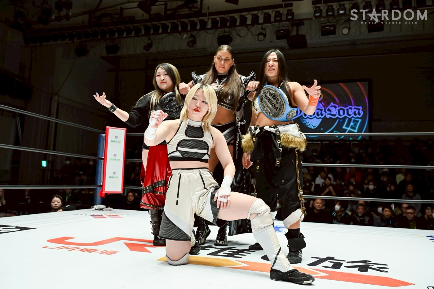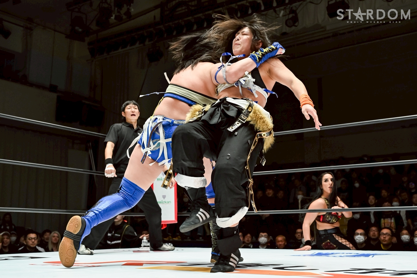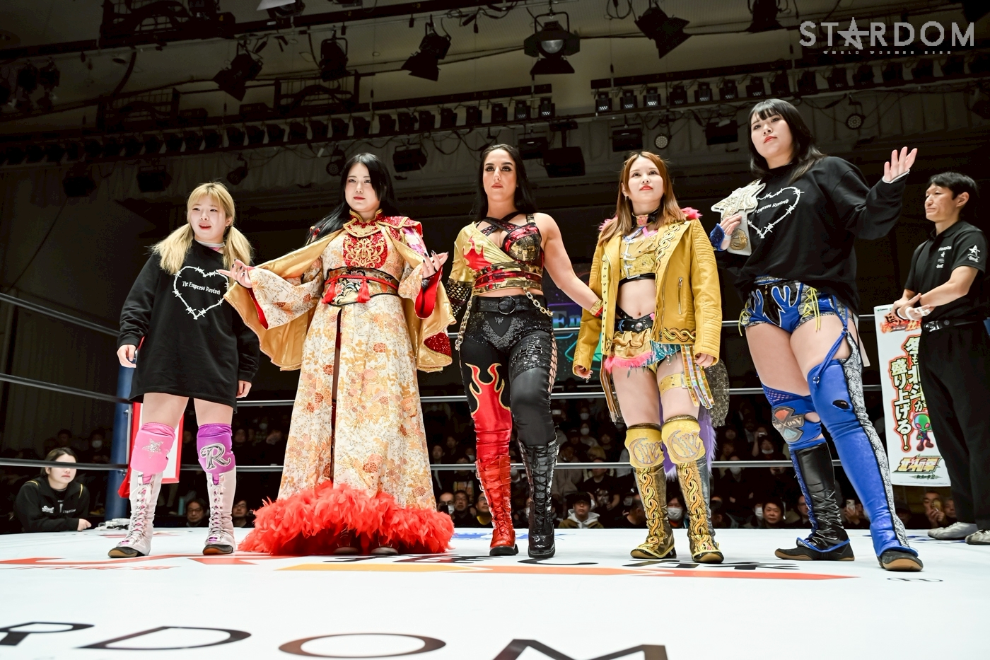 Antes de que sonara la campana, los dos equipos se enfrentaron. El campo de batalla se trasladó fuera del ring, donde Yamashita y Aoki ayudaron a Akira con placajes de hombro, y Akira inmovilizó a Rinko. Aoki le aplicó un latigazo de pelo a Rinko y jugó a la pelota con Yamashita, mientras que Bojira le asestó un golpe al cuerpo. Aoki golpeó a Rinko con un codazo y un doble rodillazo. Rinko le devolvió el favor con una ráfaga de codazos. Aoki la derribó de un golpe, pero Rinko se levantó y continuó con una ráfaga de codazos, un stunner y una dropkick. Hanako tacleó a Aoki con el hombro y la sacudió con un Argentine. Yamashita golpeó a Gina con una ráfaga de chops. Gina mordió el anzuelo y la derribó de un golpe. Gina y Hanako se combinaron para un doble placaje de hombro. Hanako se preparó para un rompecerebros sobre Aoki. Hanako aguanta, pero la derriba con una patada de hombro. Yamashita se apresura a ayudar, y Aoki estrella a Hanako contra la lona y conecta un doble rodillazo. Bozilla golpea a Hanako con un crossbody y patadas al hombro. Hanako se defiende, pero Bozilla contraataca. Se agarran del pelo, y Bozilla la levanta y la estrella contra el costado. Hanako contraataca, y Bozilla va a la esquina. Hanako la alcanza y conecta un back drop y una patada frontal. Bozilla contraataca, atrapa a Hanako y conecta un powerbomb. Yamashita esquiva a Tsukiyama y va por Maika, que espera entre bastidores. Tsukiyama carga, pero Yamashita conecta una patada frontal. Tsukiyama contraataca y conecta múltiples codazos de montaje, y Yamashita se da la vuelta y contraataca. Tsukiyama conecta múltiples codazos, y Yamashita la derriba con una patada frontal y la levanta. Tsukiyama contraataca con una patada voladora y un Gokuraku Don. Maika interviene y golpea a Yamashita con un lazo de empuje, un lanzamiento de hombro y otro lazo. Maika conecta un rodillazo y la lleva a la esquina. Aoki salva a Yamashita con un hombro a Maika. MVL ataca con una estocada, y Bozilla y Yamashita hacen un doble rompe cerebros a Maika. Han pasado 10 minutos. Yamashita va a la esquina, pero Hanako y otros la detienen, y Maika se prepara para un rompe cerebros de avalancha. Sin embargo, MVL los derriba juntos. Después de un cuerpo a cuerpo que deja fuera del ring a Bozilla, Maika y Yamashita intercambian codazos en el ring. Yamashita esquiva un codazo y luego golpea a Maika con un lazo. Yamashita, Aoki y Akira realizan patadas de empuje juntos. Yamashita golpea a Maika con un canadiense. Maika contraataca y se golpea con lariats, y Yamashita la detiene y llama a Bozilla. Sin embargo, Bozilla está debajo del ring. Aoki regresa y conecta un lariat, pero falla. Hanako conecta un lariat sobre Yamashita. Maika conecta un lariat rodante. Pero Aoki logra detenerla a tiempo. Maika aplica un Michidora sobre Yamashita. Tras la cuenta de tres, Maika cubre a Yamashita