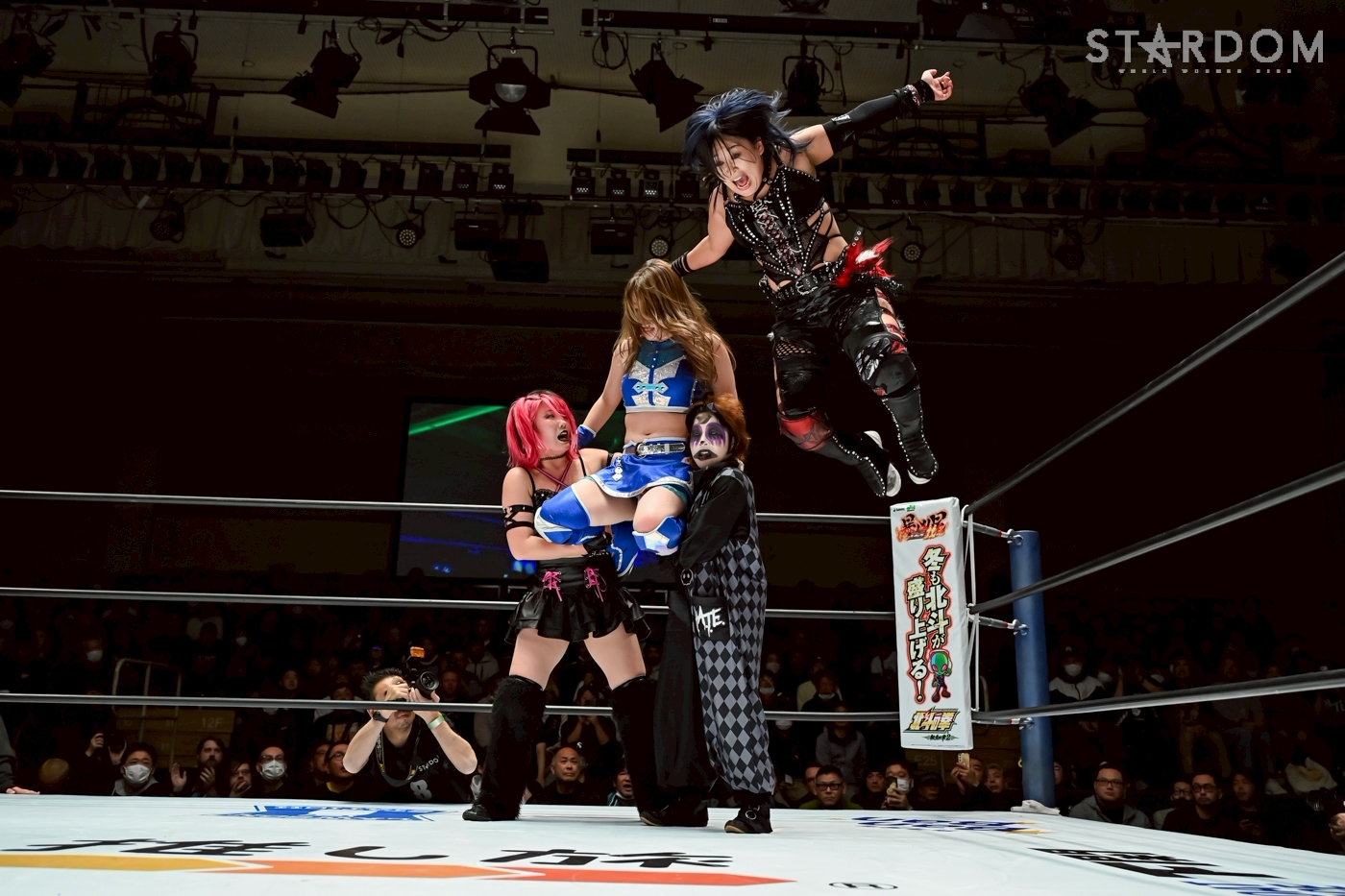 La campana sonó con Rina y Tomoka como titulares. Tomoka esquivó una llave a la cabeza y una doble patada, y escapó de las tijeras a la cabeza de Rina. Konami y Hina intercambiaron codazos. Hina conectó una serie de puñetazos y un rompecuellos. Konami esquivó una estocada y llevó la pelea al exterior. Rina la lanzó contra el público. Hina fue devuelta, y Konami la inmovilizó contra las cuerdas y la atacó con un ODIO. Konami siguió con una patada de balón de fútbol y la cubrió con una pierna. Rina golpeó a Hina con un látigo, y luego atacó a la sustituta con el mismo. Rina pisoteó la cara de Hina, gritando: "¡Bastarda!". Fukigen atacó la nariz de Hina e intentó una estocada. Sin embargo, Hina extendió el pie para bloquear y conectó una patada voladora. Rina y Konami unieron fuerzas, pero Hina la aplastó con una serie de barridos de cadera, que también impactaron a Fukigen. Lady lanza placajes de hombro uno tras otro, luego un giro de cobra sobre los tres. Lady conecta una gran patada a Fukigen. Cuando Fukigen regresa, Lady intenta un chokeslam. Cuando Fukigen se contiene, ella lo lanza hacia adelante. Fukigen lo enrolla y luego le da un pulgar. Ella predice un rompe cerebros y lo enrolla. Konami lanza una patada deslizante a Lady, quien la lanza hacia adelante. Tomoka patea a Konami, pero es una cuenta de dos. Konami lanza una patada media, pero Tomoka se aguanta y contraataca. Después de un intercambio de patadas medias, Tomoka lanza un puñetazo directo y una patada de balón de fútbol. Konami la jala del cabello y le devuelve una patada de balón de fútbol. Tomoka esquiva la patada y lanza una patada media. Fukigen interviene y Konami patea. Tomoka lanza una patada, luego Konami aplica una llave de axila. Tomoka escapa, y han pasado 10 minutos. Hina y Lady se combinan para un rompecuellos, y Tomoka conecta una patada media. Konami regresa, contrarresta el lanzamiento de Tomoka y aplica una llave dormilona. Tomoka lanza una patada giratoria desde el tobillo. El corte de Rinami es esquivado y golpea a Konami por error. Hina las separa con una patada voladora, y Tomoka lanza a Konami hacia adelante. Sin embargo, Konami levanta sus hombros. Tomoka levanta a Konami y le da una patada alta. Konami esquiva y le aplica un suplex alemán. Tomoka lanza una patada alta, y Konami también lanza una patada alta. Rinami y Hina intercambian codazos. Hina conecta una serie de golpes y lanza a Rinami a la lona. H.A.T.E. se apresura y asiste a Rinami, quien luego conecta un Northern Lights. Hina regresa, y Rinami conecta un doble rodillazo en picada. Ella va a la esquina, donde Lady la detiene y Hina la estrella contra el suelo. Rinami y Hina se esquivan entre sí, y Hina gira y la golpea hacia abajo, pero Rina contraataca. God's Eye atrapa a Rina, y Tomoka conecta una doble patada seguida de una combinación de Kawazu Otoshi. Cuando Hina sube a la esquina, Fukigen conecta un avalancha de cerebros. Han pasado 15 minutos. Rina conecta una patada misil a Hina. Sin embargo, Lady lo interrumpe. Rina y Hina están abajo. Ambas se levantan y Rina conecta un barrido de cadera. Hina conecta un STO, luego Rina conecta un Hydrangea. Cuando Hina regresa, Lady detiene la carga de Rina y realizan un rompecuellos juntas. Hina golpea a Rina hacia abajo y la llave se rompe. Lady conecta un rompecuellos en Fukigen y Konami, luego Tomoka y Lady conectan un rodillazo, y Hina conecta un martillo neumático modificado con un largo tiempo de suspensión. Sin embargo, Rina levanta su hombro. Hina va por un salpicadura de barro desde la esquina, pero recibe un rodillazo. Ambas están en el suelo. Al levantarse, Hina carga contra ella. Rina esquiva y H.A.T.E. conecta un face crusher combinado. Rina aplica un doble rodillazo en picado sobre Hina. Hina regresa y han pasado 20 minutos. Rina intenta el Pink Devil sobre Hina. Hina contraataca y la patada alta de Konami falla, Hina aplica un Gedo Clutch y la inmoviliza con fuerza. Fukigen intenta una plancha fuera del ring. Rina aplica el Pink Devil sobre Hina. Hina regresa en el último momento, y Rina intenta de nuevo el Pink Devil. Konami asiste con una sierra circular y Rina aplica un reverse gory. La cuenta de tres se completa y Rina ha derrotado a Hina
