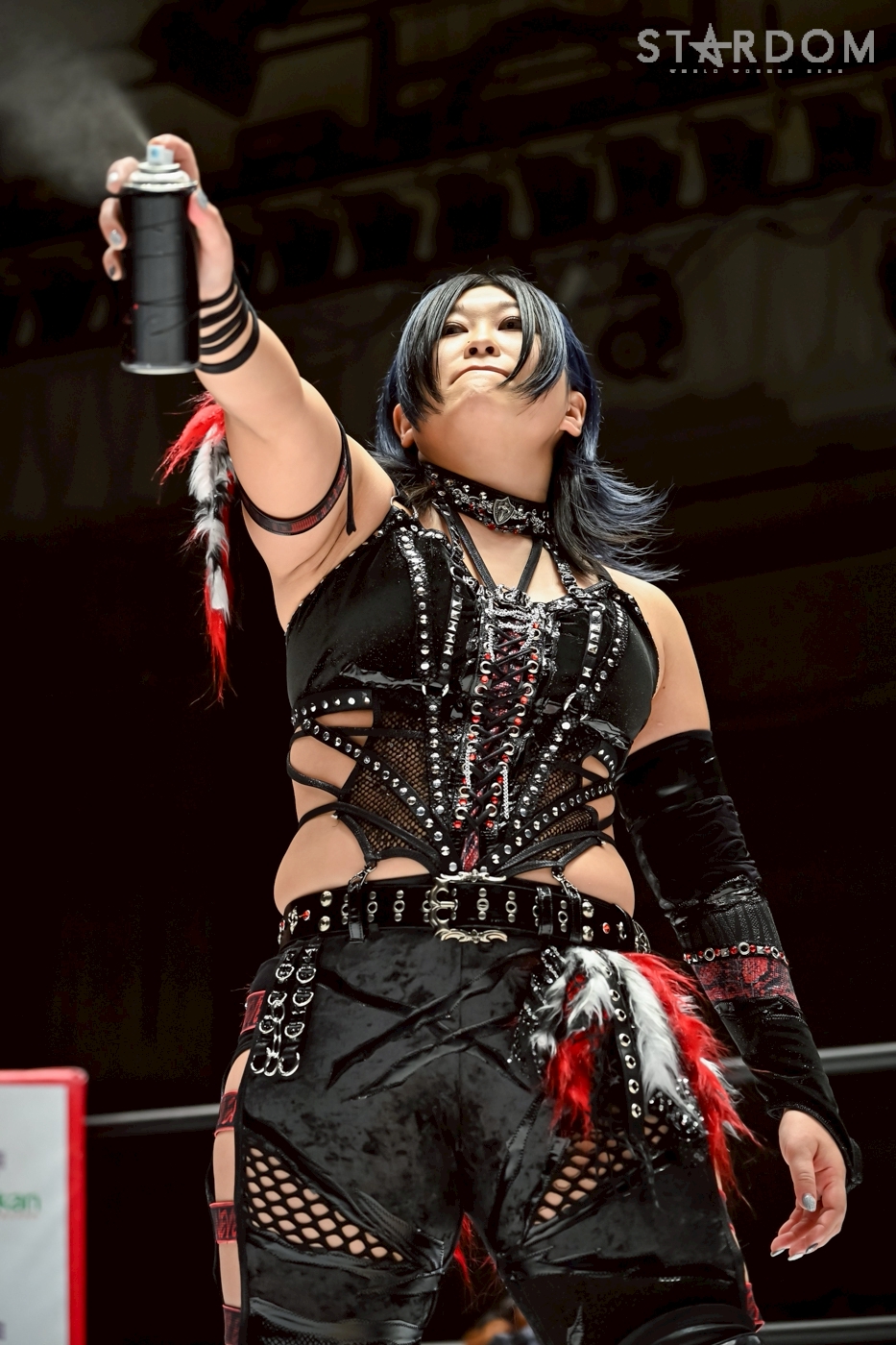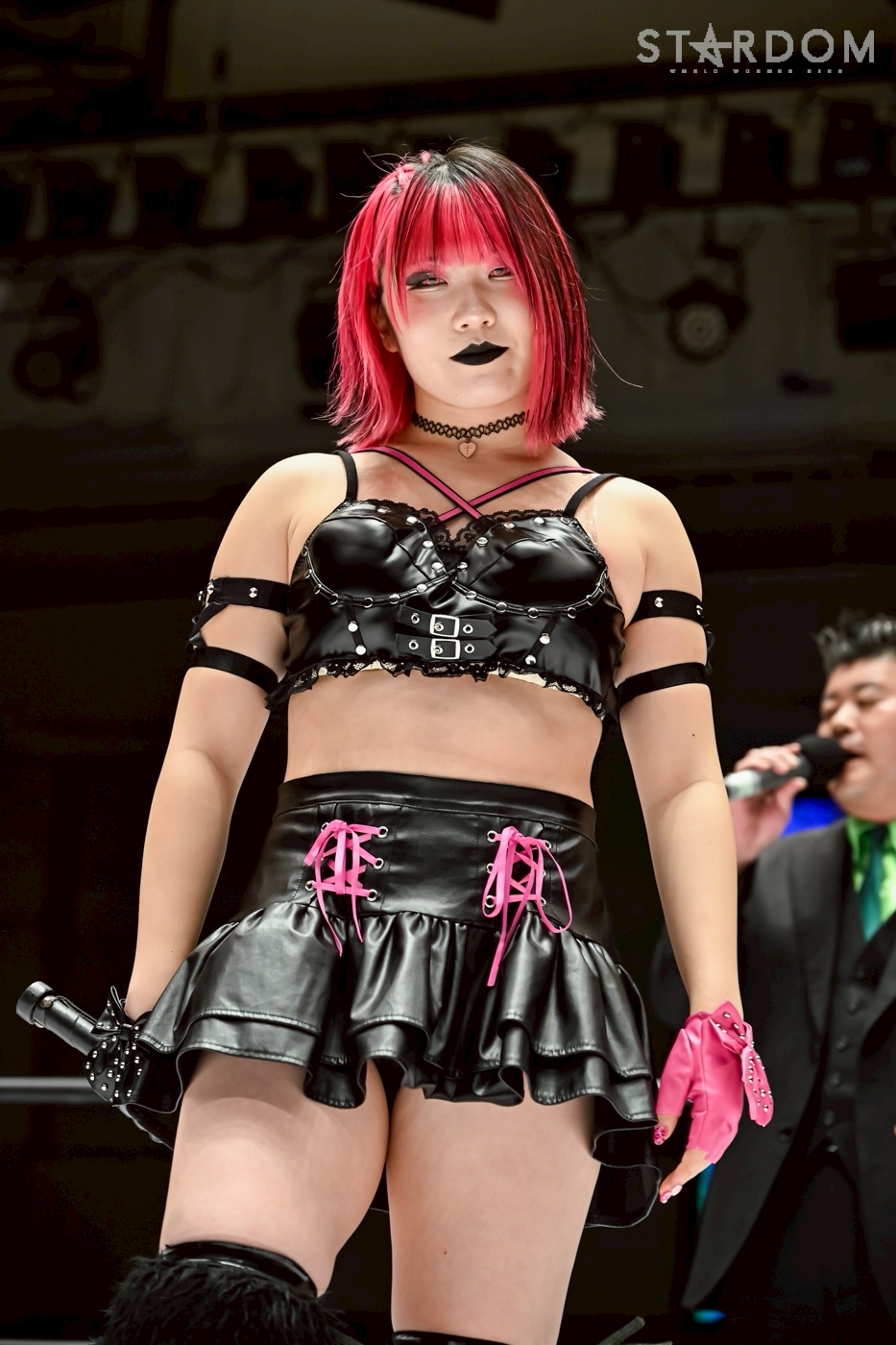 Rinan: Bueno, ahora que he defendido mi cinturón con éxito, me gustaría hablar un poco de mi vida personal... ¡Konami! Esa patada de hoy me dolió. Si Fukigen no hubiera venido a cortarme el paso, habría sido peligroso